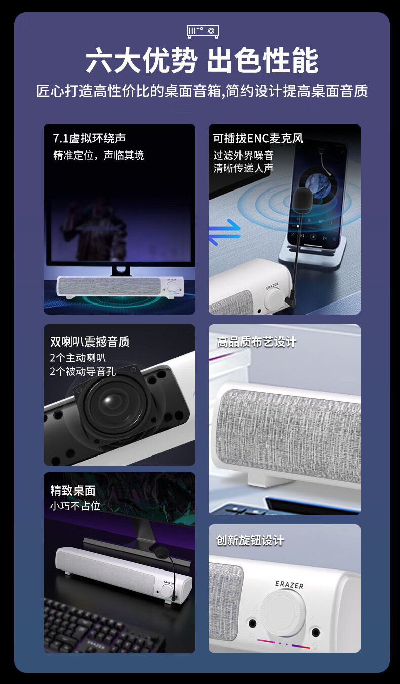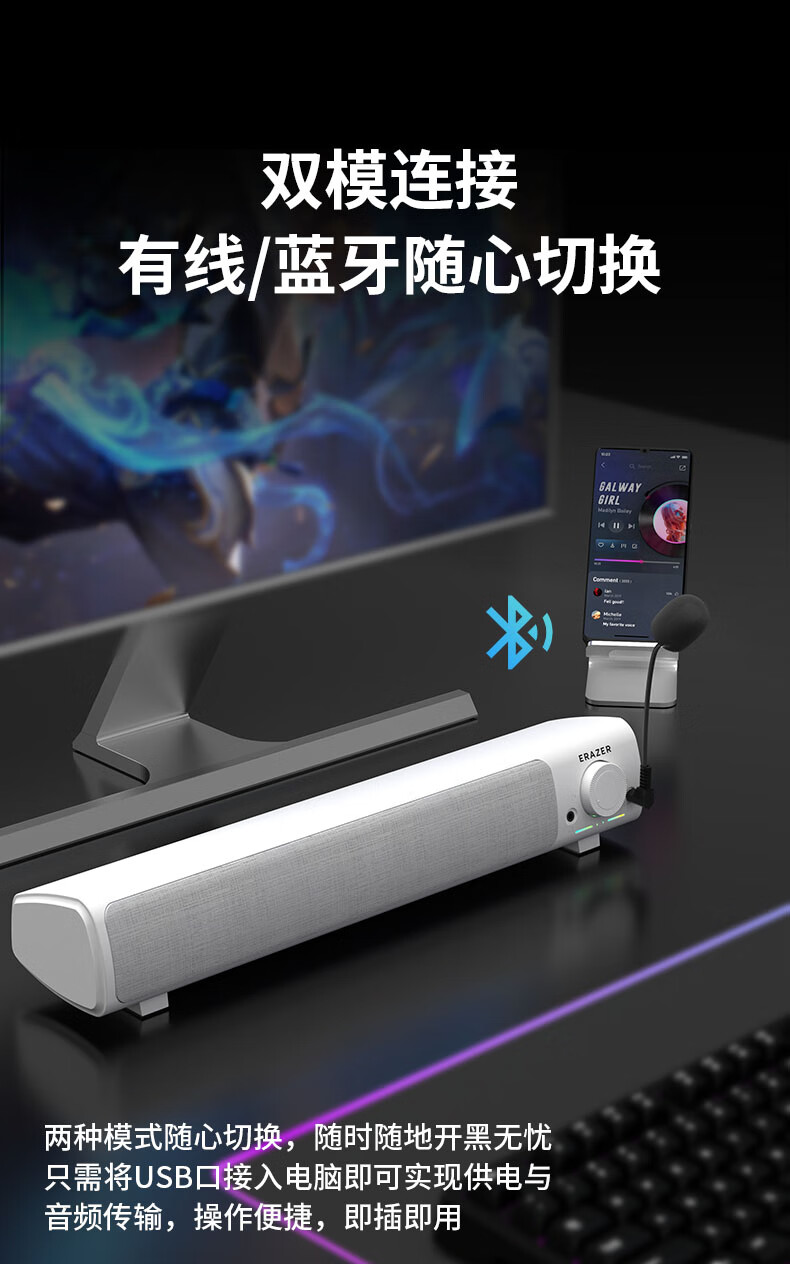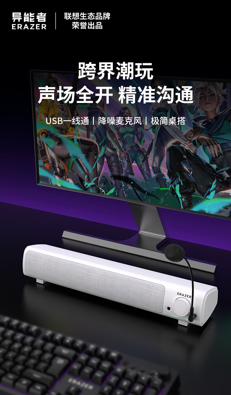 联想生态品牌异能者桌面电脑音箱家用外置麦克风适用拯救者USB台式机笔记本音响电竞游戏网课送礼
