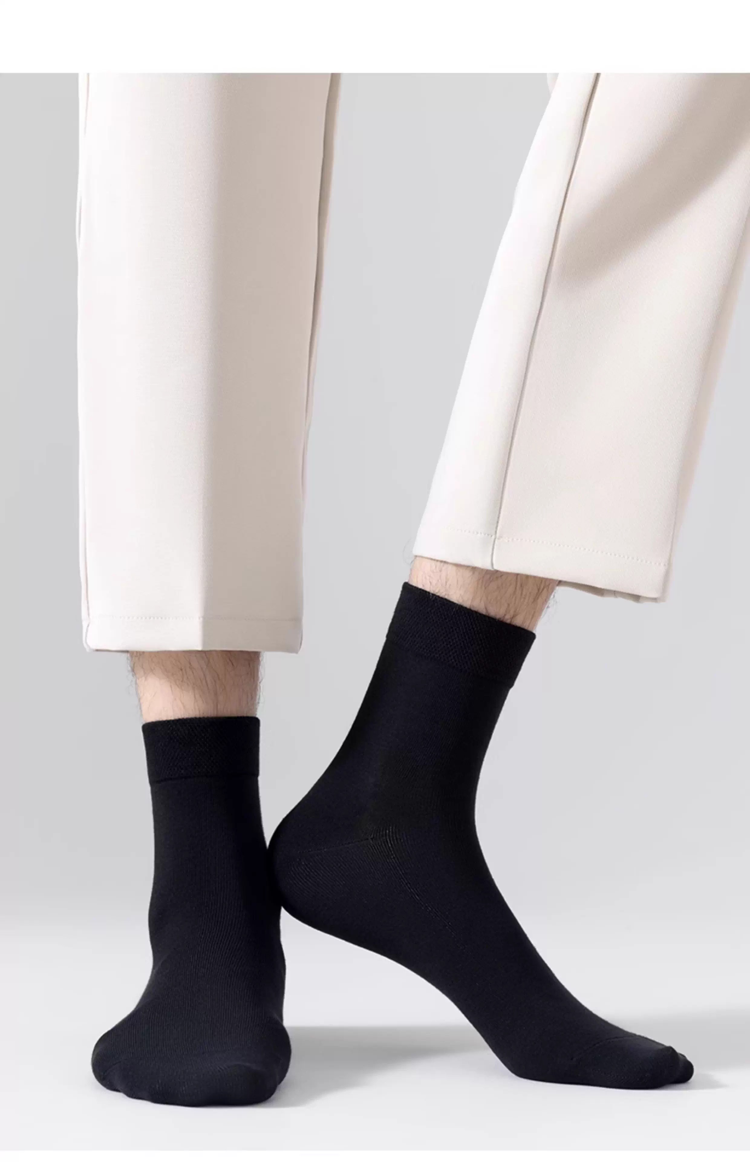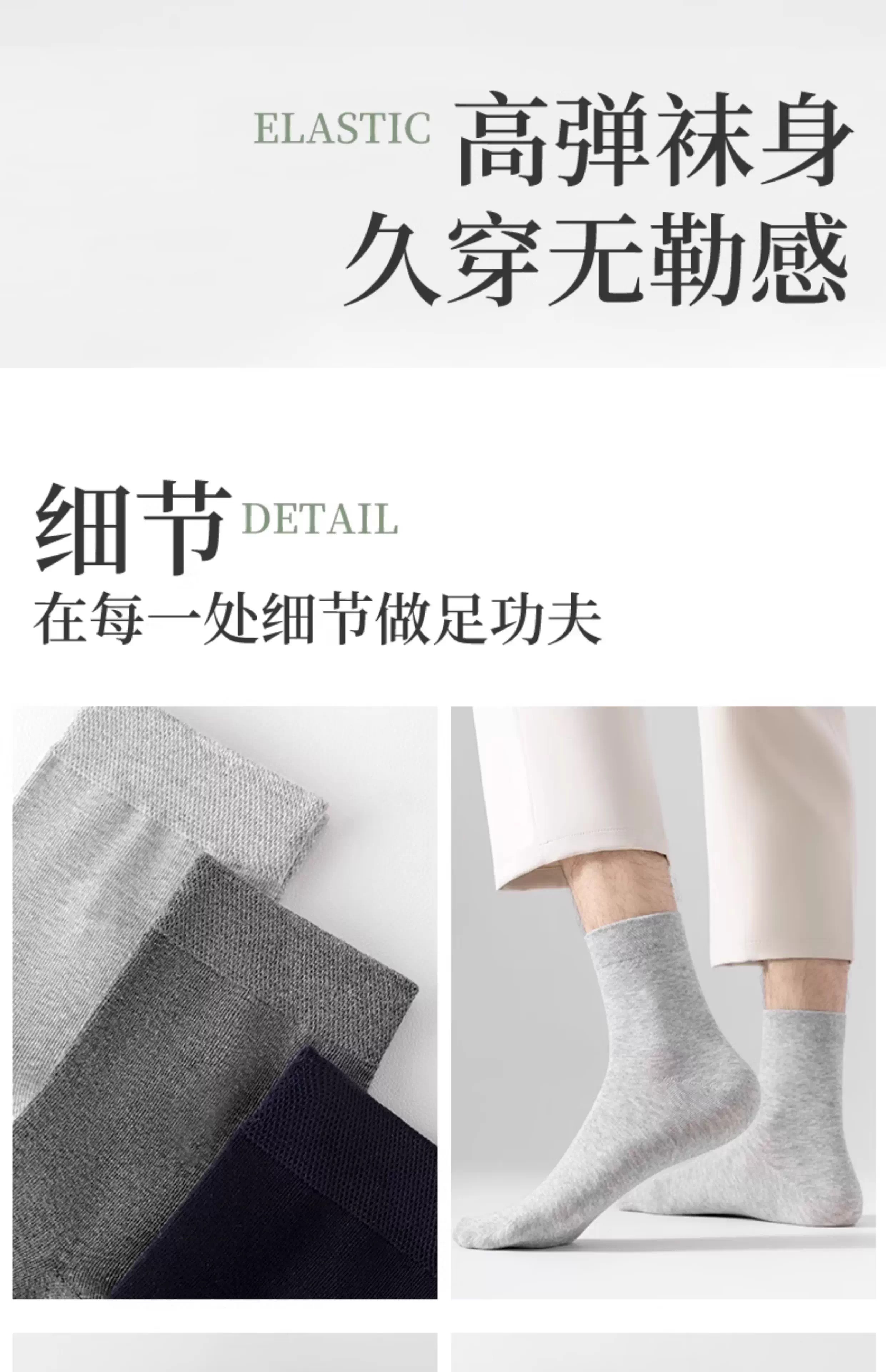 雅鹿中筒袜男纯色黑白灰色百搭透气吸汗春夏季薄款商务袜子防臭男袜 黑色 10双 均码