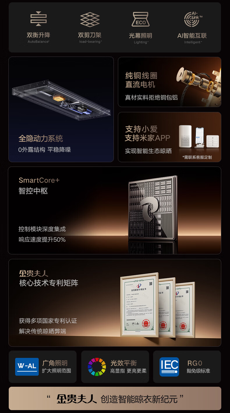 金贵夫人国家补贴电动晾衣架阳台专用智能晾衣机双层剪刀架自动升降晾衣杆