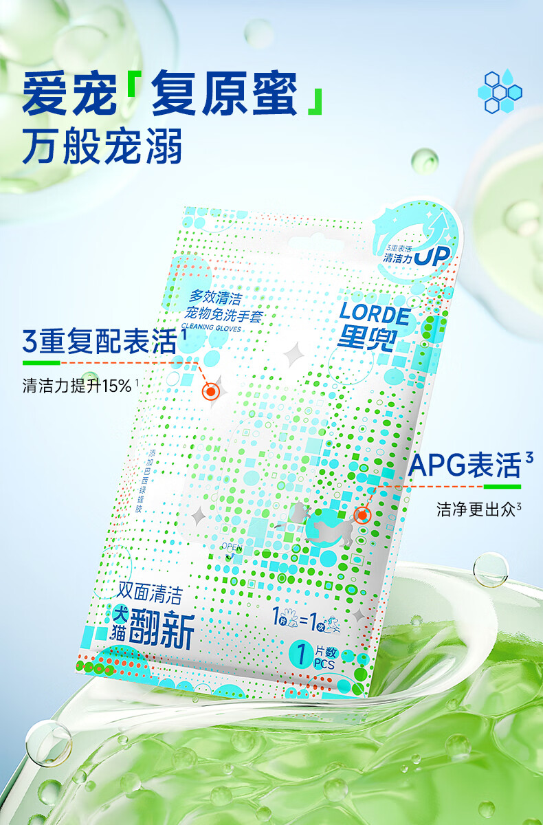 lorde里兜宠物免洗手套猫咪湿巾擦泪痕手脚狗狗干洗全身清洁抑菌6片