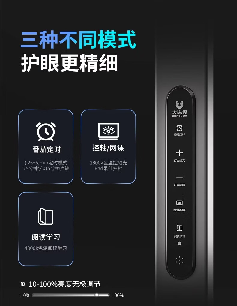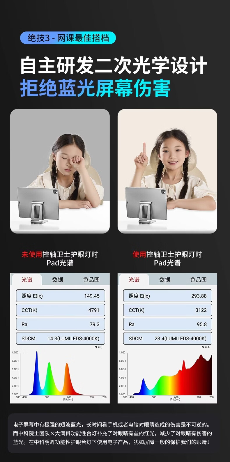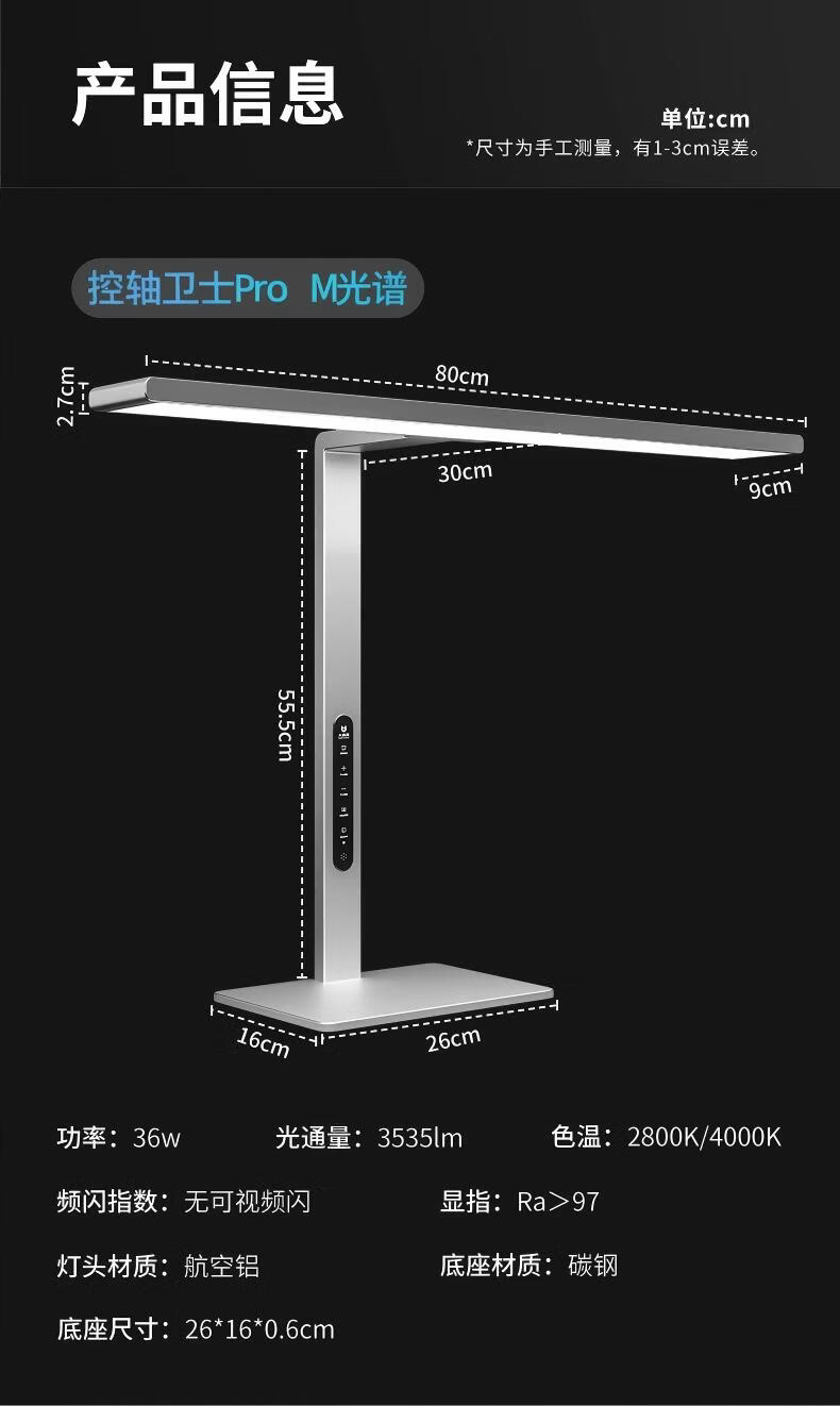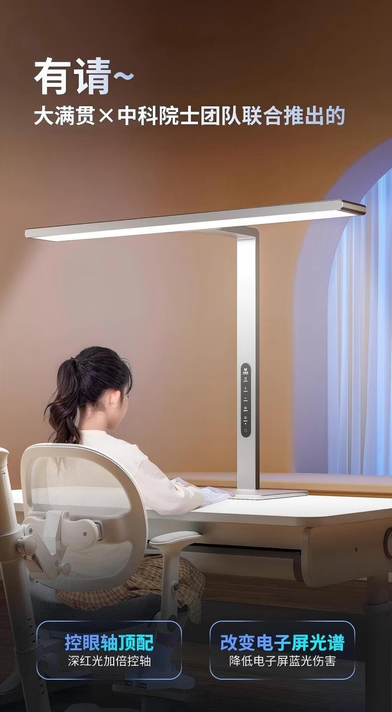大满贯控轴全光谱护眼灯学生学习台灯儿童防近视大路灯中科M光谱pro 【银色】M光谱桌面大路灯