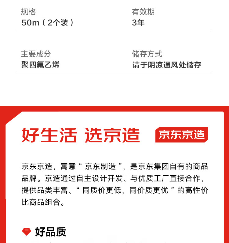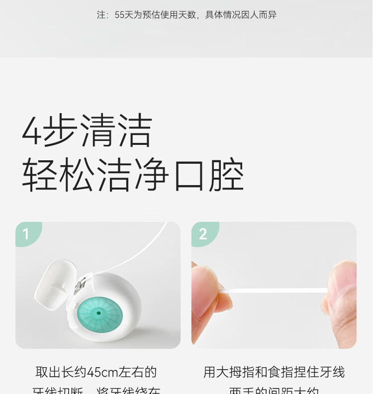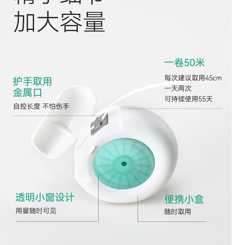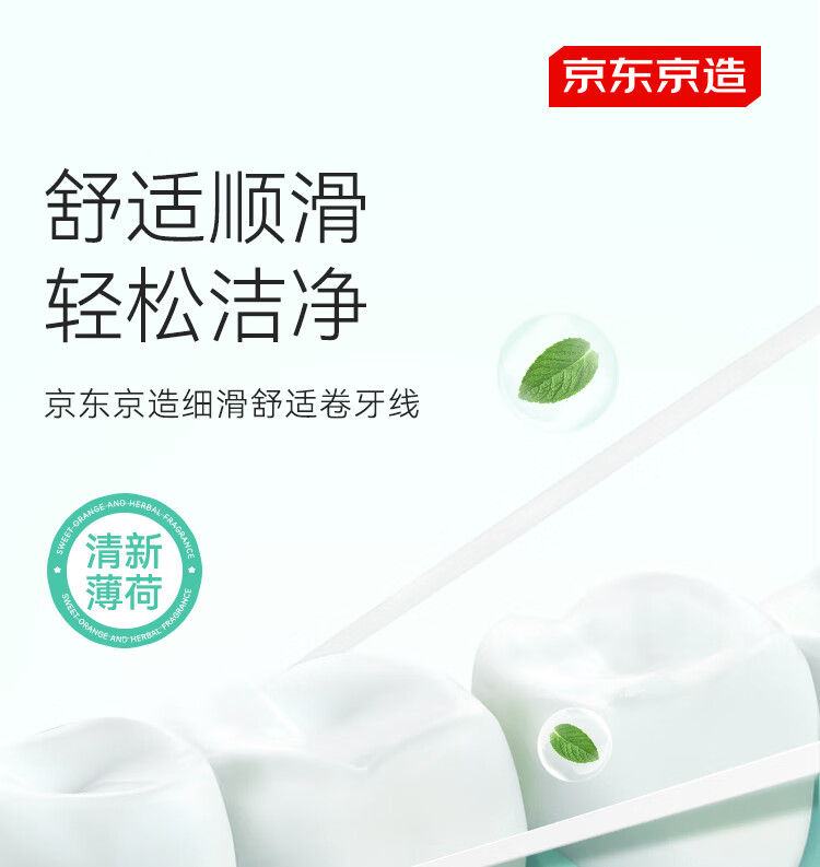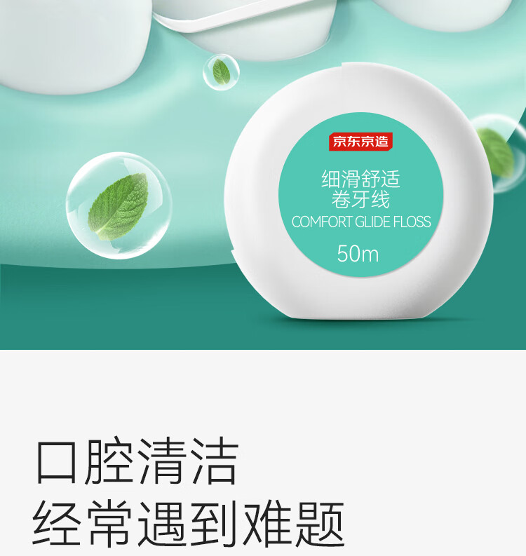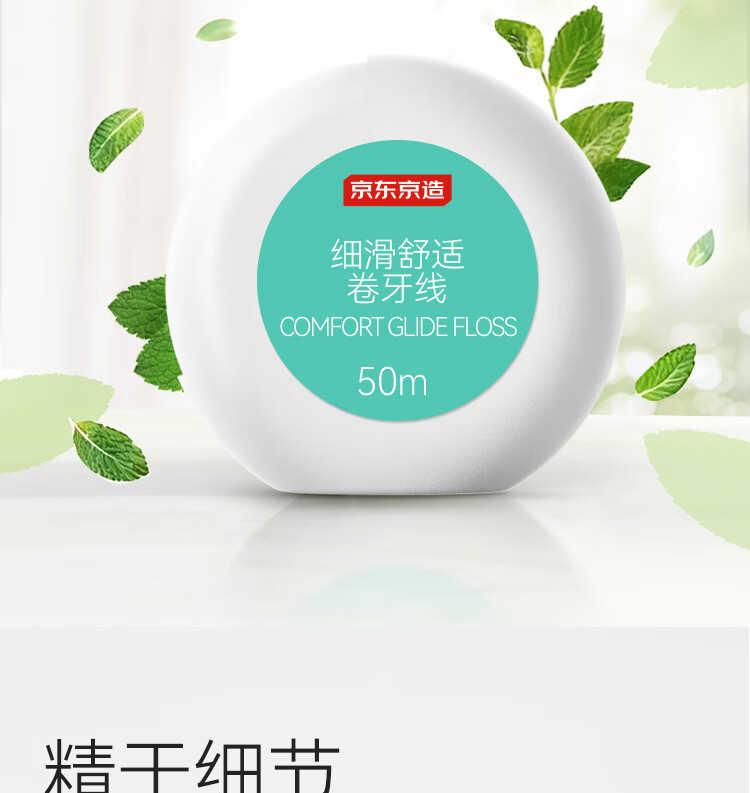 京东京造细滑舒适牙线卷50m*2 强韧顺滑深洁牙缝便携护龈薄荷膨胀扁牙线