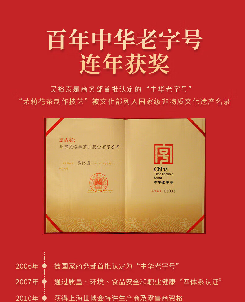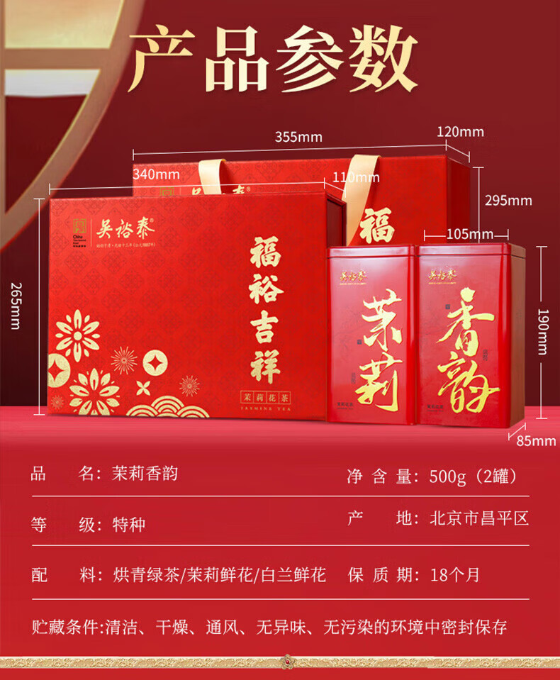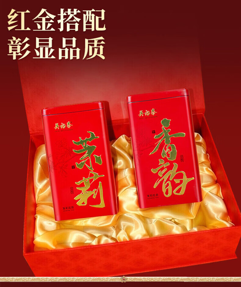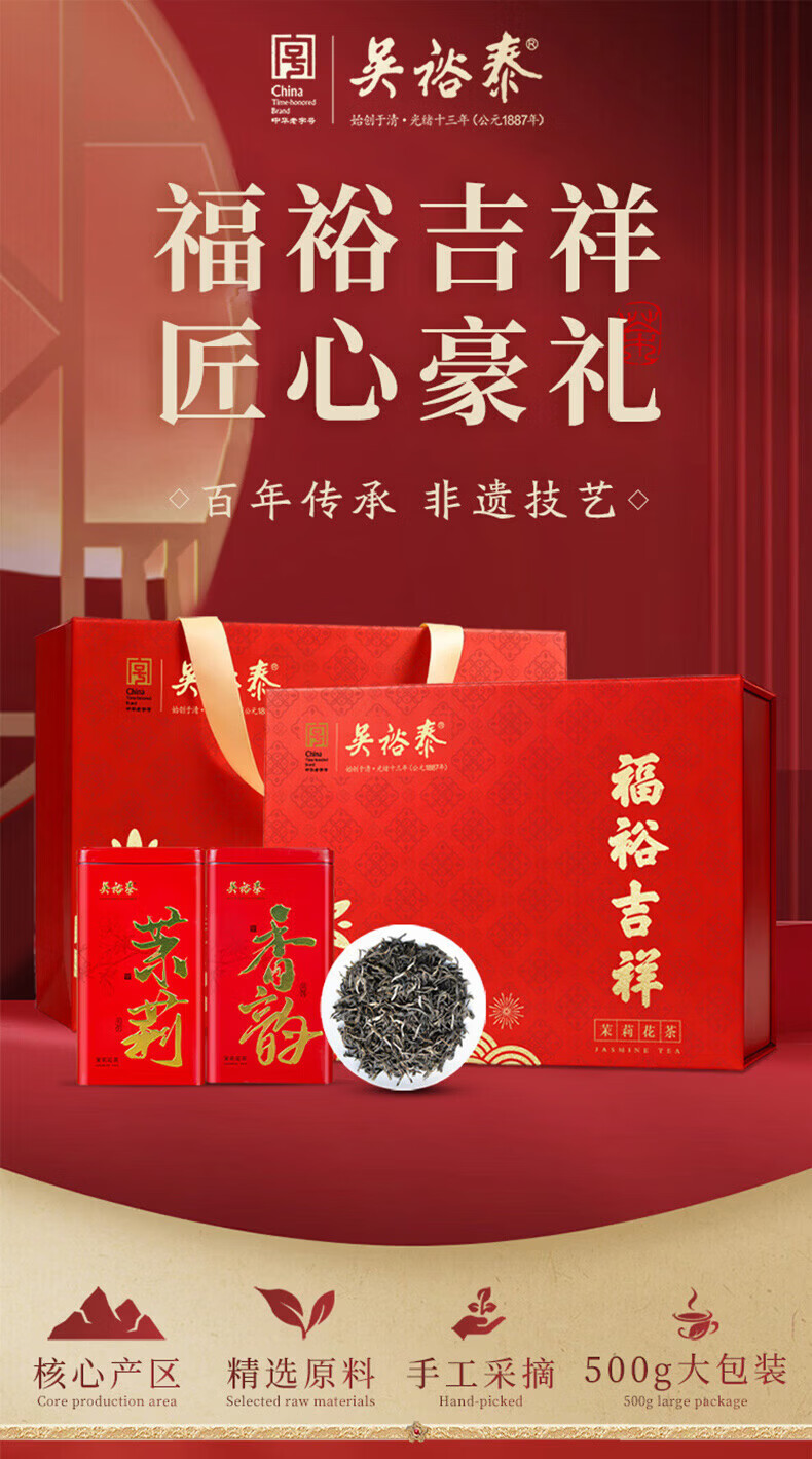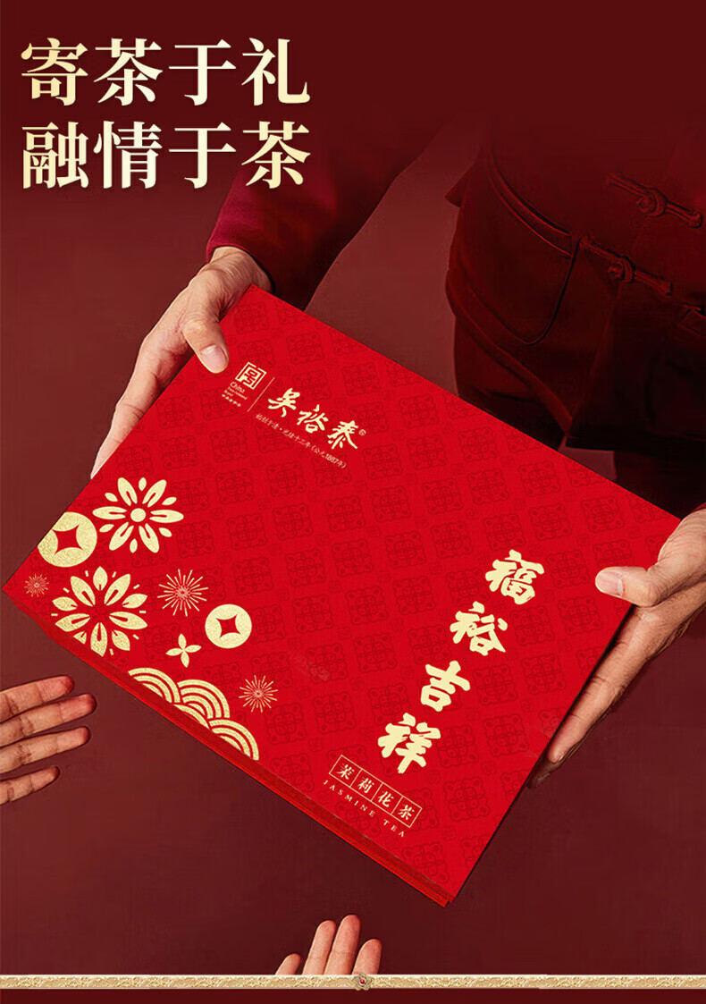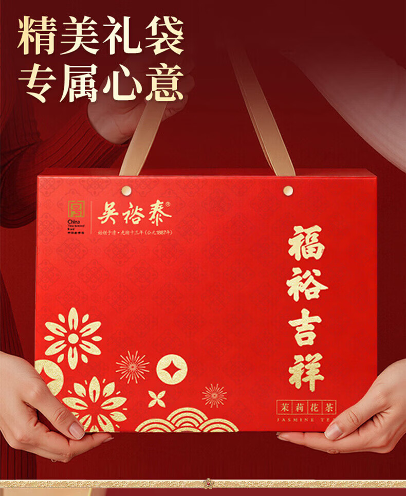 吴裕泰茉莉花茶福裕吉祥500g礼盒装特级花茶六窨含芽浓香耐泡自饮送礼