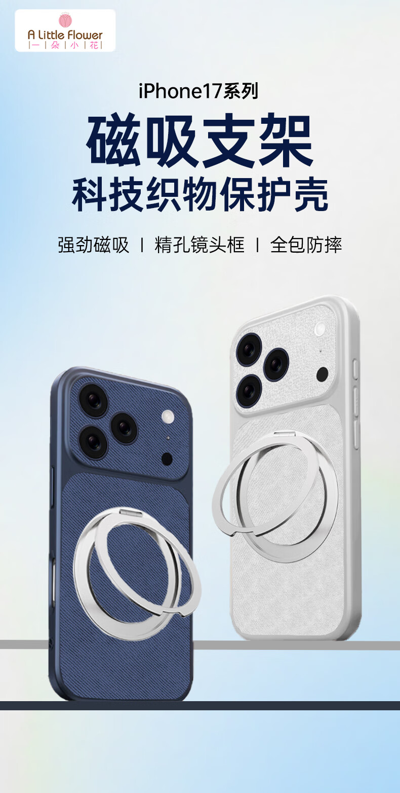 ALittleFlower【爆款推荐】适用iPhone17Pro手机壳苹果17Pro保护套磁吸支架旋转壳织物充电防摔全包软边简约
