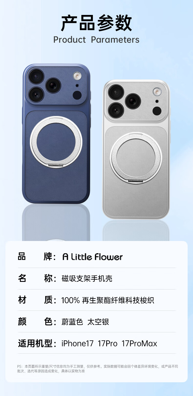 ALittleFlower【爆款推荐】适用苹果17ProMax手机壳iPhone17ProMax保护套磁吸支架旋转壳织物充电防摔全包软边