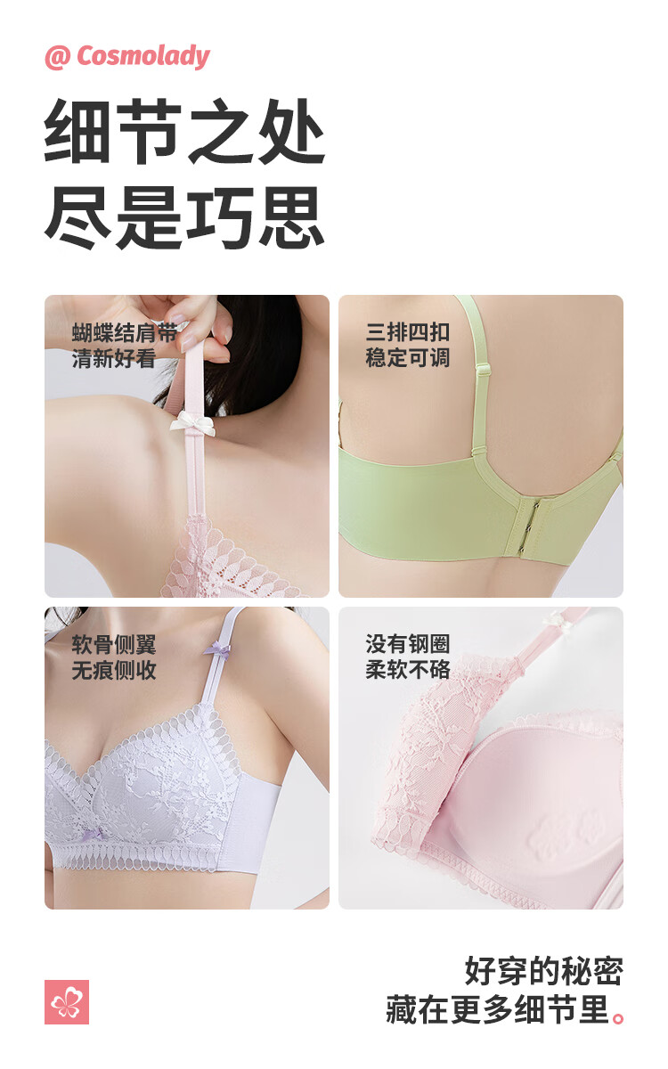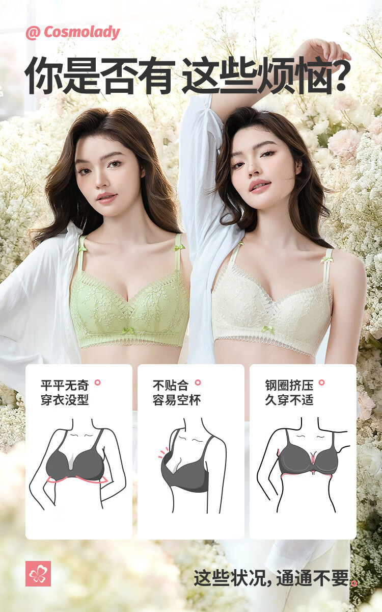 都市丽人内衣女无钢圈小花心文胸聚拢中薄款透气波斯菊性感蕾丝胸罩2B9506