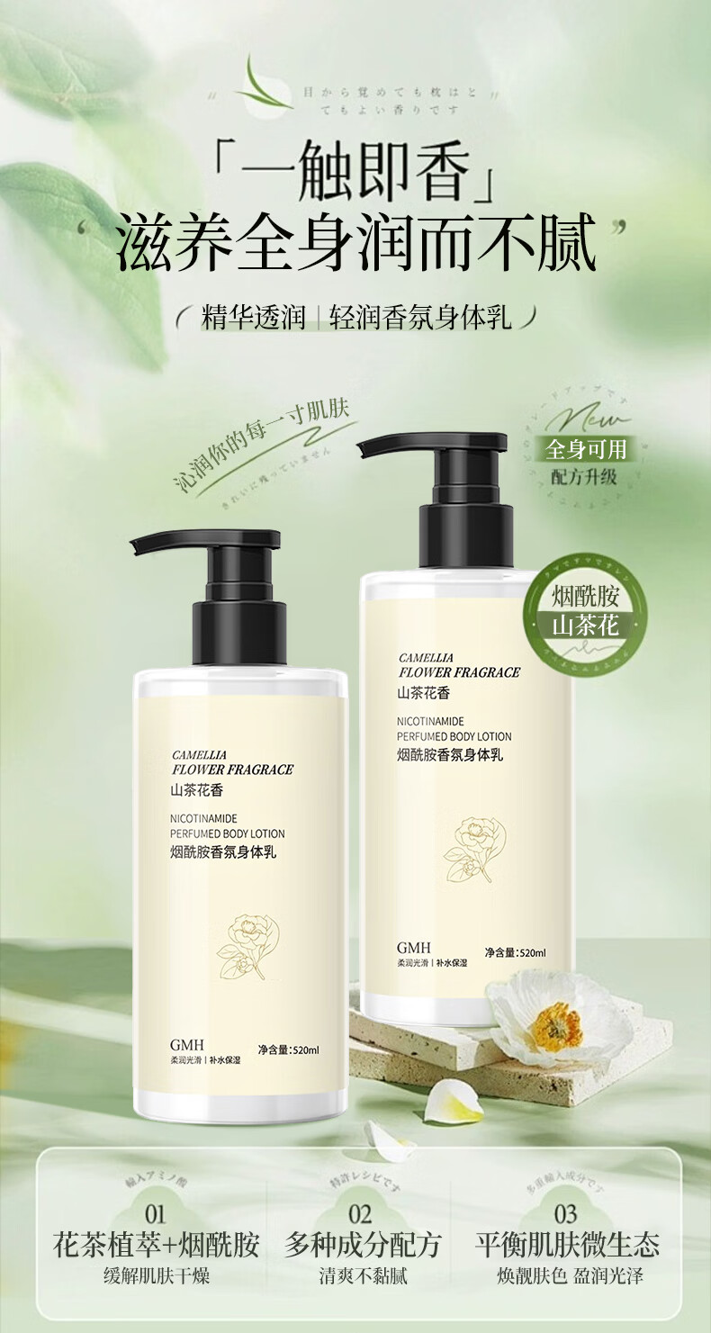 GMH山茶花身体乳烟酰胺滋润保湿修护香氛润肤乳秋冬防裂干燥男女全身 山茶花香氛烟酰胺身体乳 520ml 1瓶