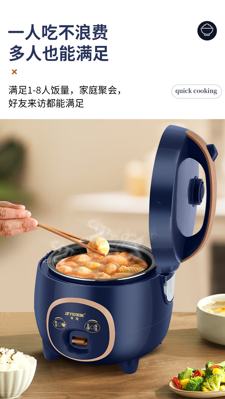 半球电饭煲电饭锅迷你电饭煲1-2人 小型宿舍用多功能可蒸煮新款不粘锅家用2-3人 3L 机械款【厚球斧内胆】2-4人