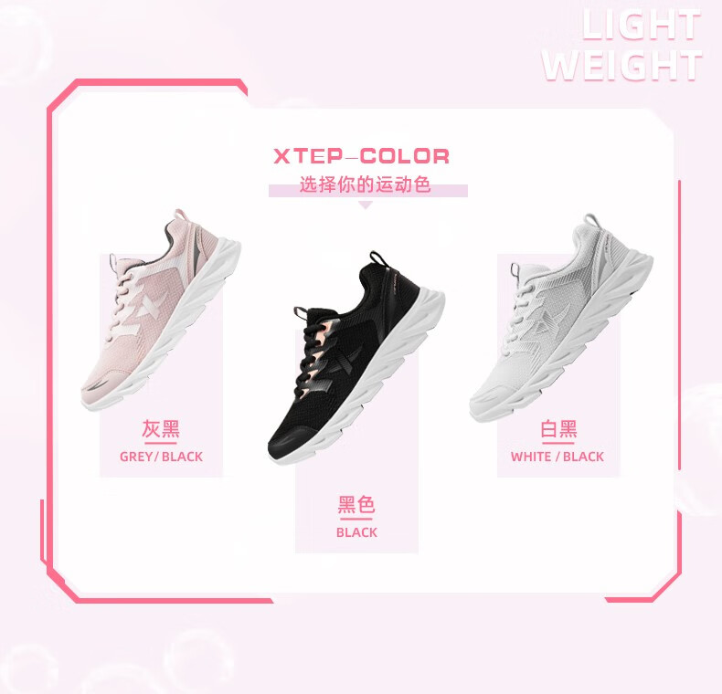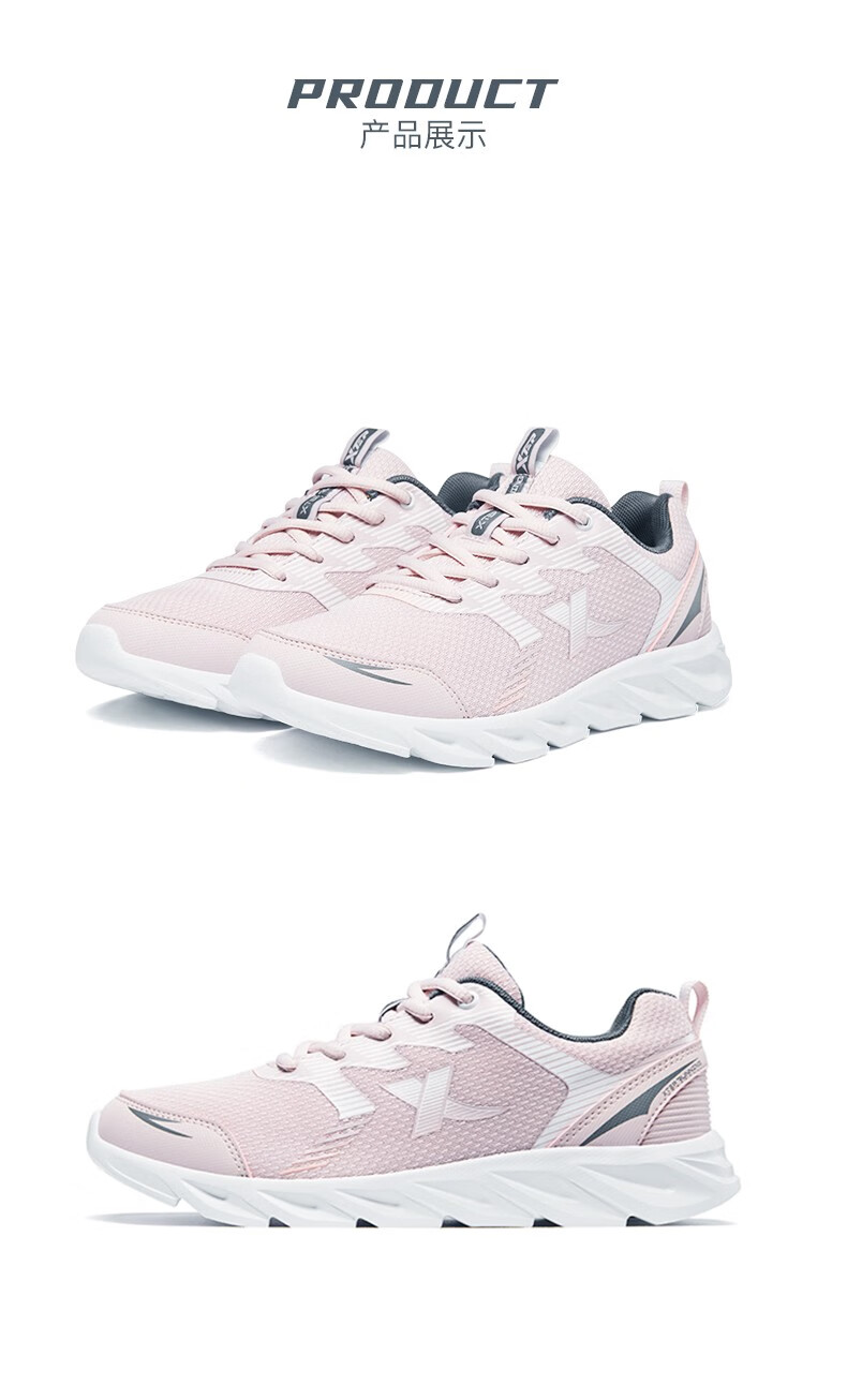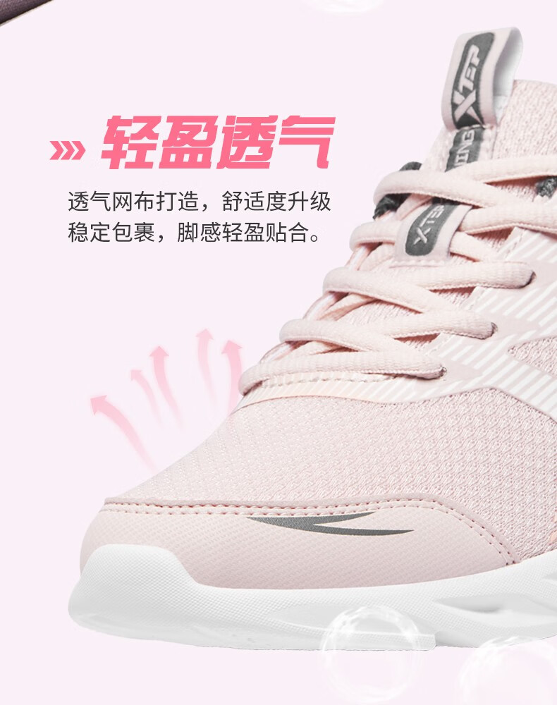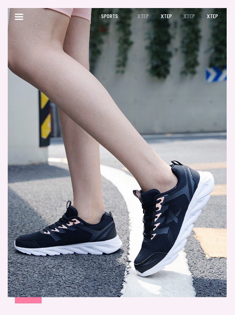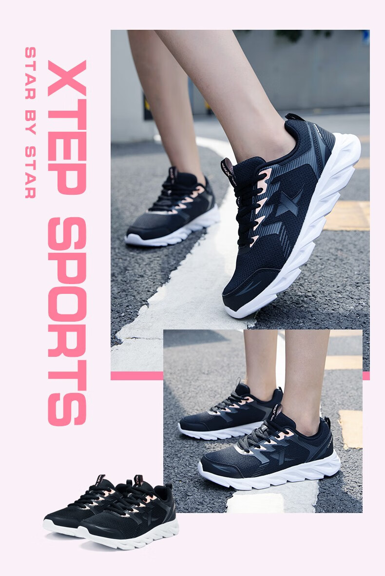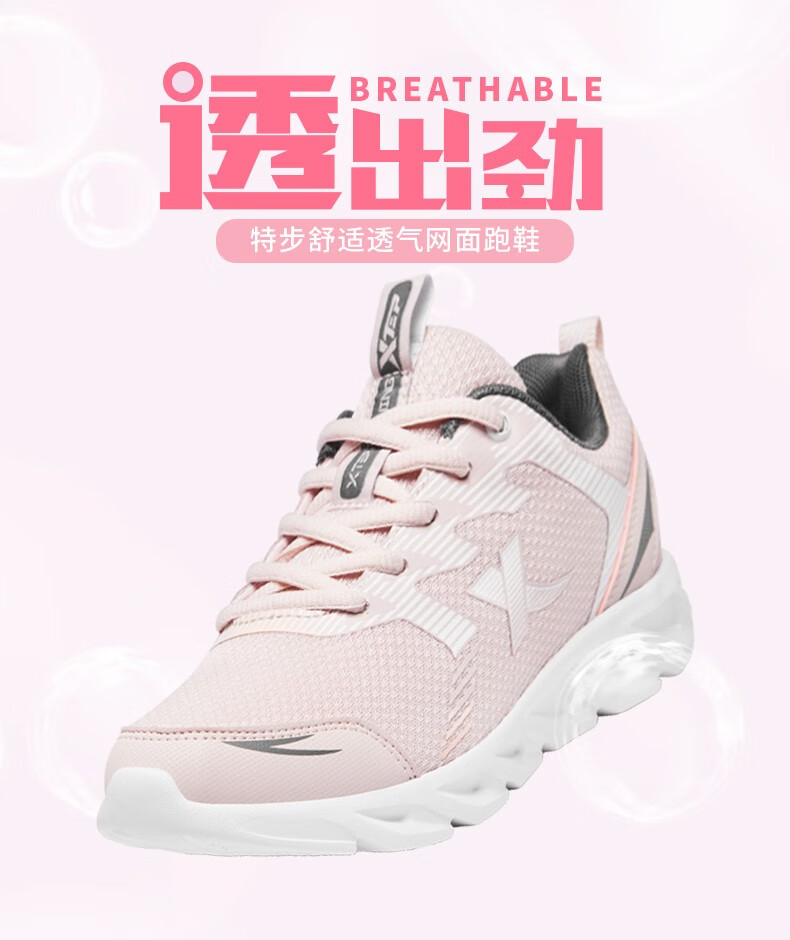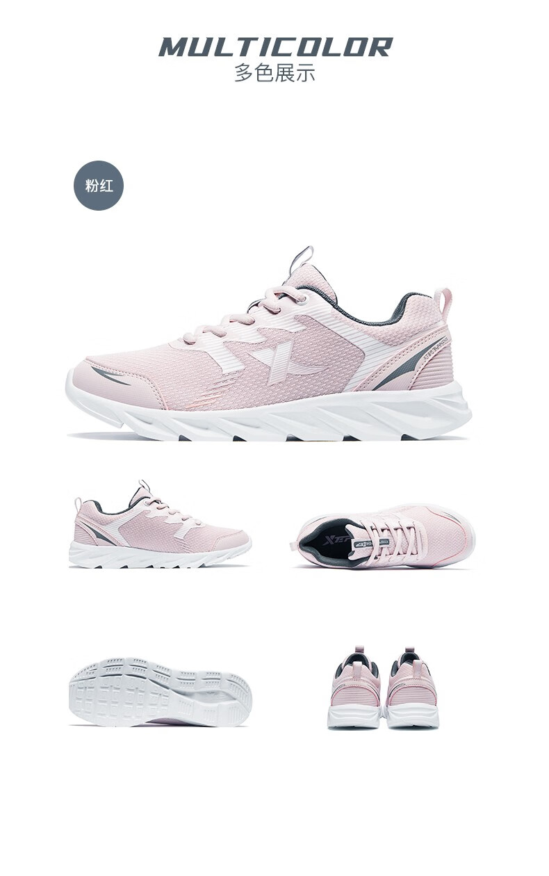 特步女鞋运动鞋秋季新款网面透气减震跑步鞋轻便休闲鞋女跑鞋潮流鞋子 黑粉红-网面0073 38