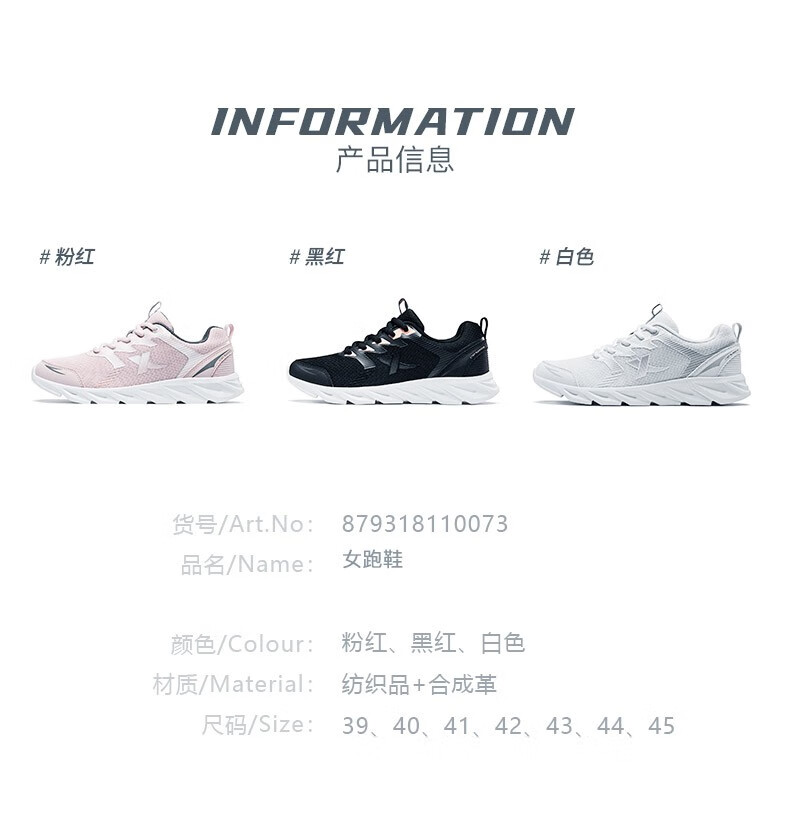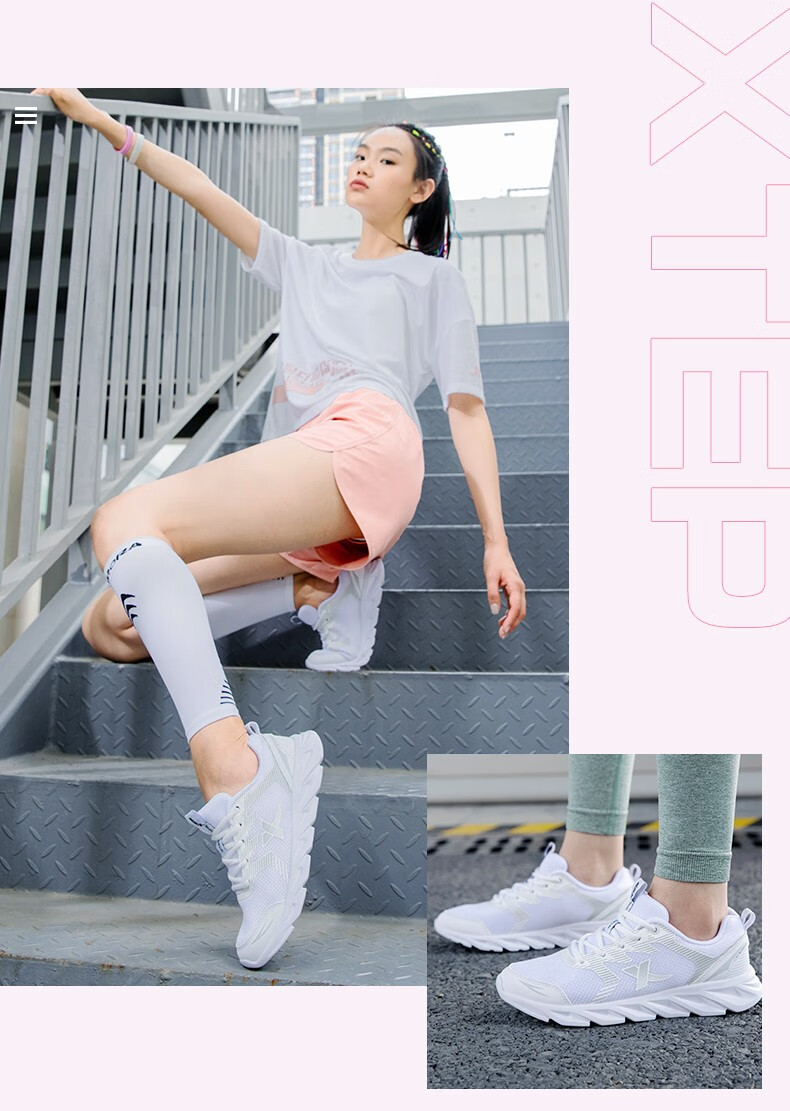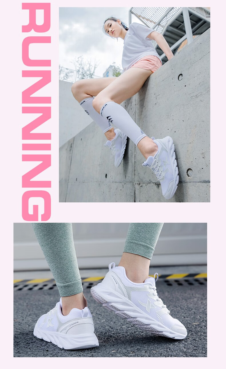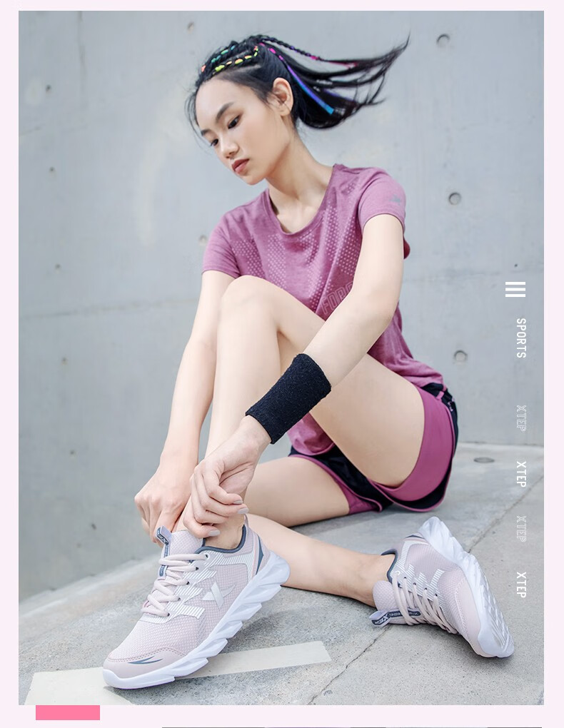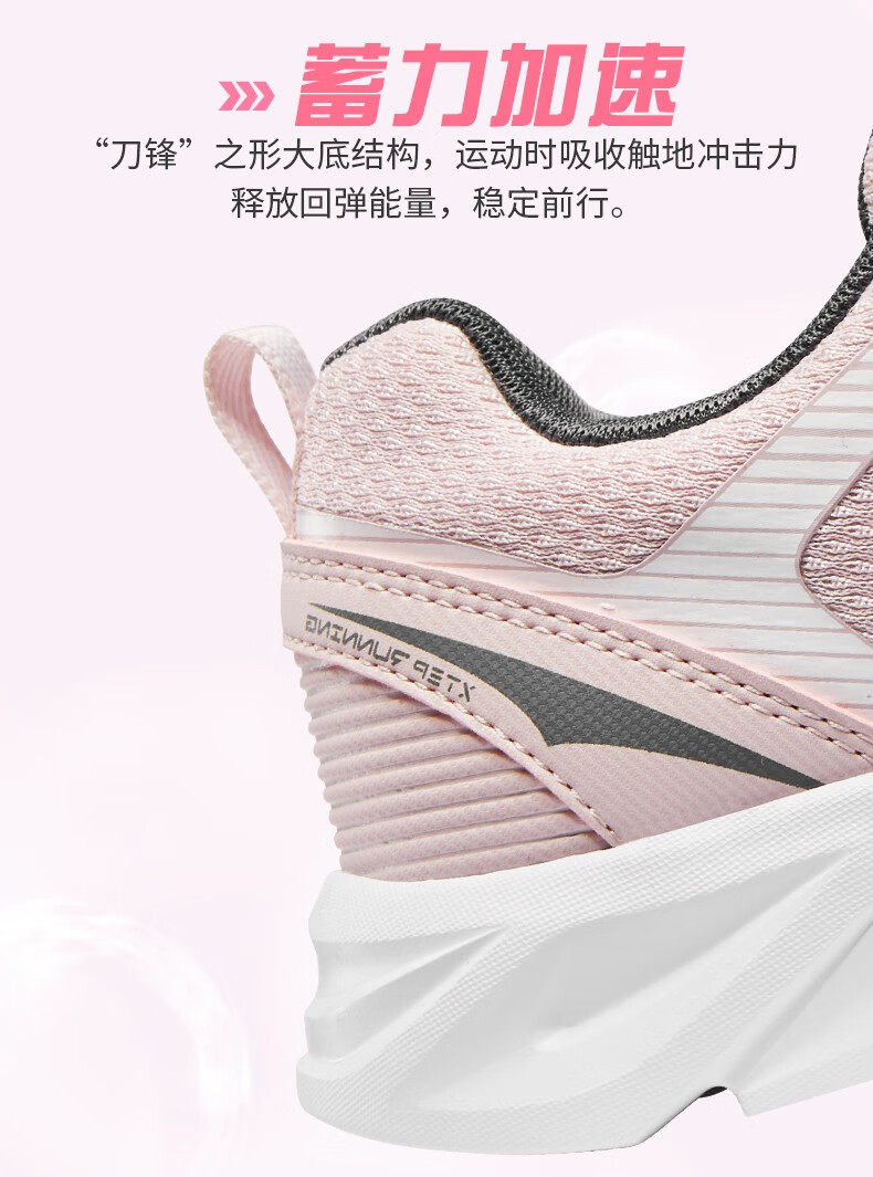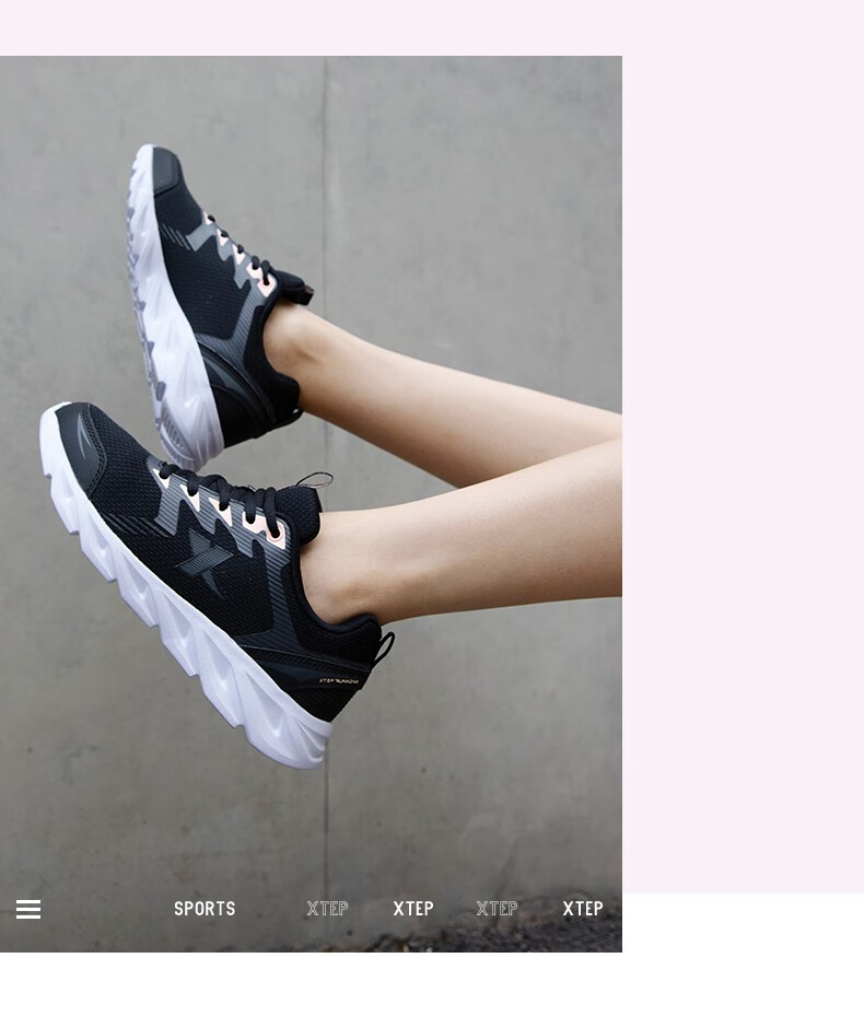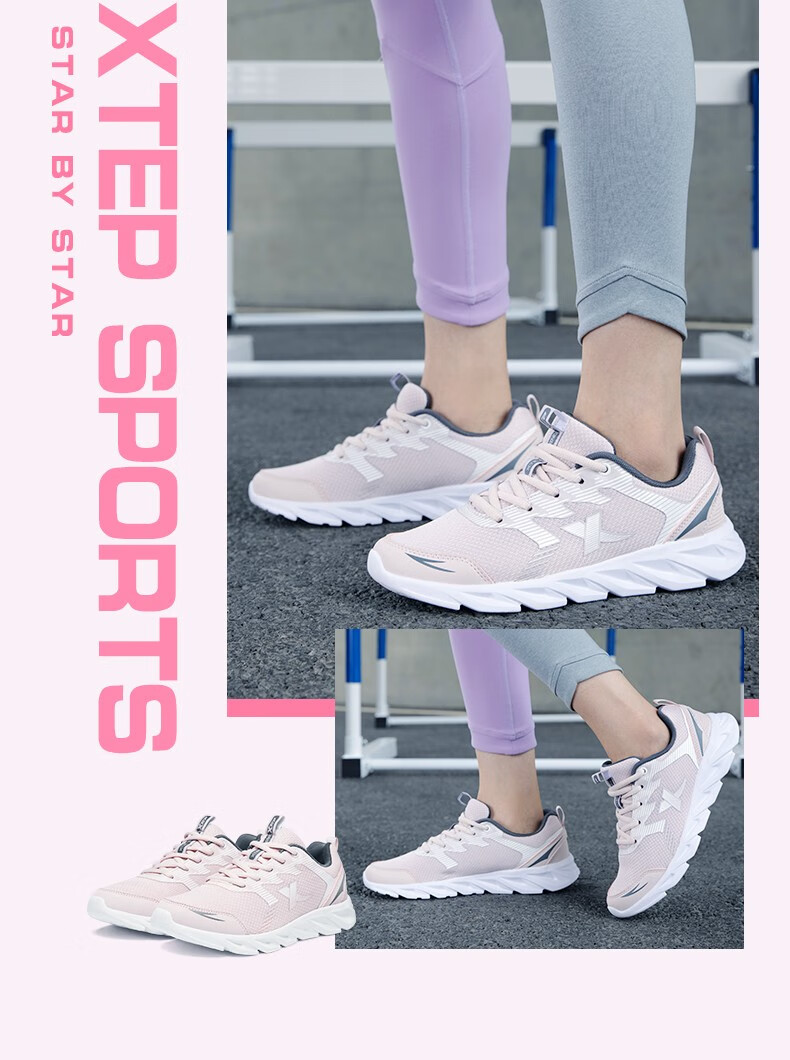 特步女鞋运动鞋秋季新款网面透气减震跑步鞋轻便休闲鞋女跑鞋潮流鞋子 黑粉红-网面0073 38