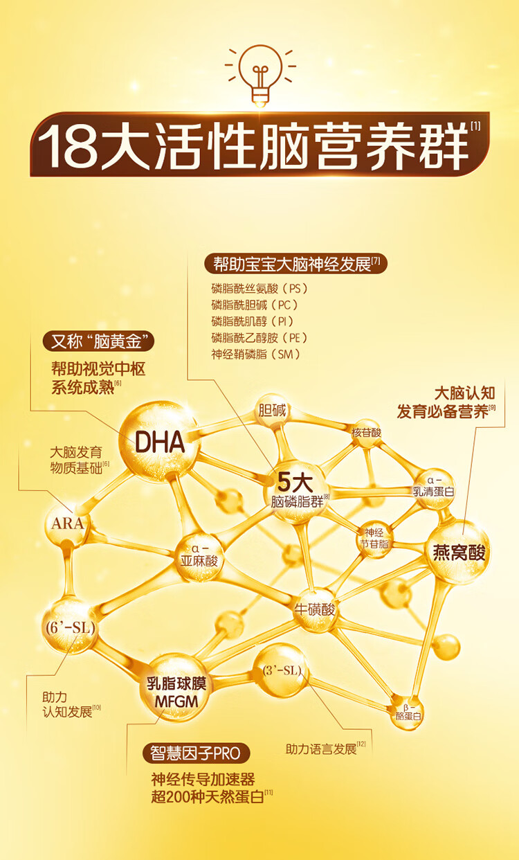 伊利金领冠育护【5倍DHA好脑力】幼儿奶粉3段(1-3岁)1200g三联装