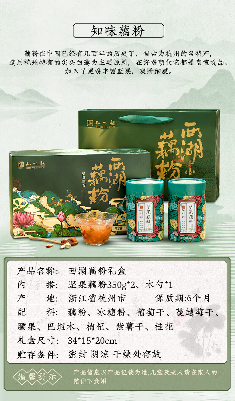 知味观西湖藕粉礼盒送礼杭州特产早餐代餐冲饮送长辈坚果藕粉700g
