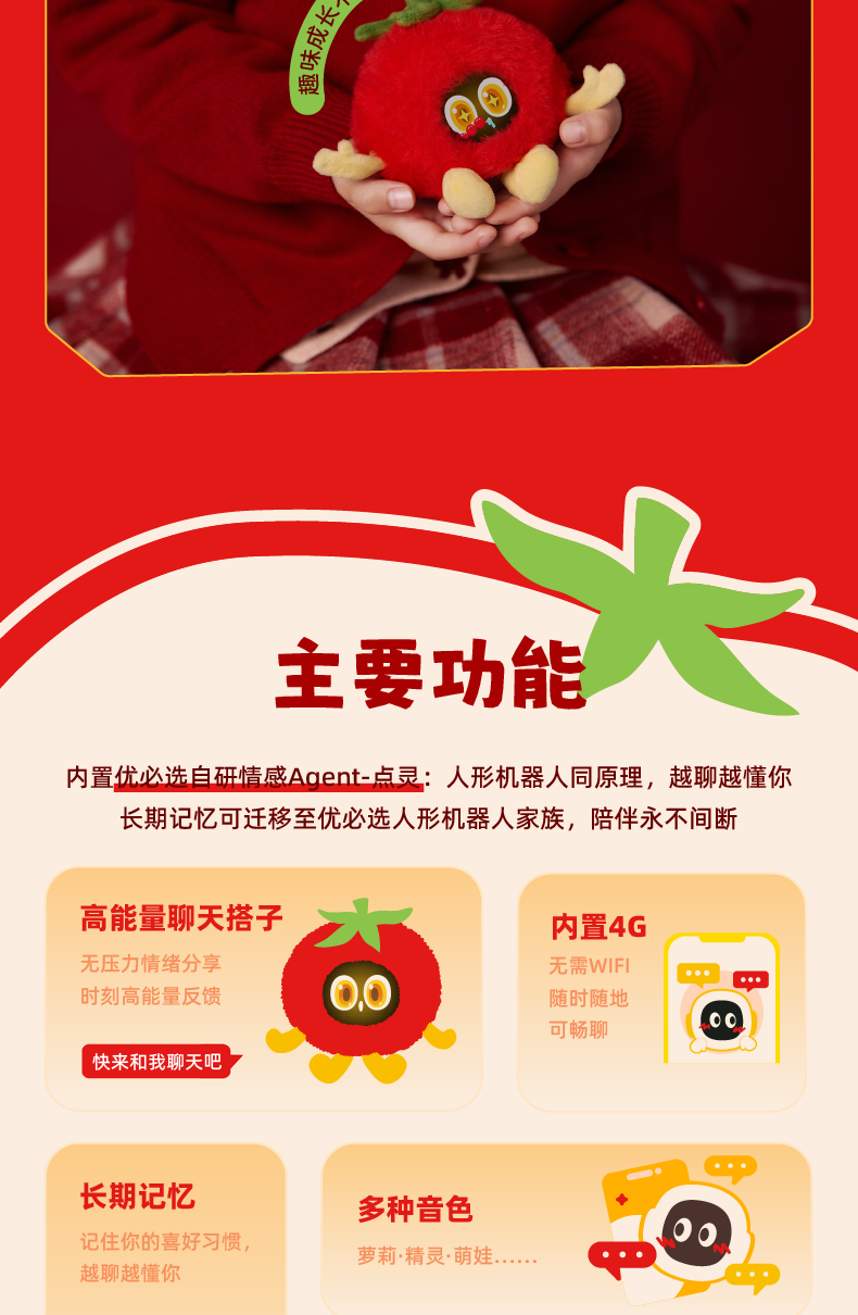 优必选萌UU优崽AI智能陪伴机器人毛绒玩具女孩生日新年礼物托马头礼盒