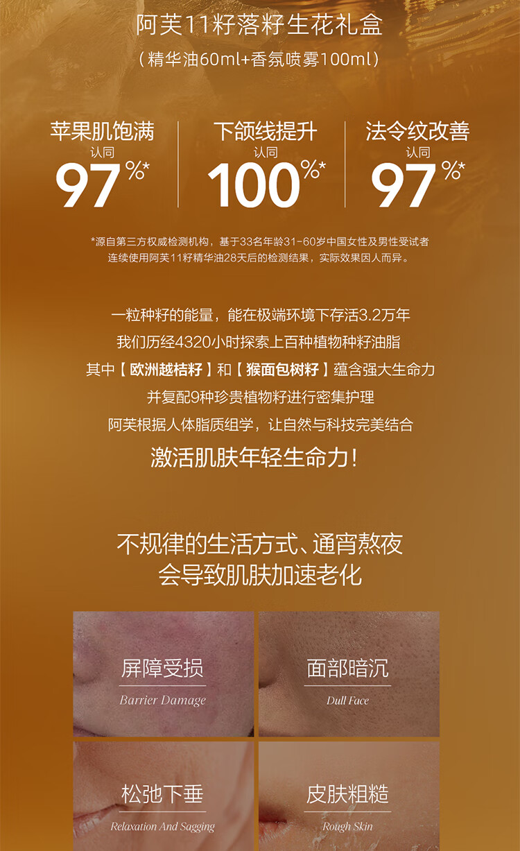 阿芙11籽 落籽生花礼盒+11籽微凝珠紧致焕亮精华水120ml新年礼物