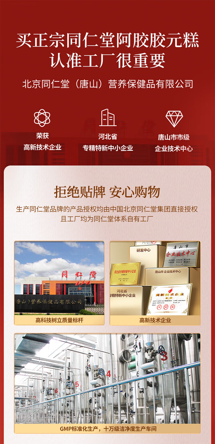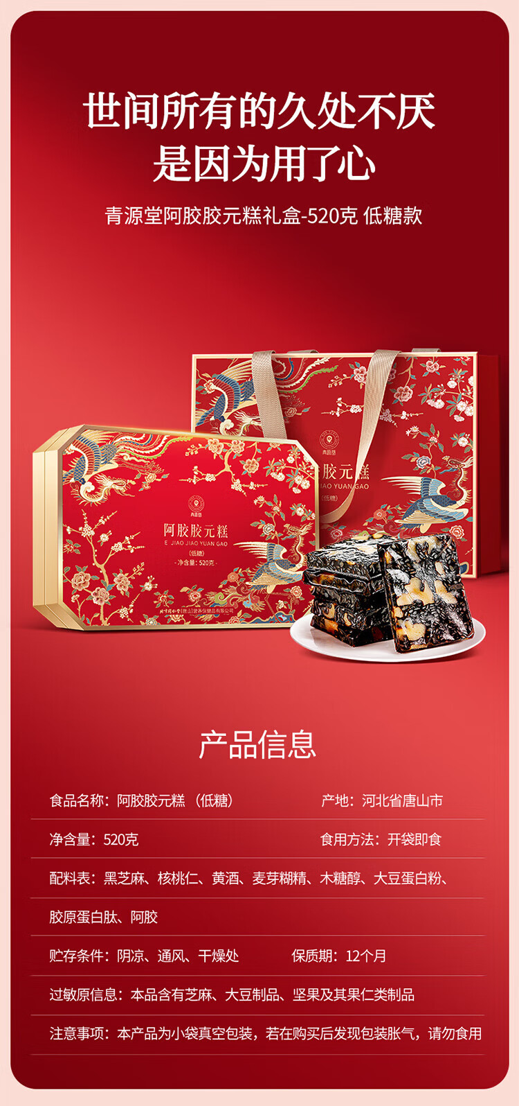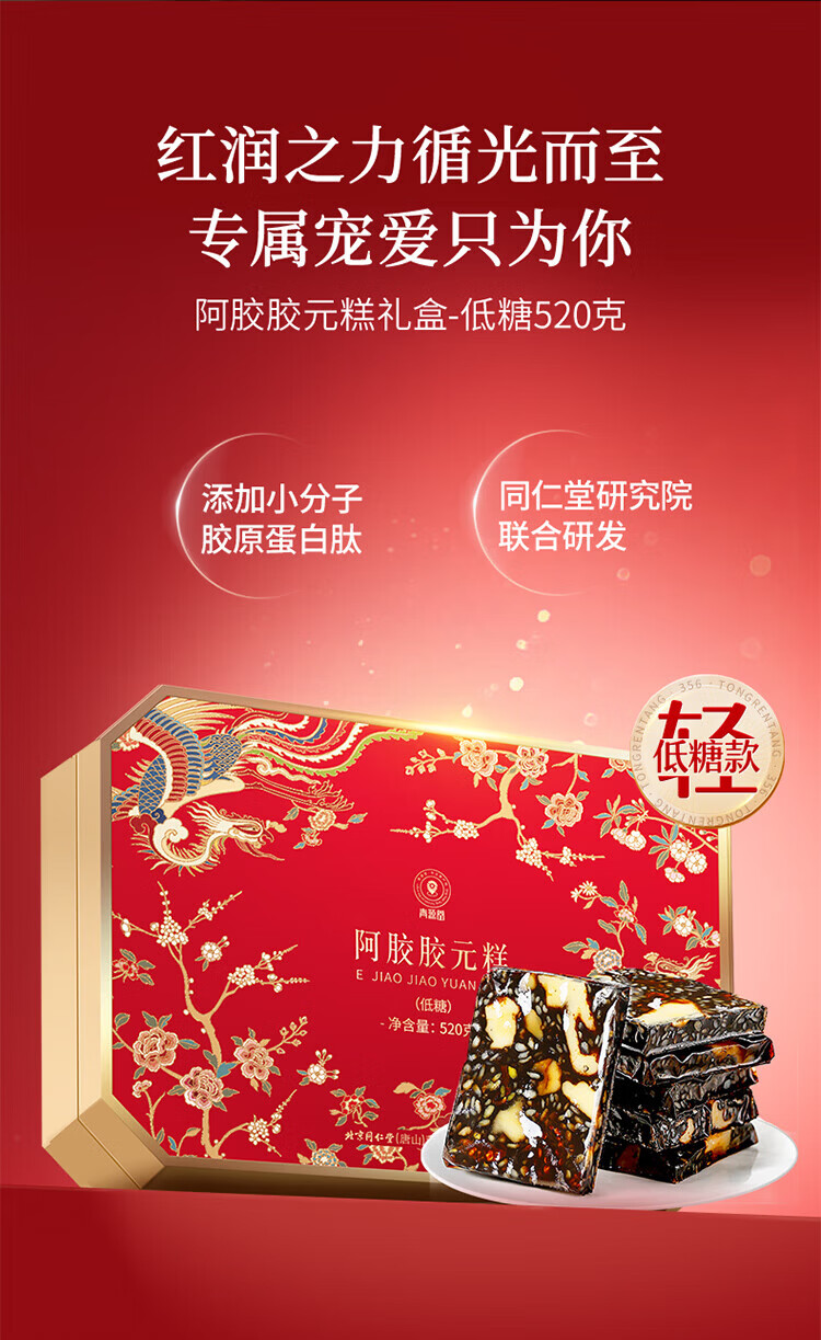 同仁堂阿胶礼盒低糖阿胶胶元糕520g送妈妈生日妇女节礼物改良胶元糕