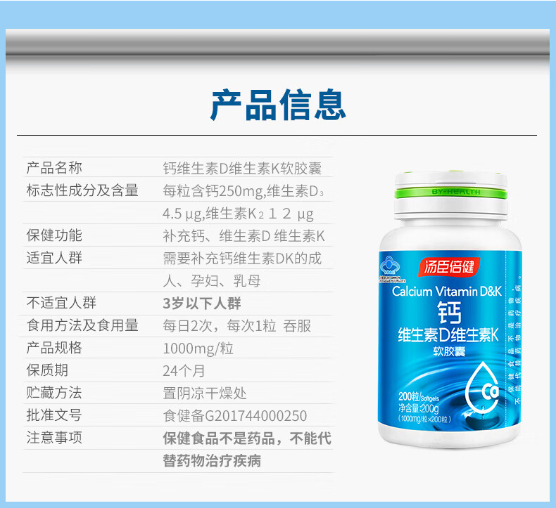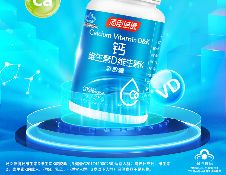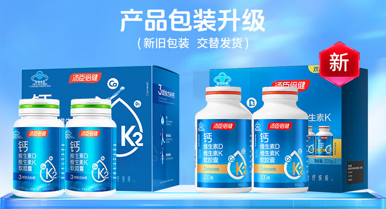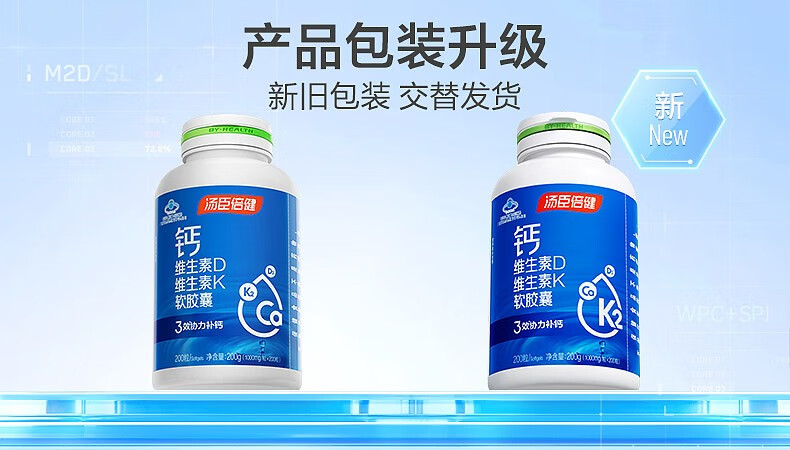 汤臣倍健钙维生素D维生素K软胶囊 新款液体钙软胶囊中老年成人补钙营养品 400粒【礼盒】