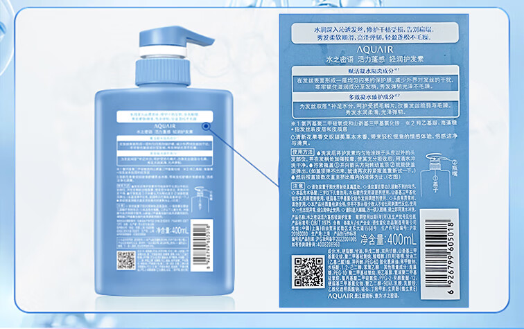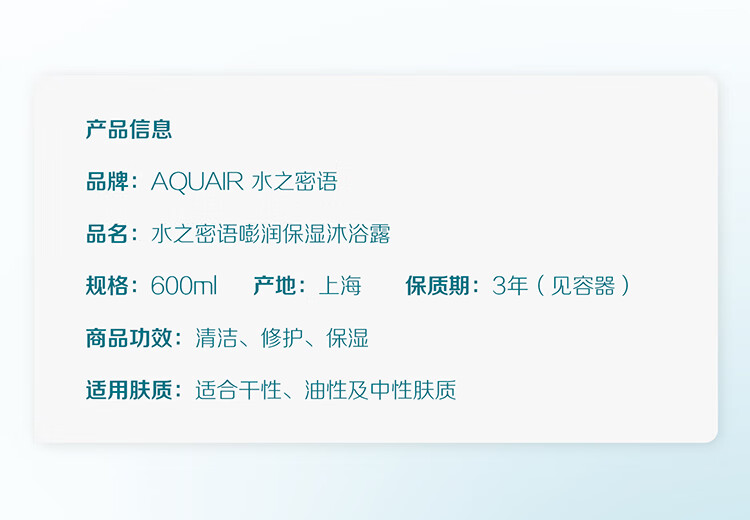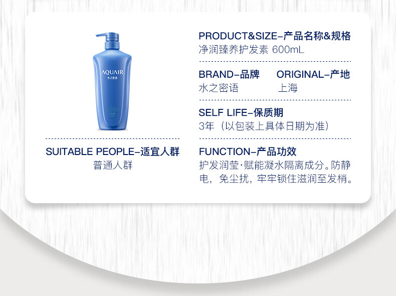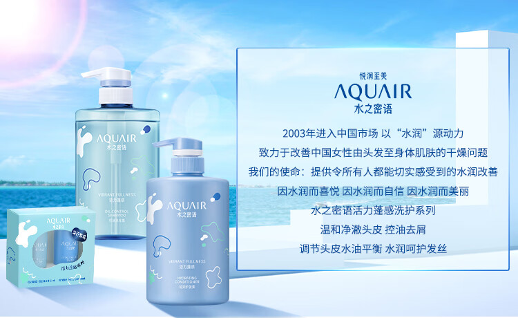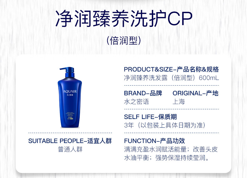 水之密语(AQUAIR)净润臻养洗护套装水润柔顺滋养保湿控油洗发露护发素 倍润型洗发露600ml+沐浴露600ml