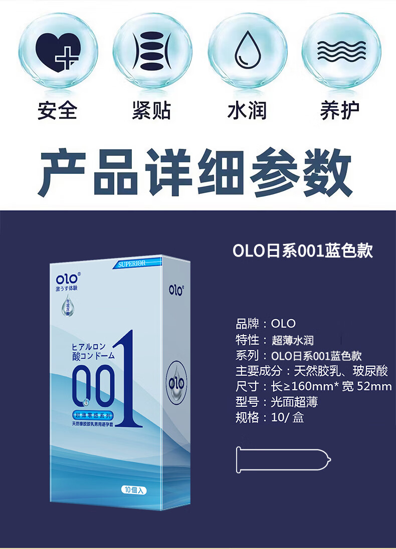 OLO超薄玻尿酸快感水润零感安全套001无感裸入免洗情趣男女夫妻情趣 【10只】超薄零感系列*1盒
