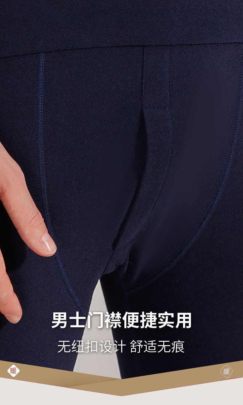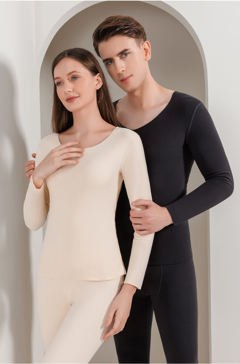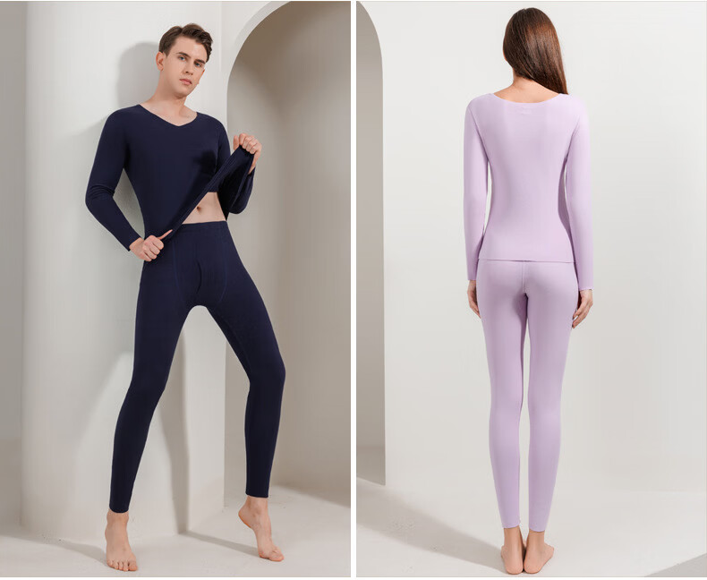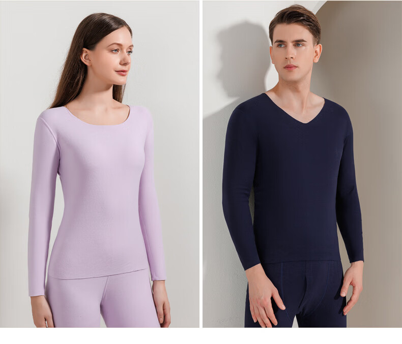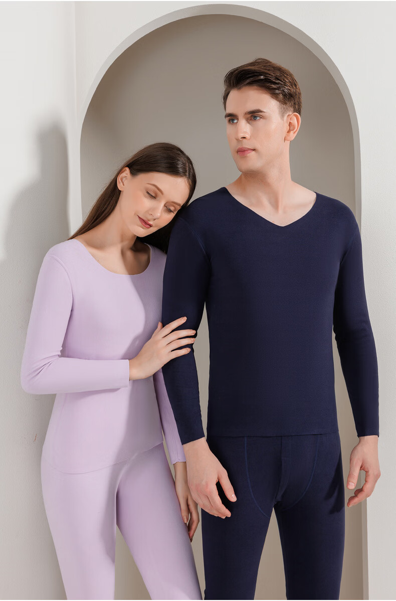 宜而爽圆领纯色保暖套装秋衣情侣款高弹力修身不勒肉暖羊毛双面绒 【男款】牛仔蓝 2XL