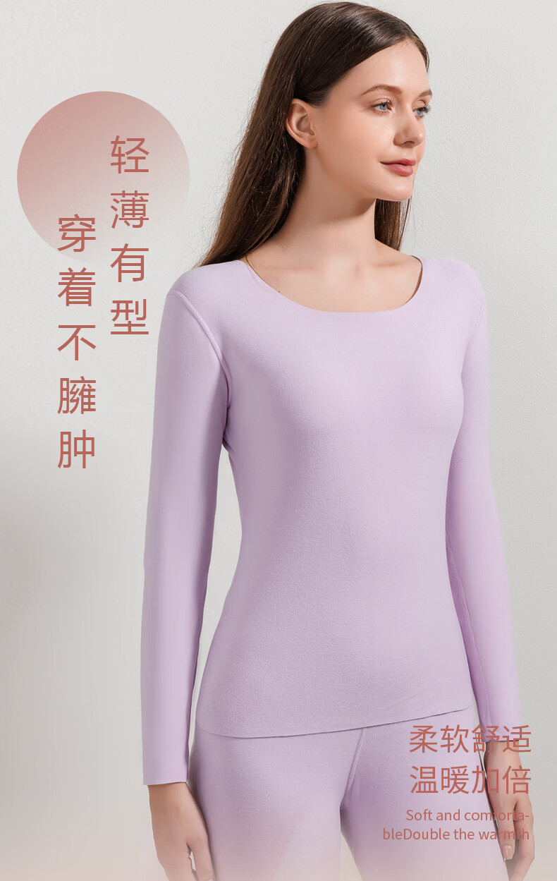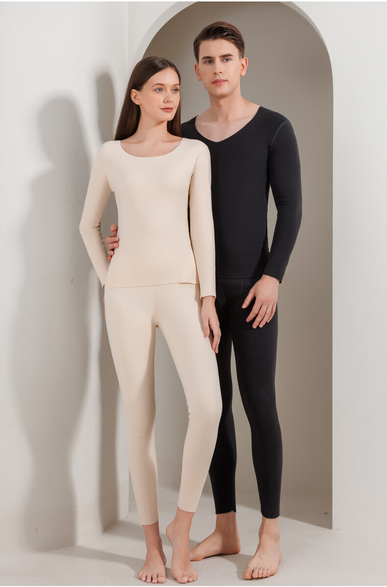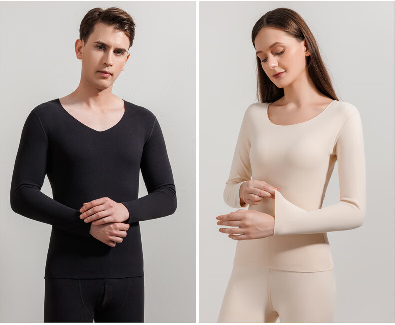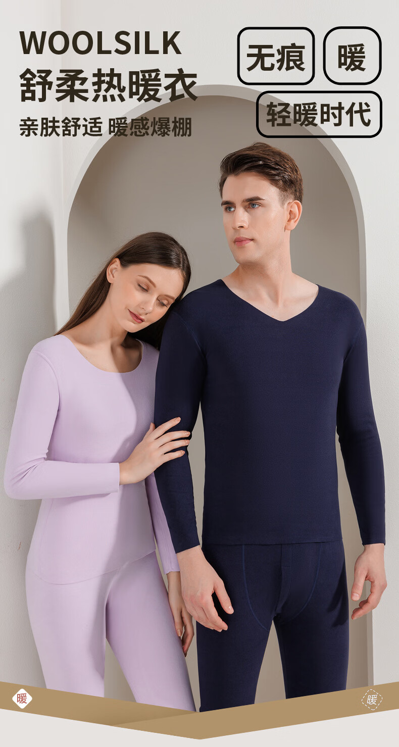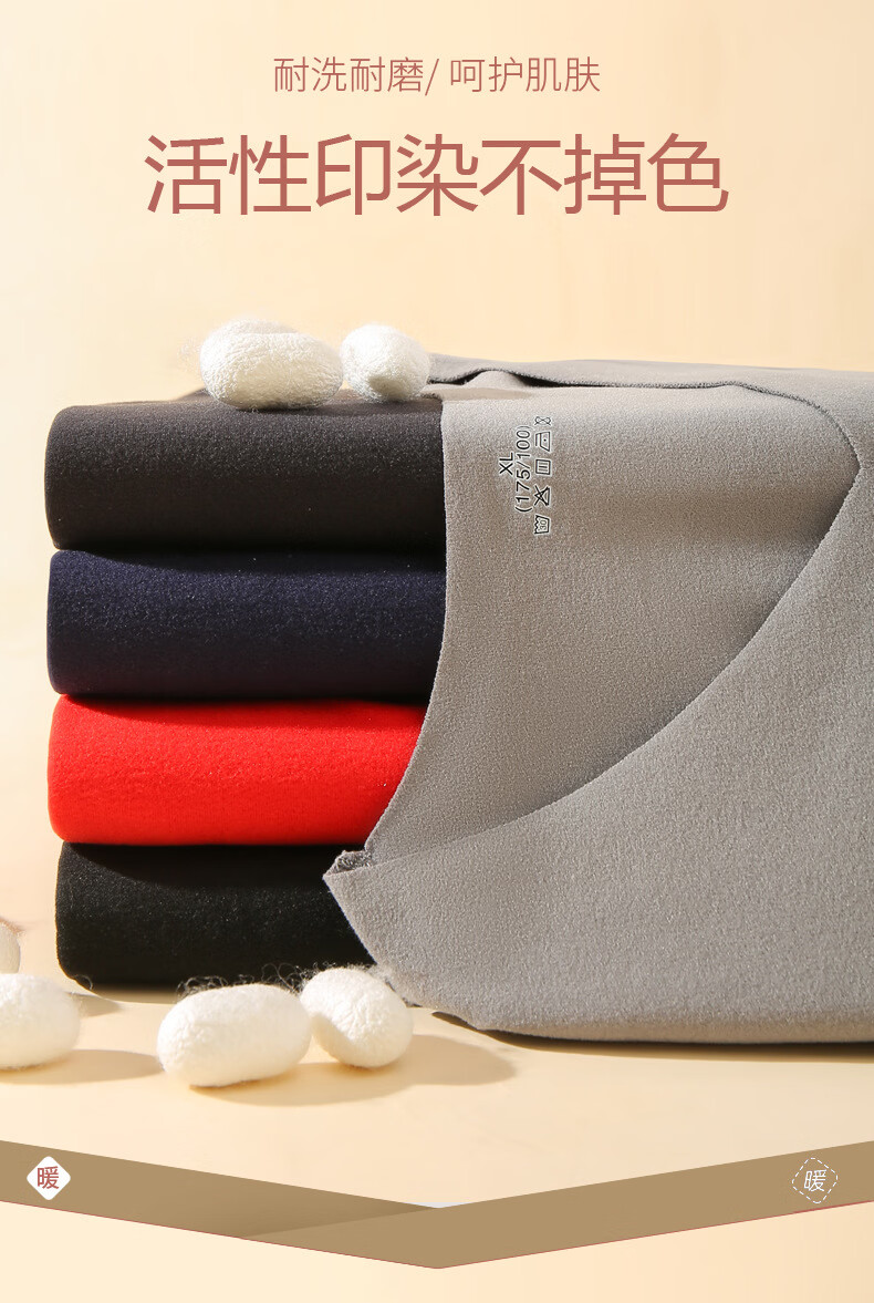 宜而爽圆领纯色保暖套装秋衣情侣款高弹力修身不勒肉暖羊毛双面绒 【男款】牛仔蓝 2XL