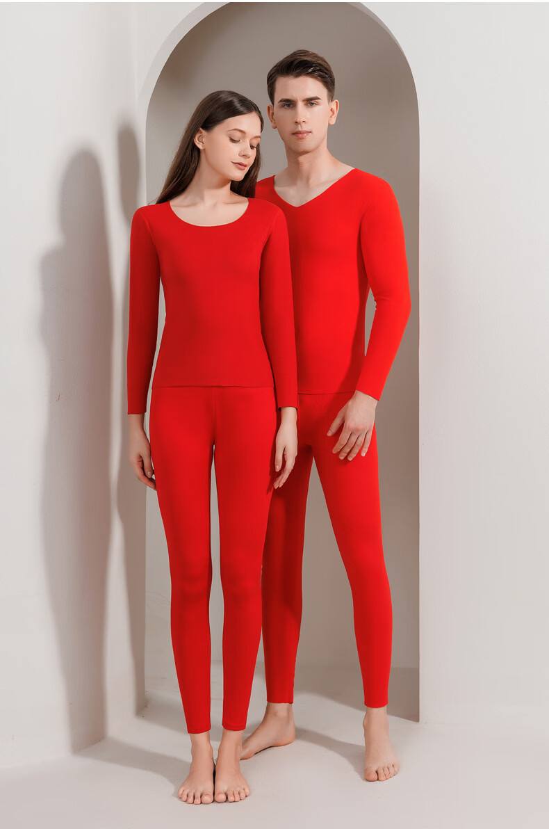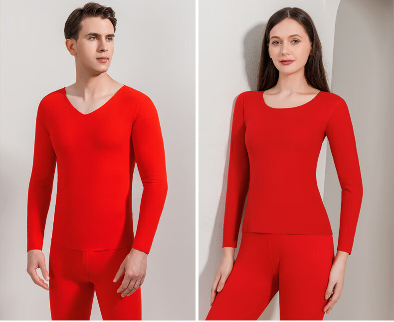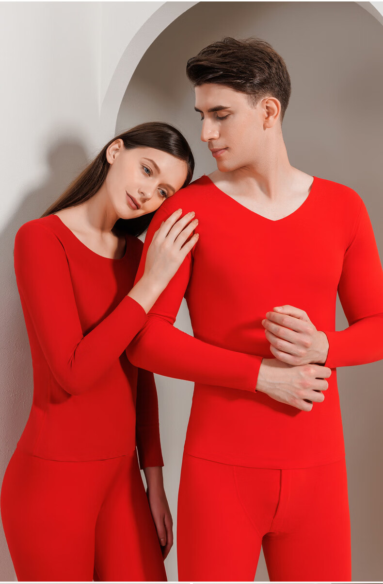 红豆秋冬情侣内衣柔棉圆领秋衣秋裤基础打底保暖内衣套装 女款大红 L 170/95