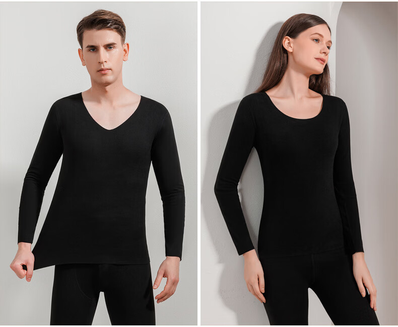 红豆打底衫2025新款男士秋冬类德绒加厚保暖内搭长袖t恤 黑色 2XL