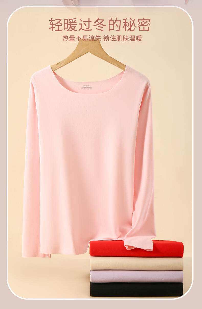 华婷露(Huatinglu)半高领仿德绒内搭长袖打底衫衣女2024秋冬漂亮小衫修身保暖上衣 安可拉红 L (95-110斤)