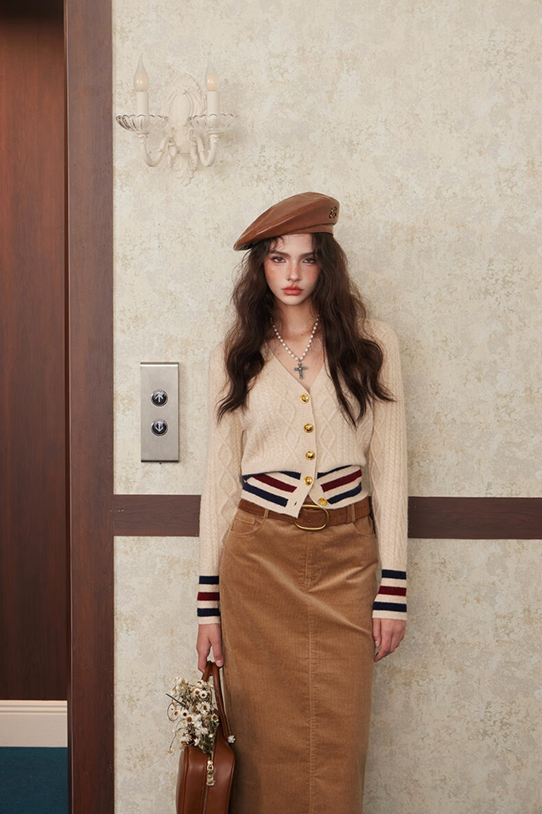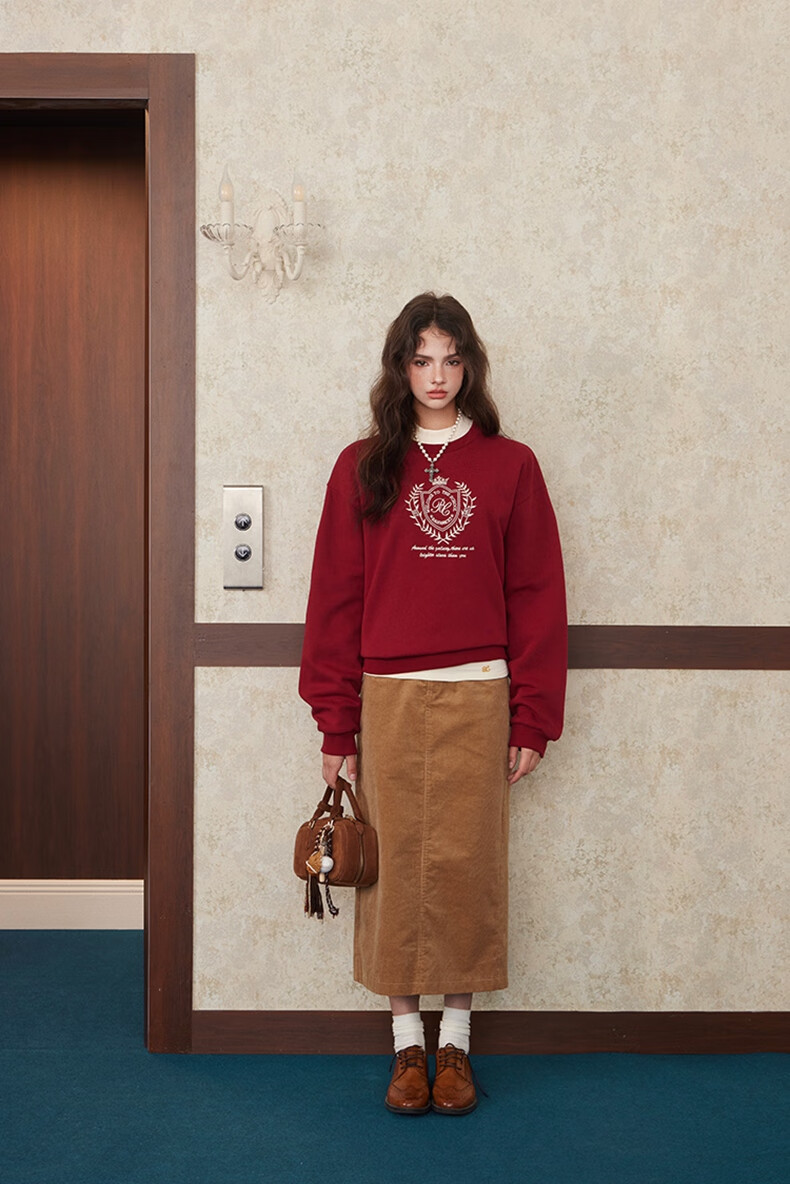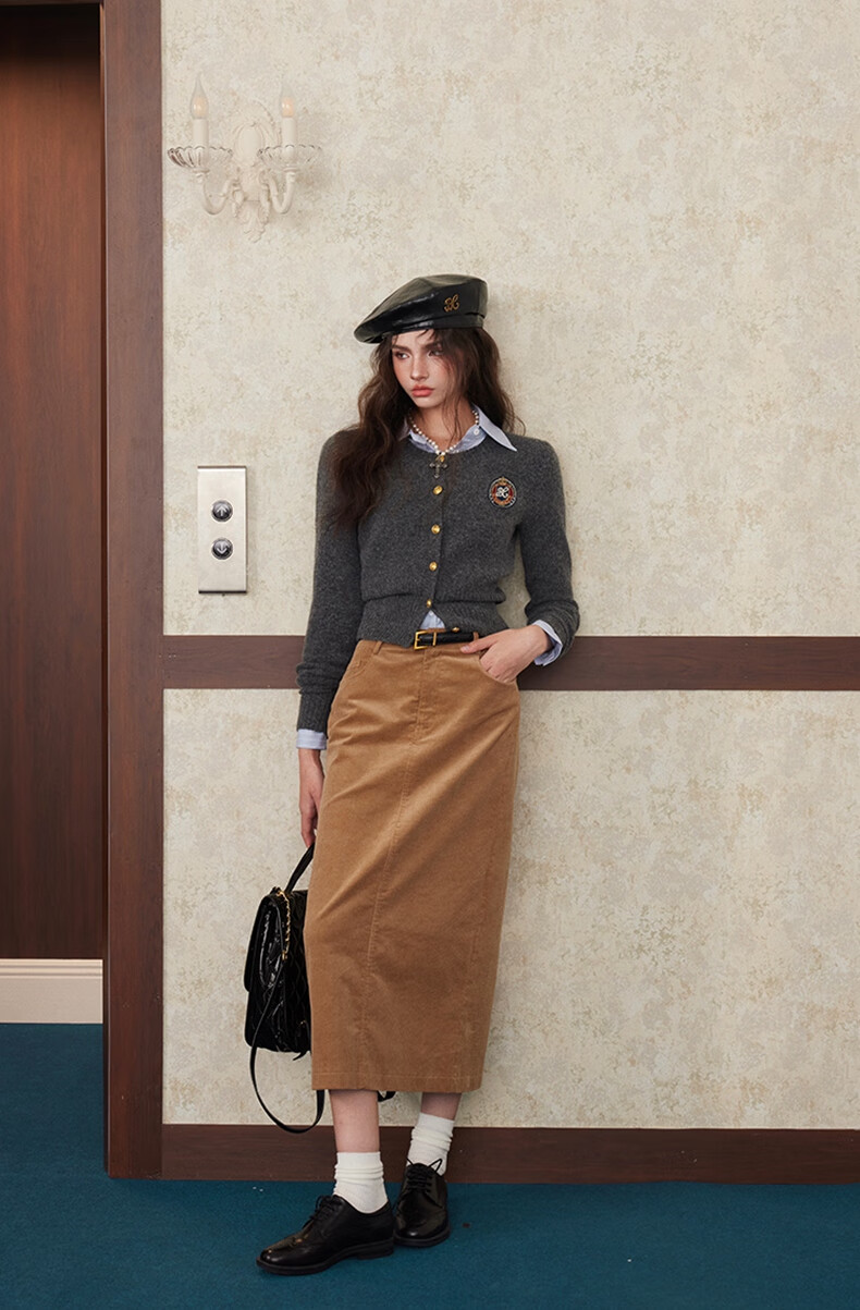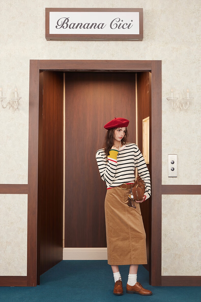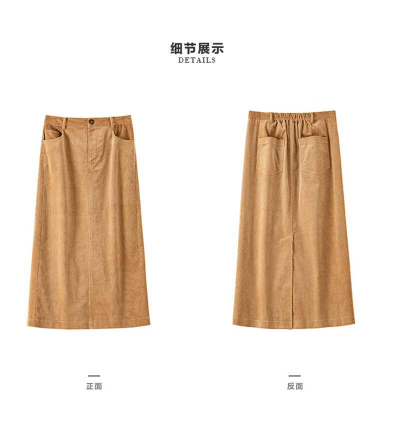 banana cici2024年冬季新款复古百搭灯芯绒直筒高腰中长款半身裙C2F4QZ187 咖啡色 M