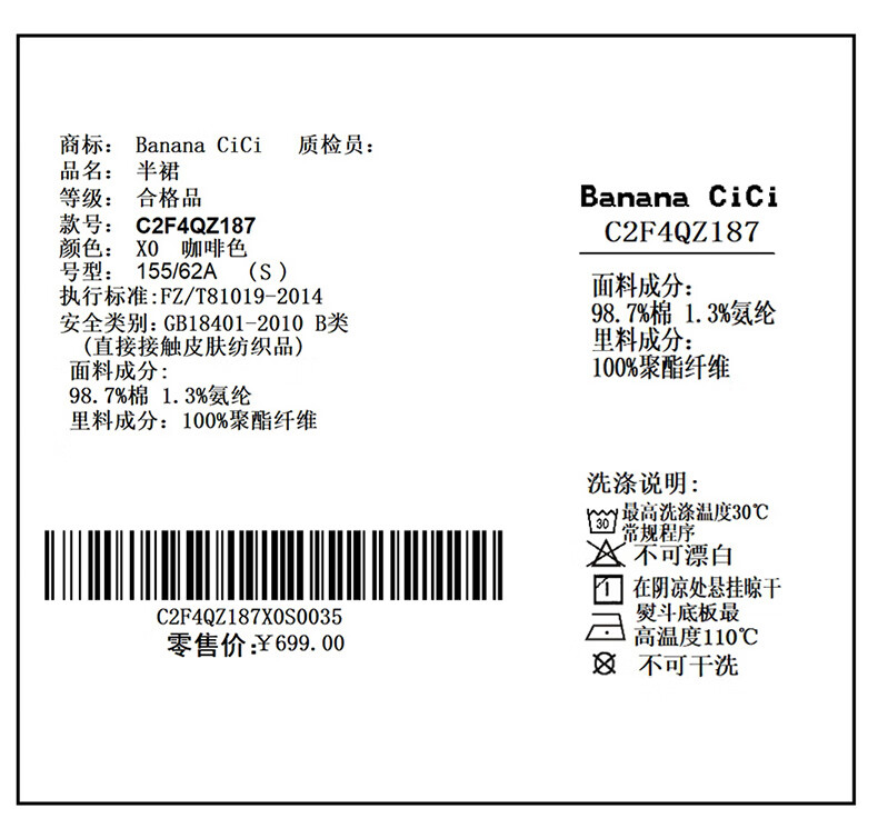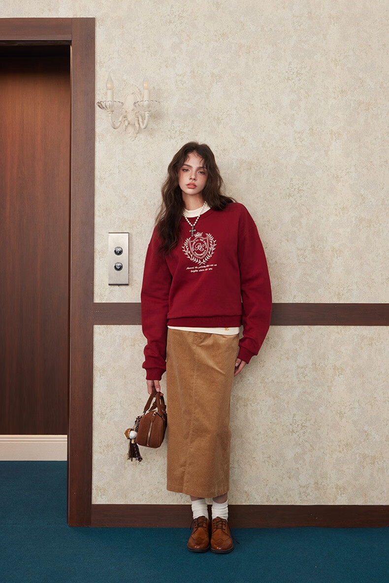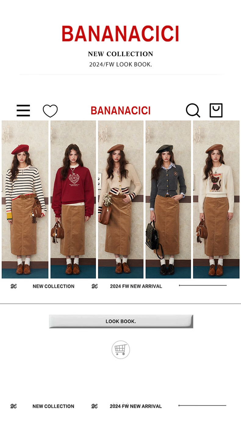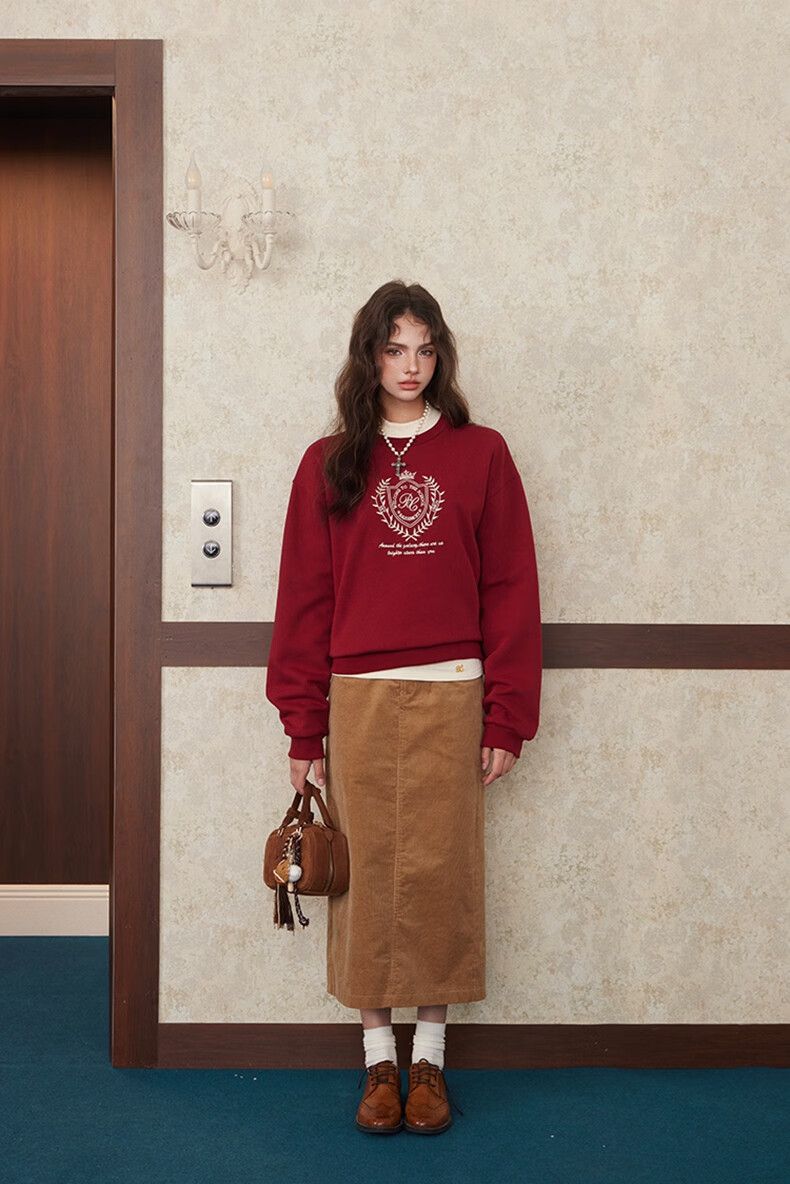 banana cici2024年冬季新款复古百搭灯芯绒直筒高腰中长款半身裙C2F4QZ187 咖啡色 M