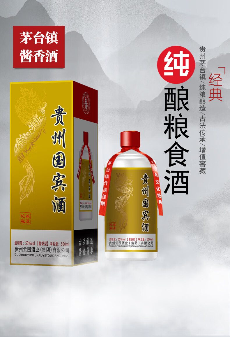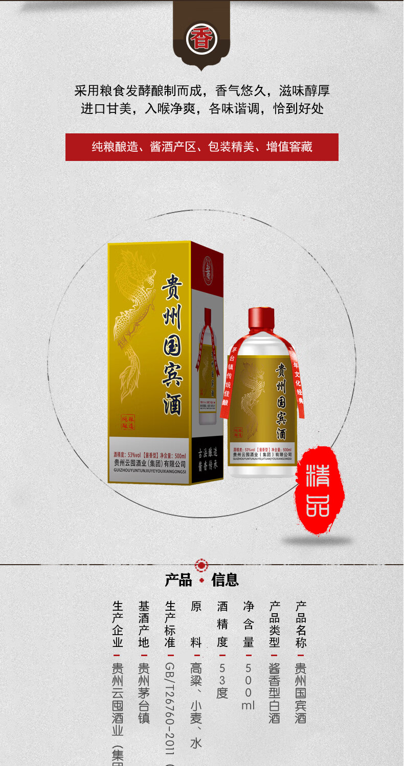 鲲九潭贵州茅台镇 酱香型白酒 53度纯粮食酒整箱鲲九潭国宾酒礼盒500ML 53度 500mL 6盒 国宾酒整箱
