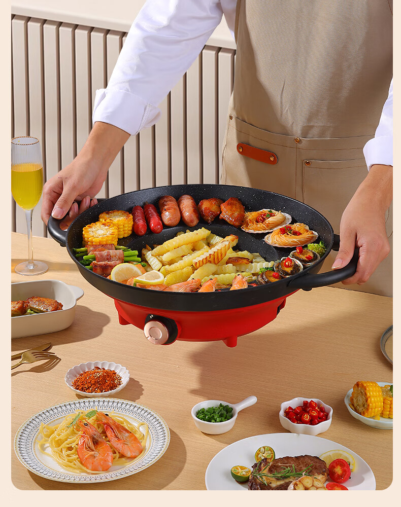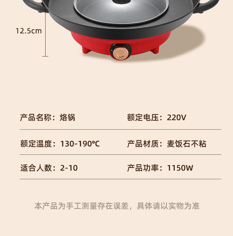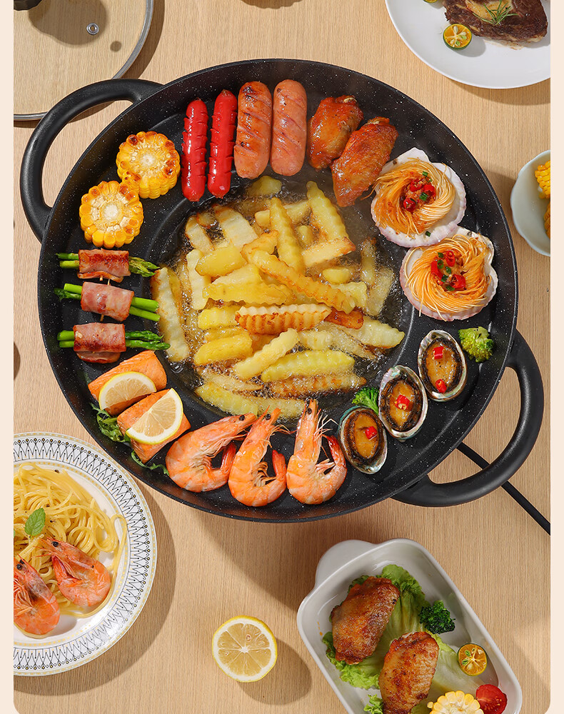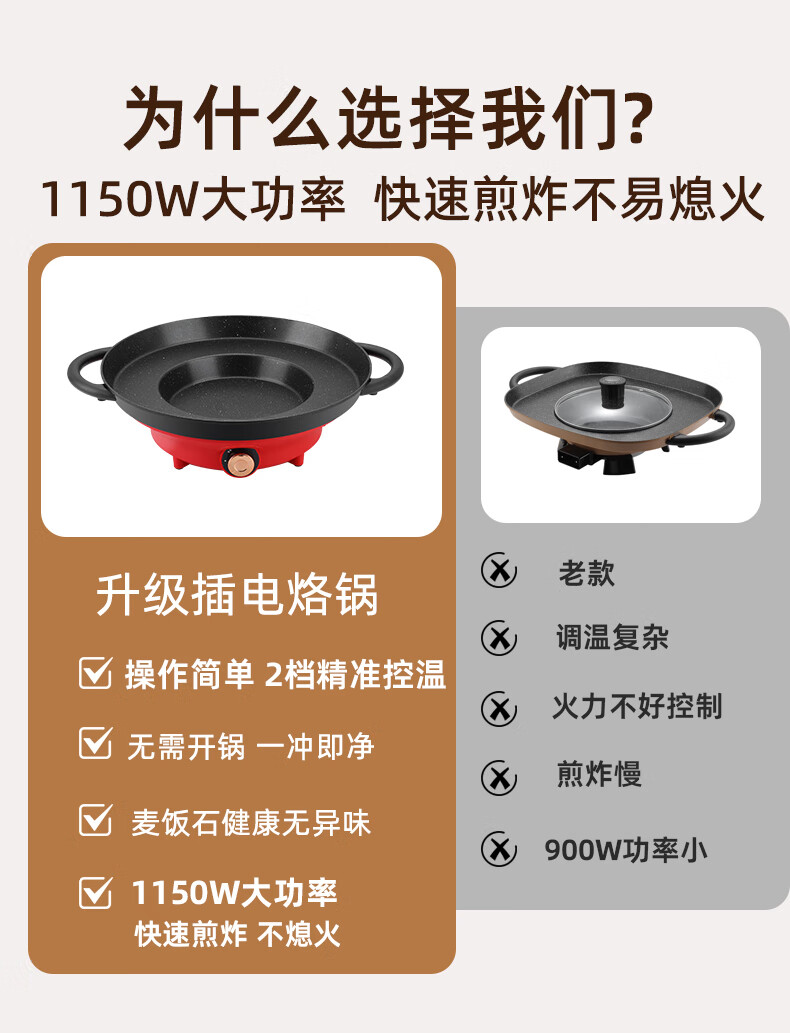 平底锅插电式插电款贵州烙锅家用多功能烧烤一体锅炸洋 1150W大功率(带盖)+铲+土豆刀