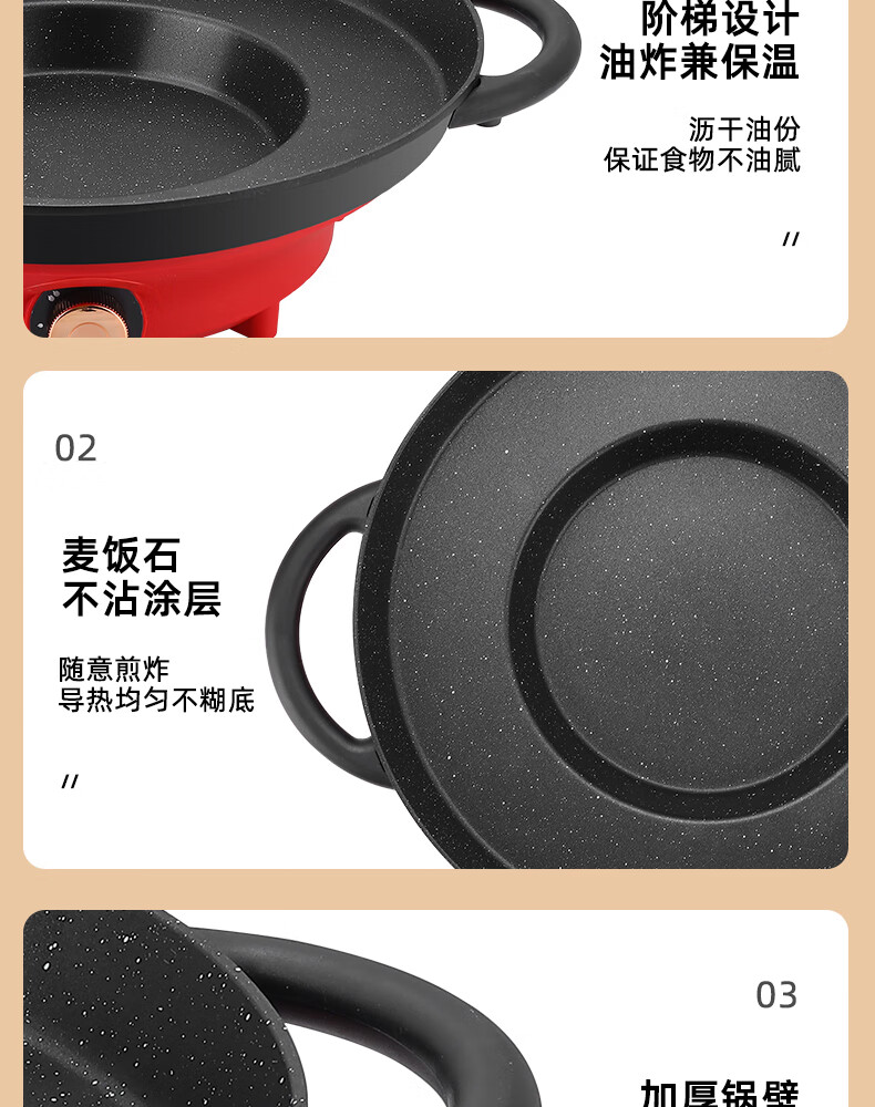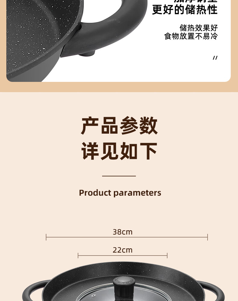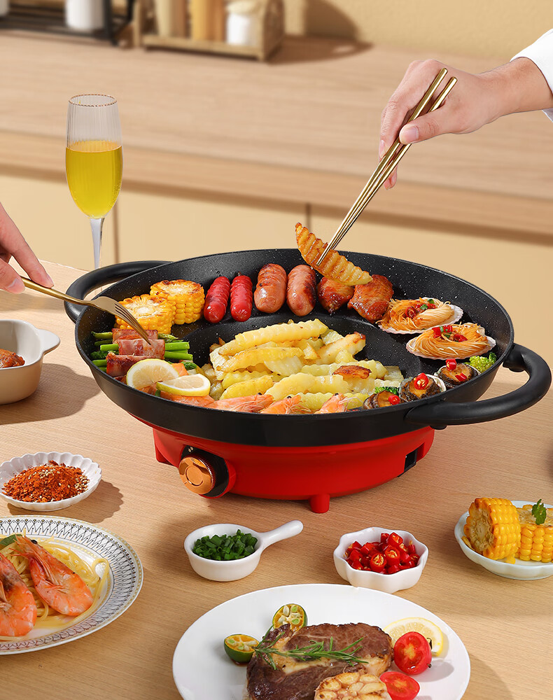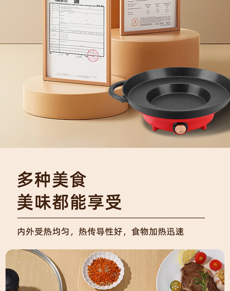平底锅插电式插电款贵州烙锅家用多功能烧烤一体锅炸洋 1150W大功率(带盖)+铲+土豆刀