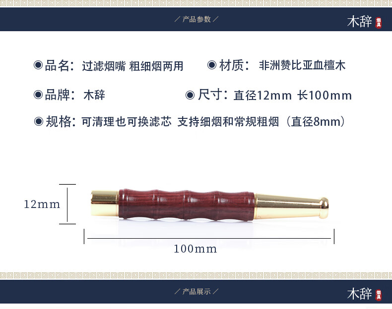 木辞 红檀木过滤烟嘴粗细支两通用循环型过滤芯器循环型实木男士烟具