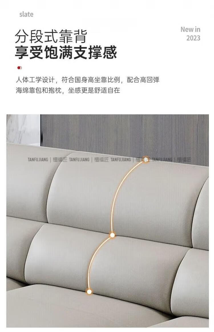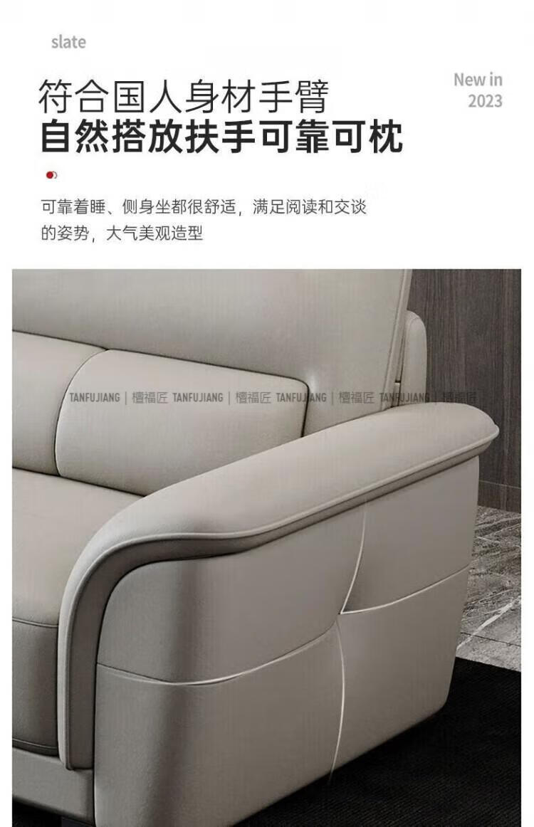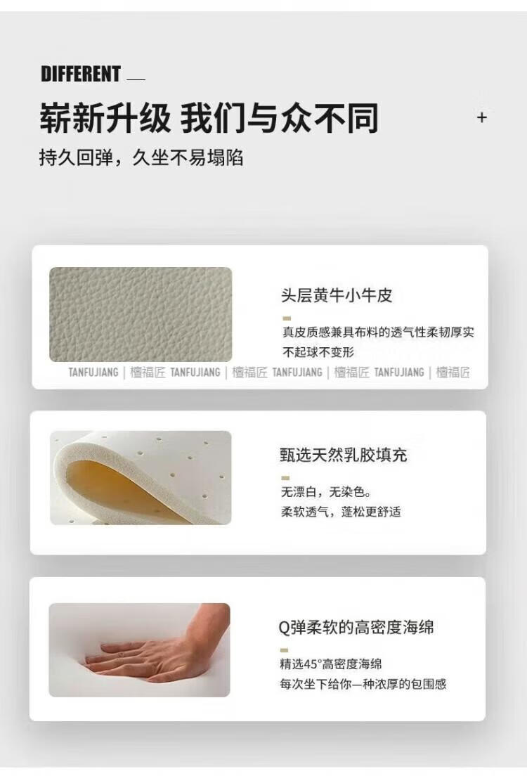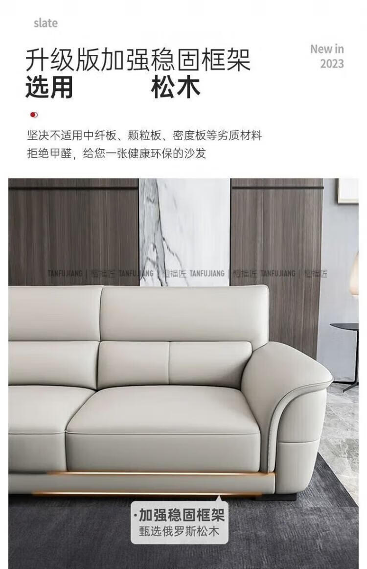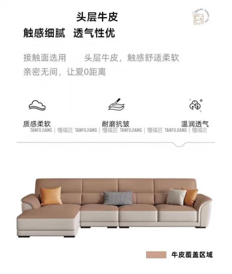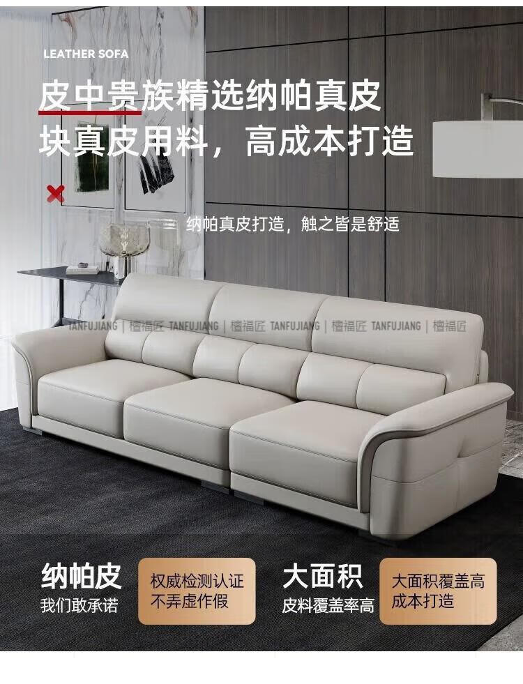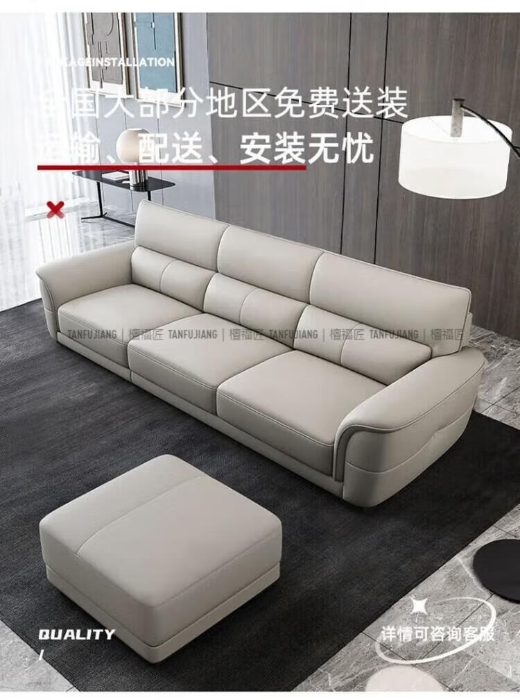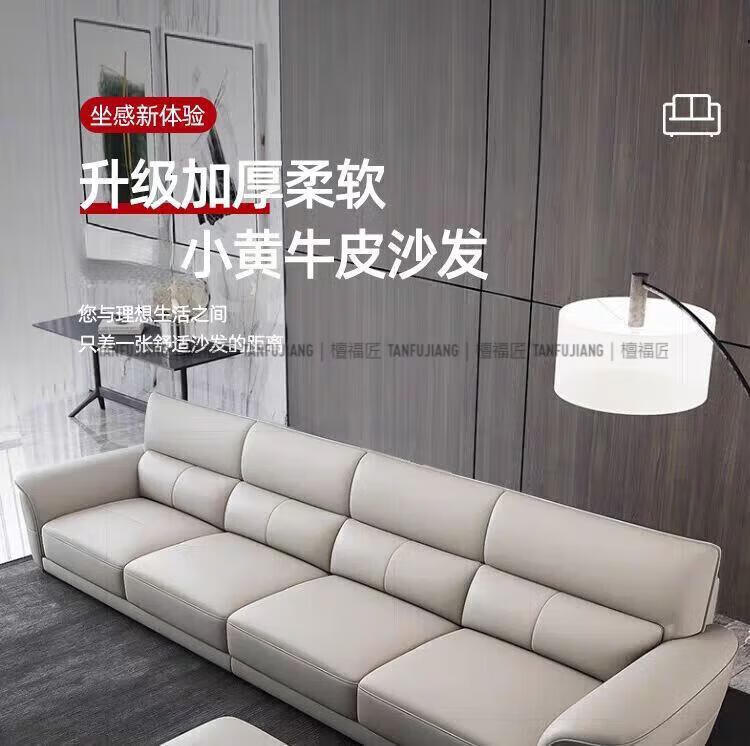 檀福匠2026新款沙发客厅现代简约头层牛皮大小户型带贵妃直排组合沙发 接触面牛皮 乳胶款 大四人位+脚踏 3.2m