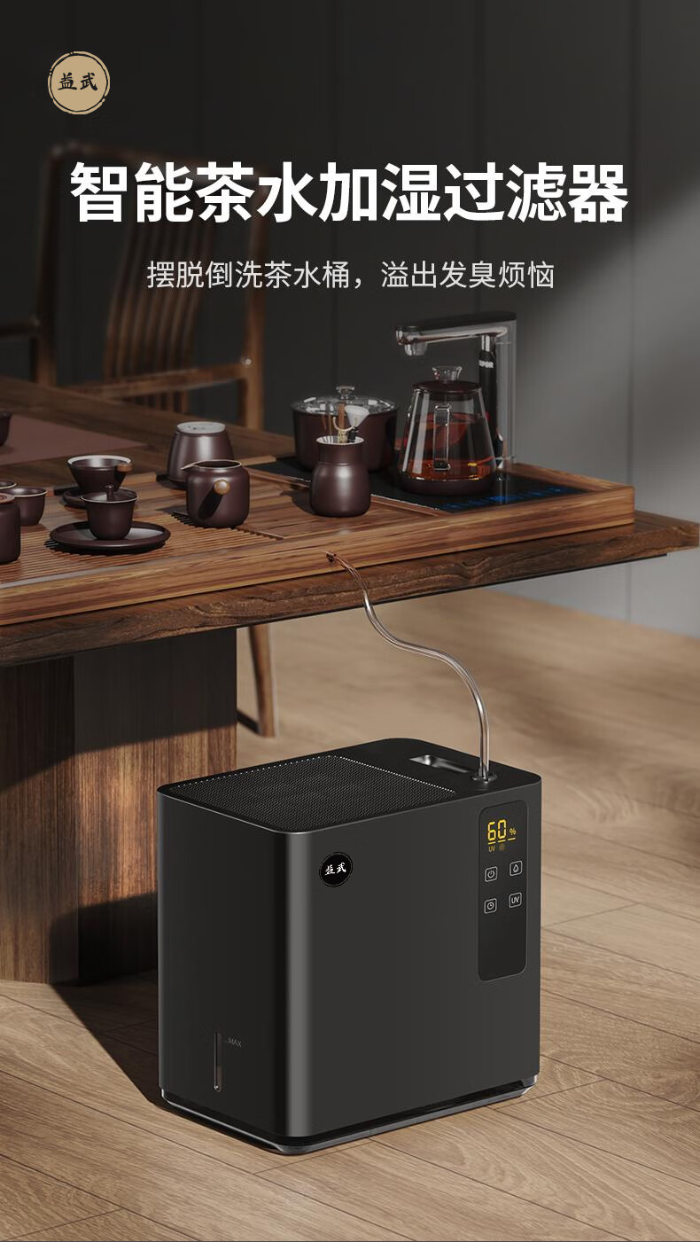 益武免倒茶水桶办公室无雾加湿器家电客厅抑菌茶渣桶废水桶茶桶AI语音 星夜黑【三芯装】