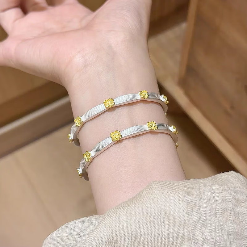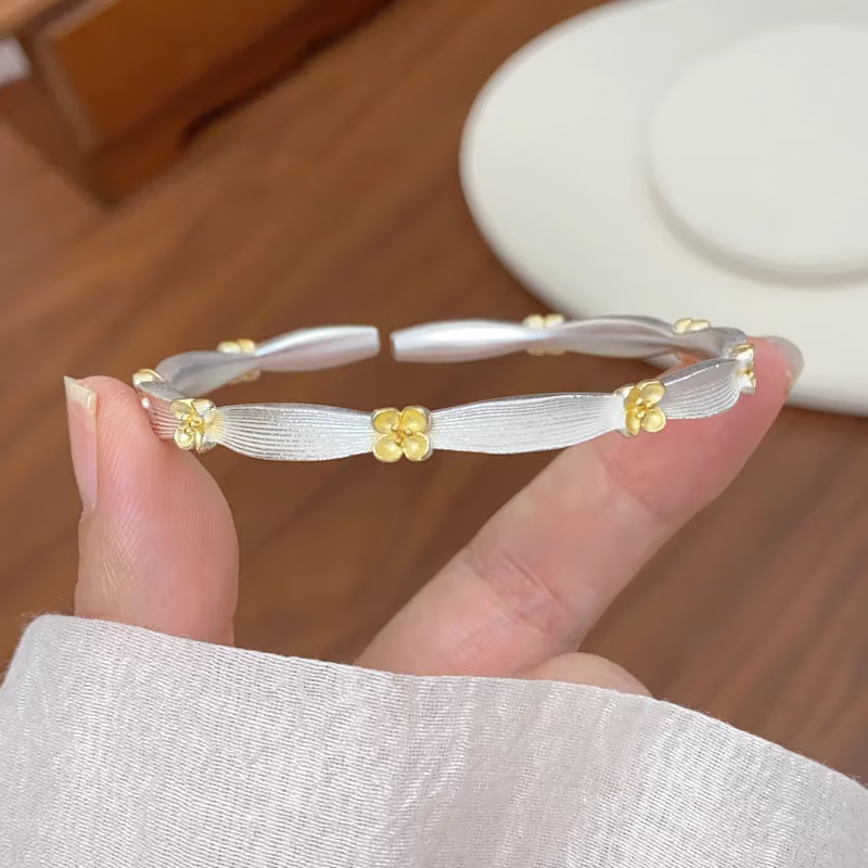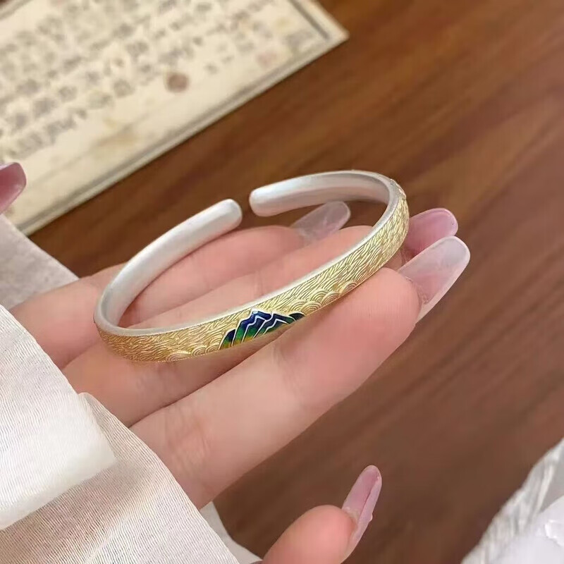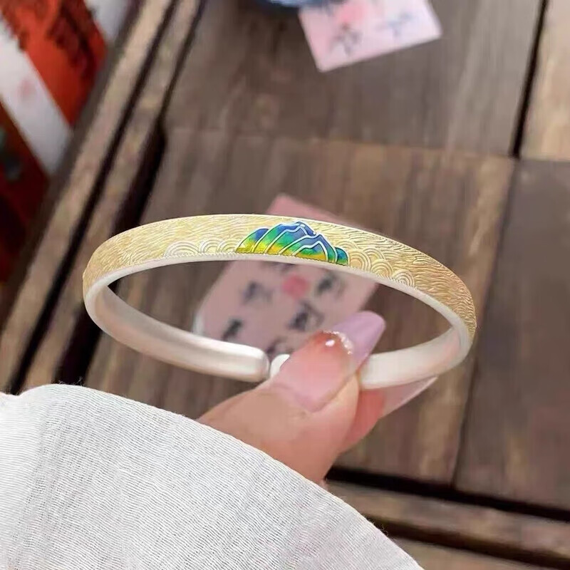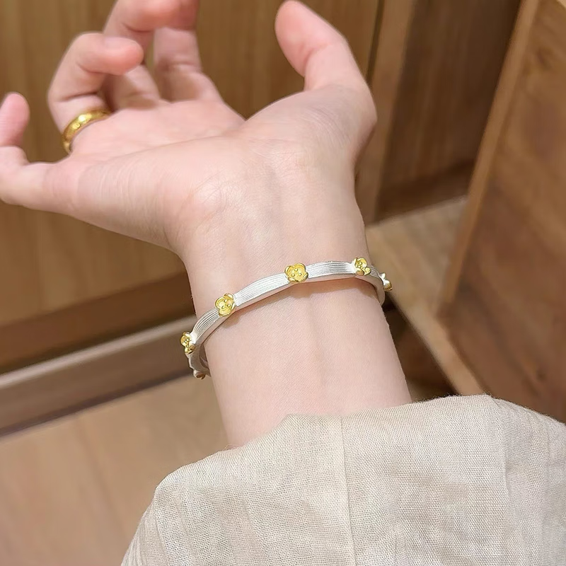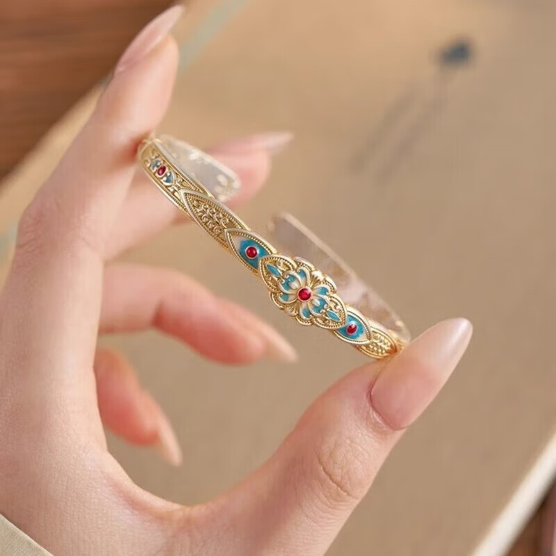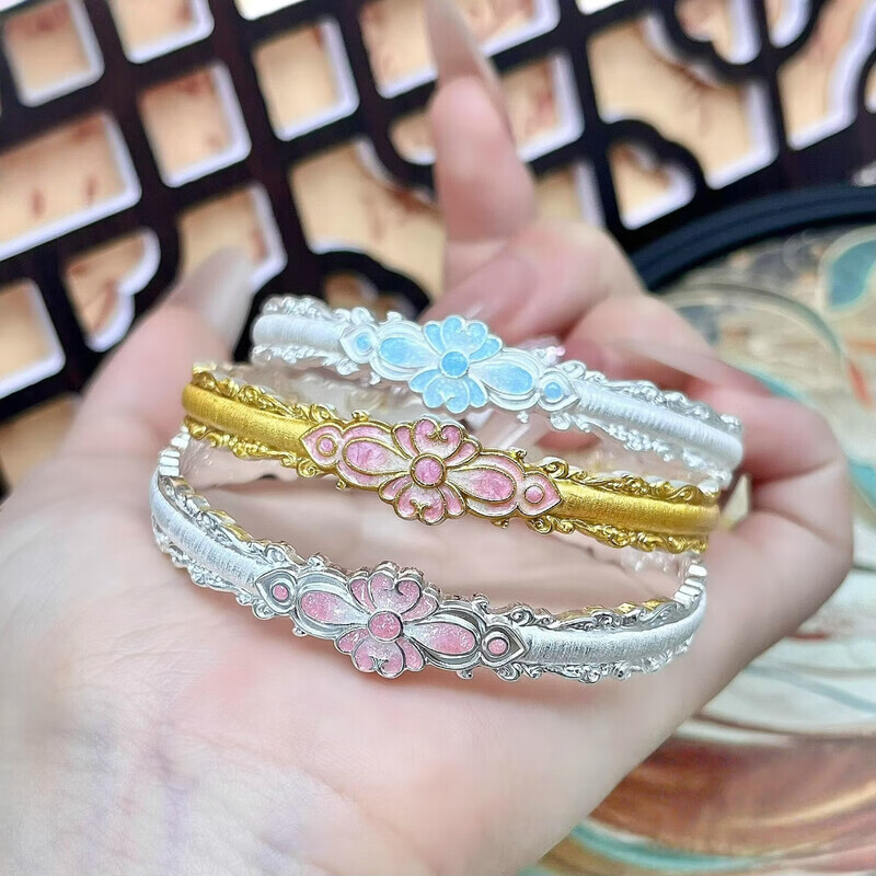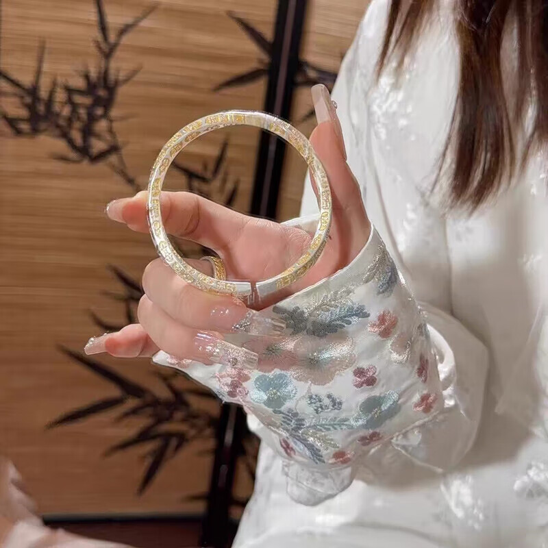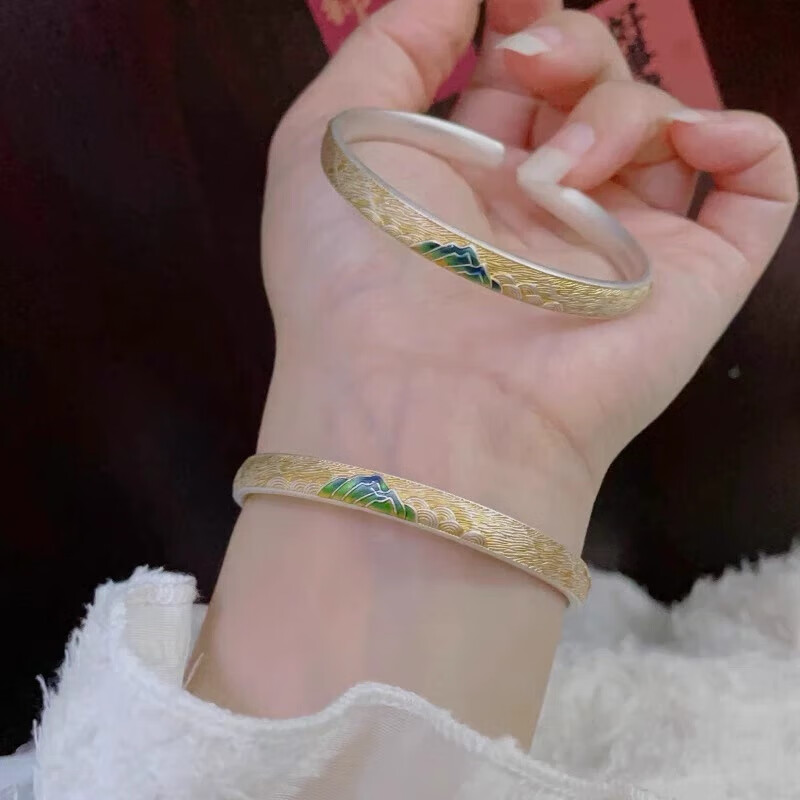 老凰祥足银9999浮云卷手镯新款纯银镯子卷草纹繁花手环礼物送女友 祥云卷草纹描金圈口60
