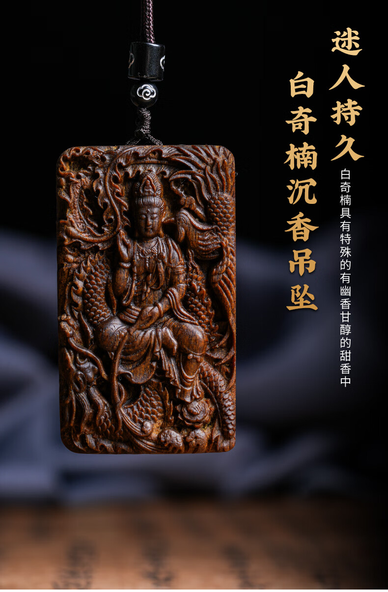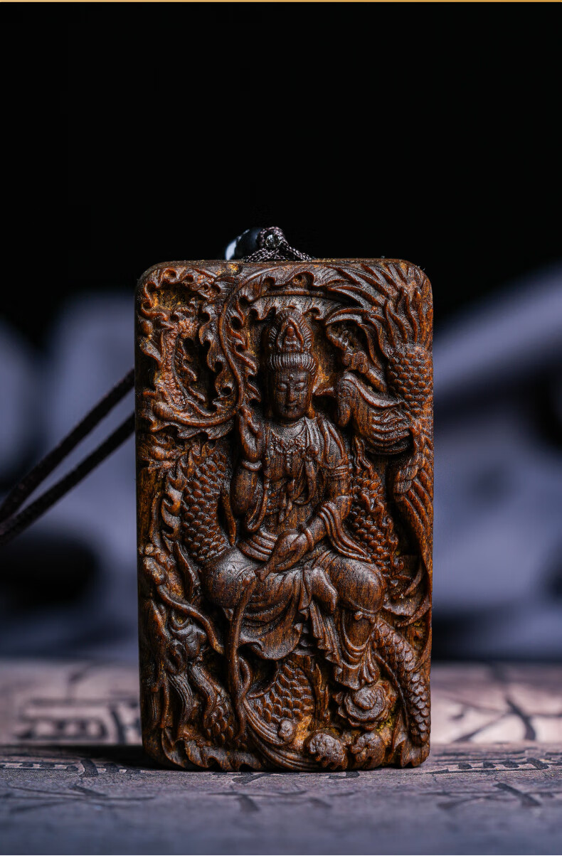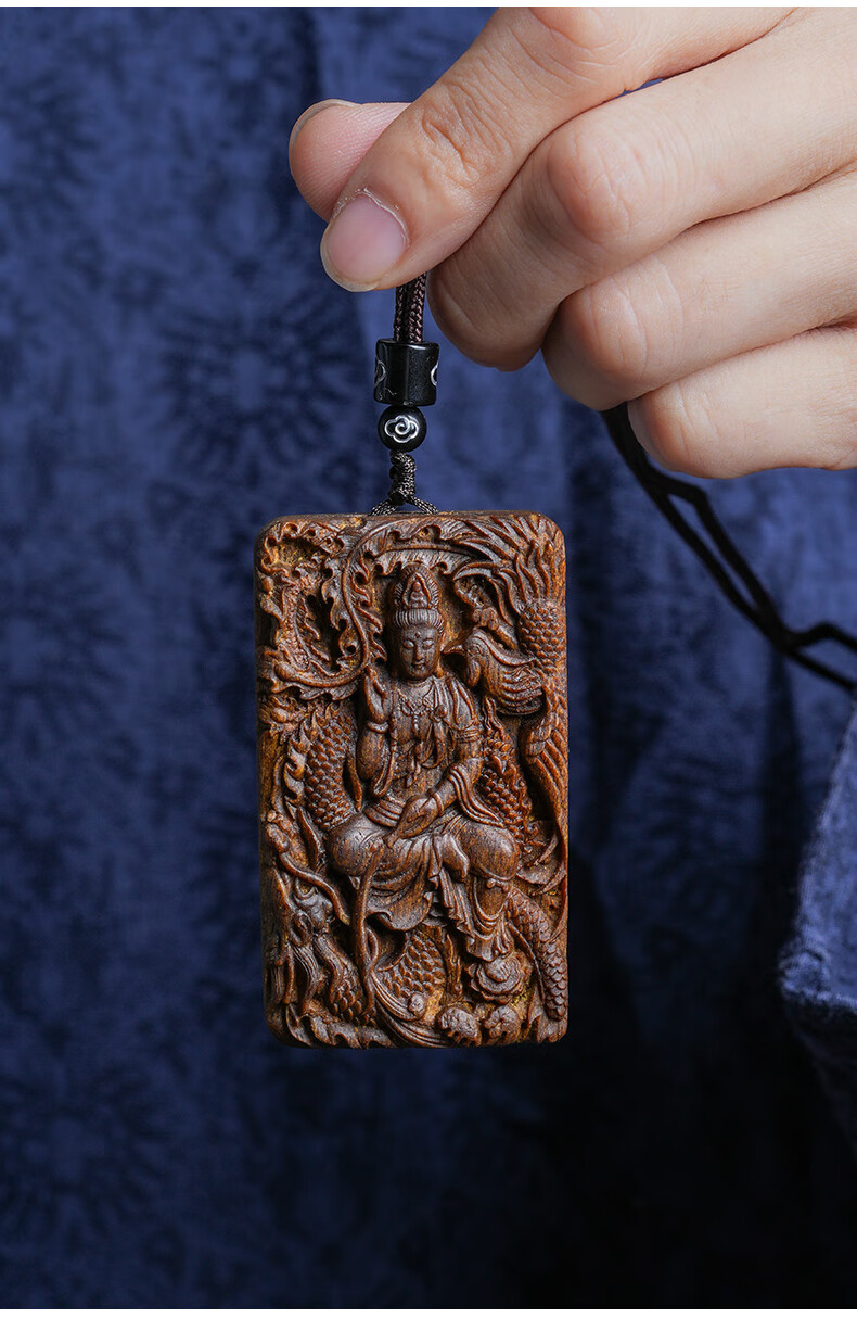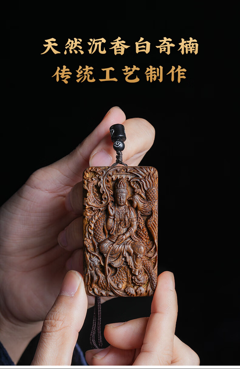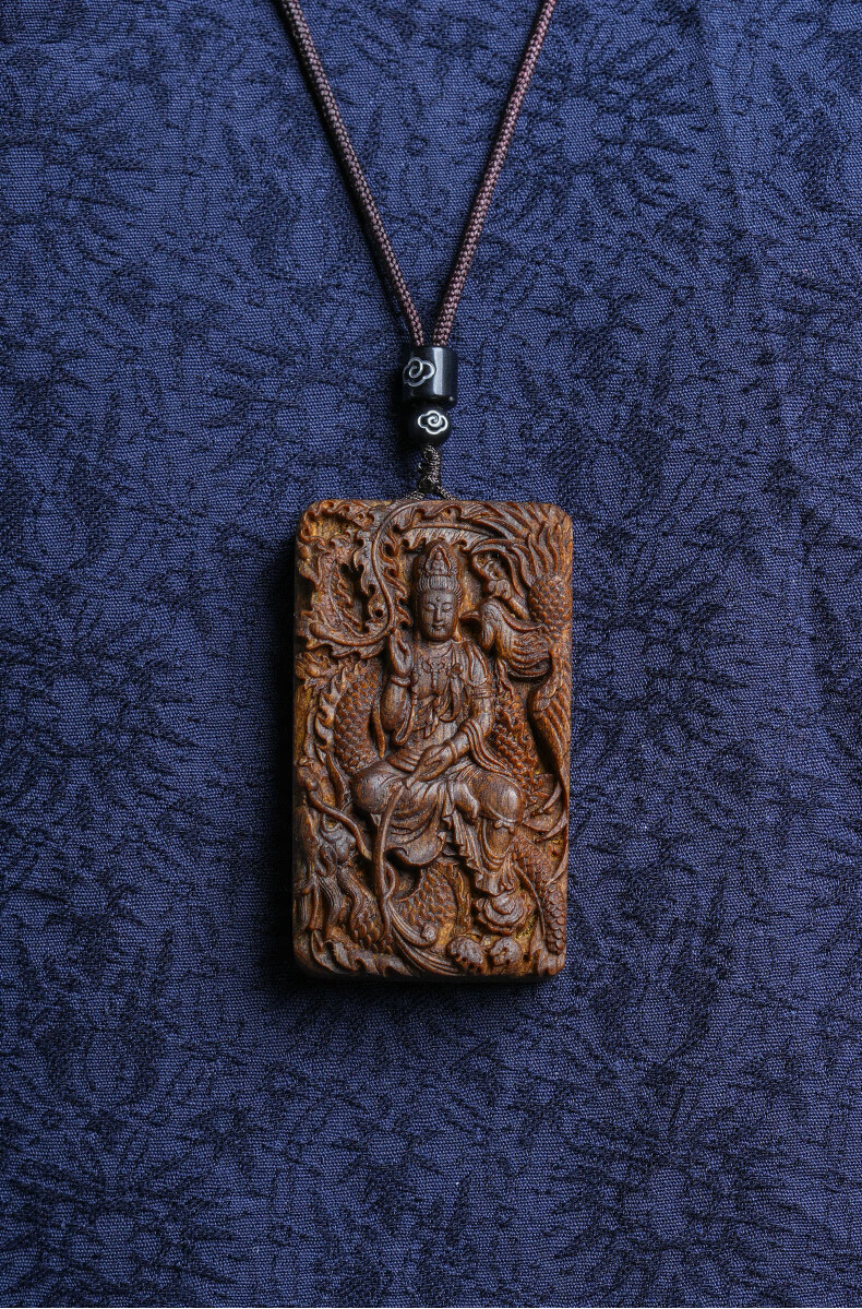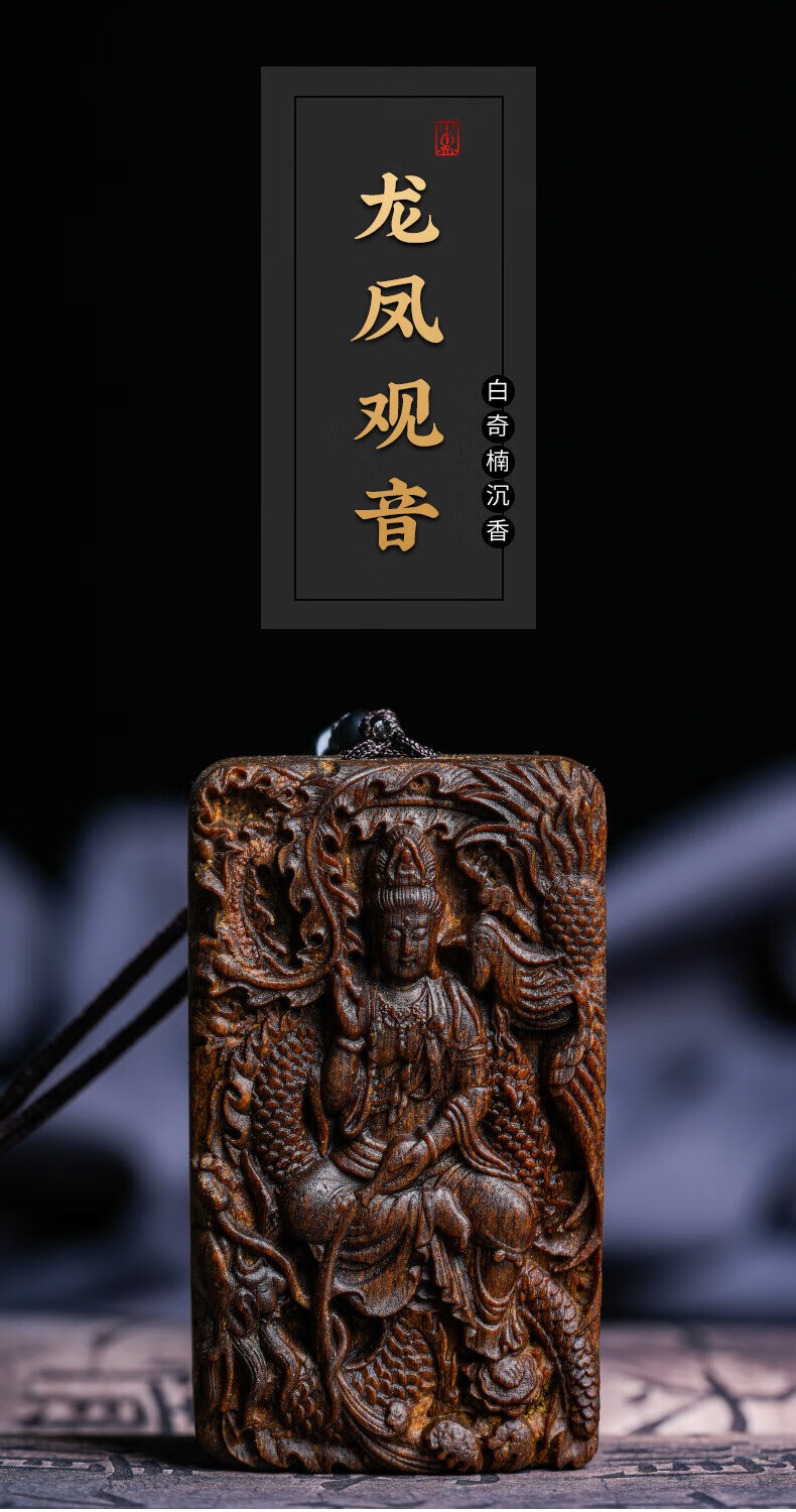 越南芽庄龙凤呈祥观音吊坠男女款白奇楠沉香木观音菩萨项链挂件饰