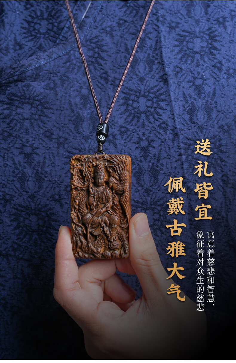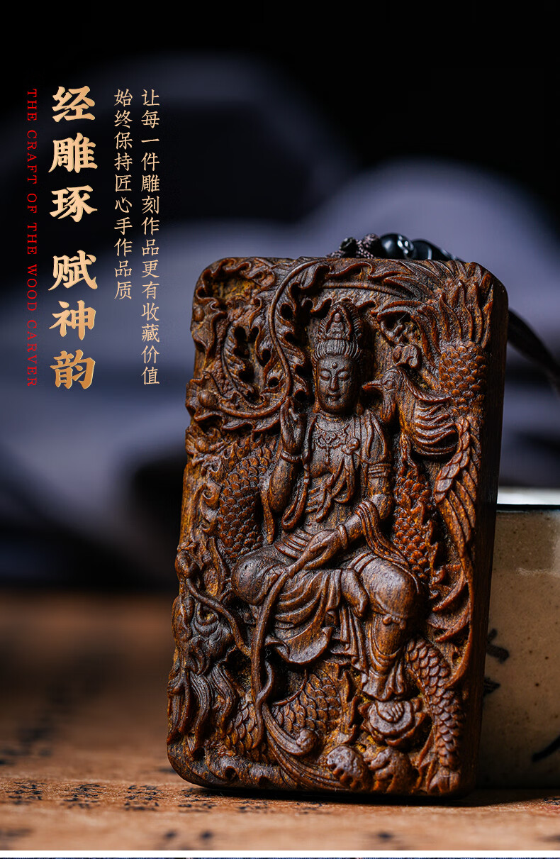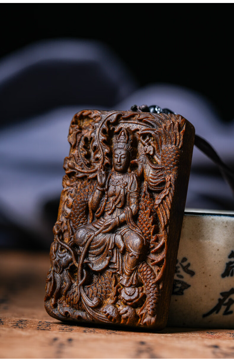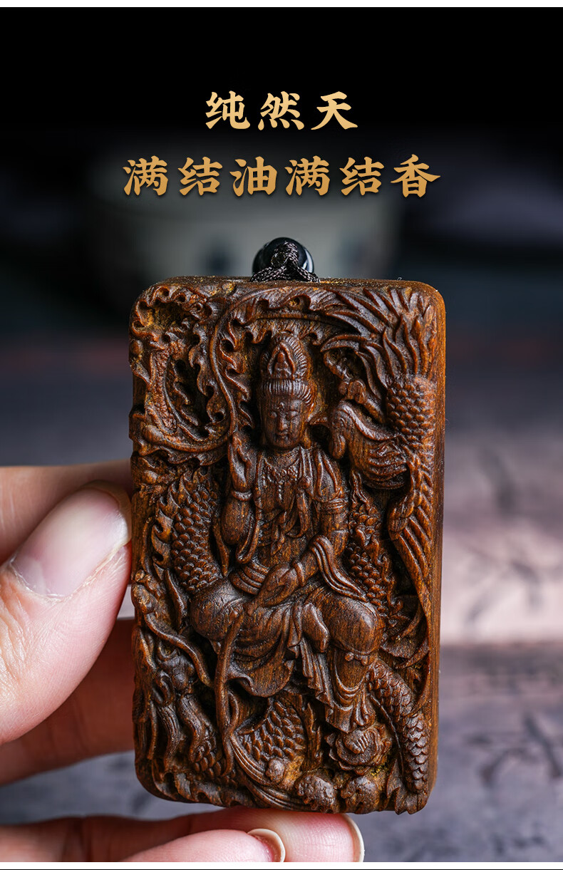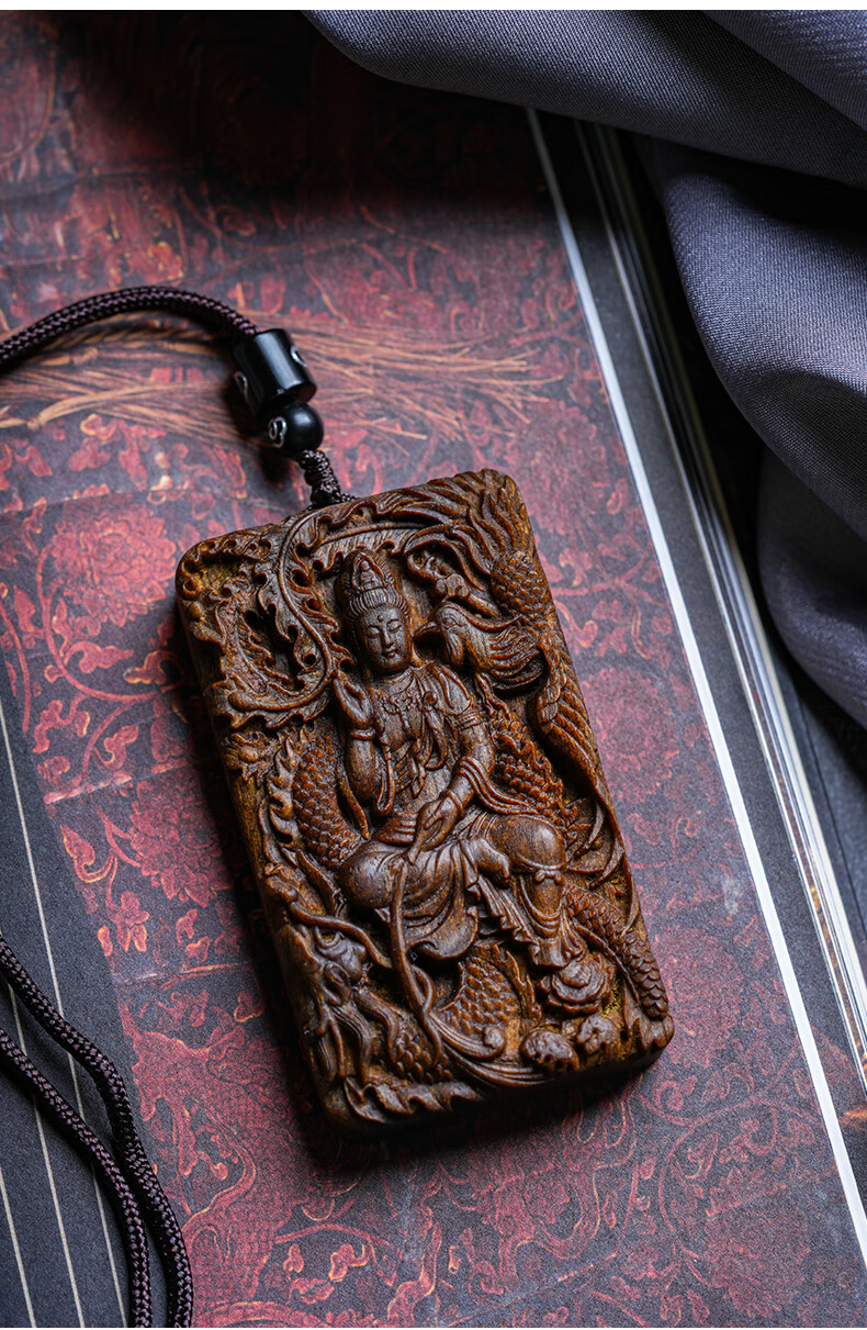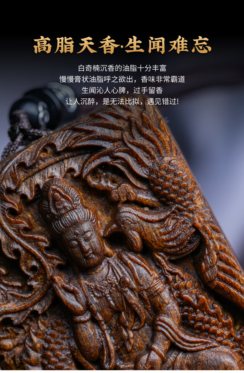 越南芽庄龙凤呈祥观音吊坠男女款白奇楠沉香木观音菩萨项链挂件饰