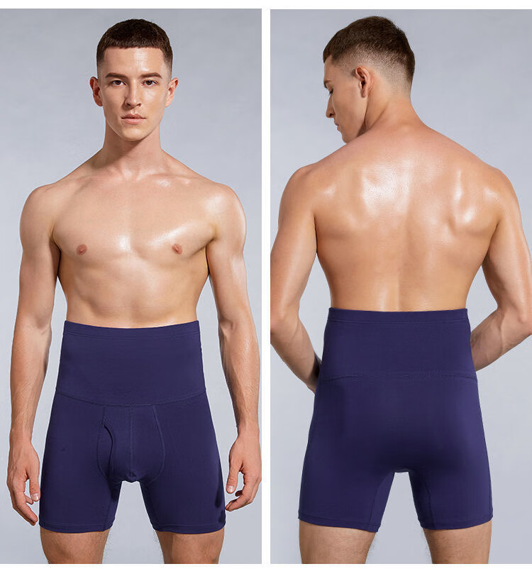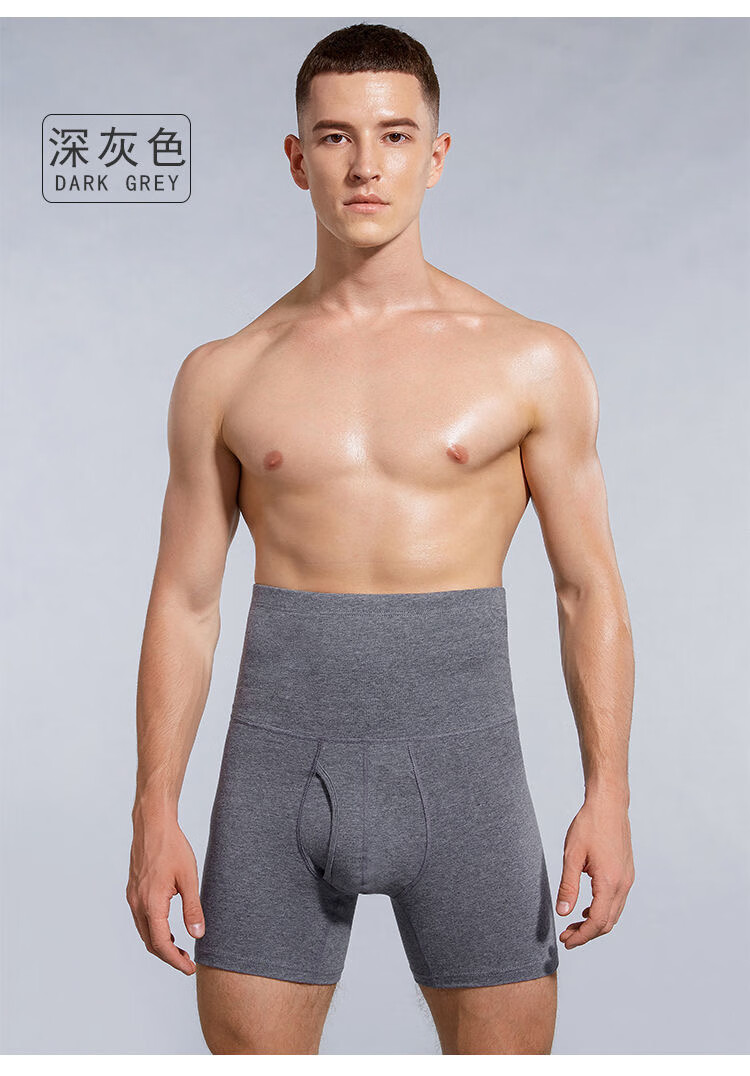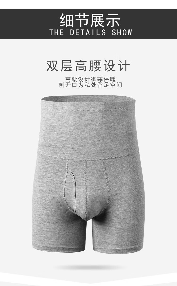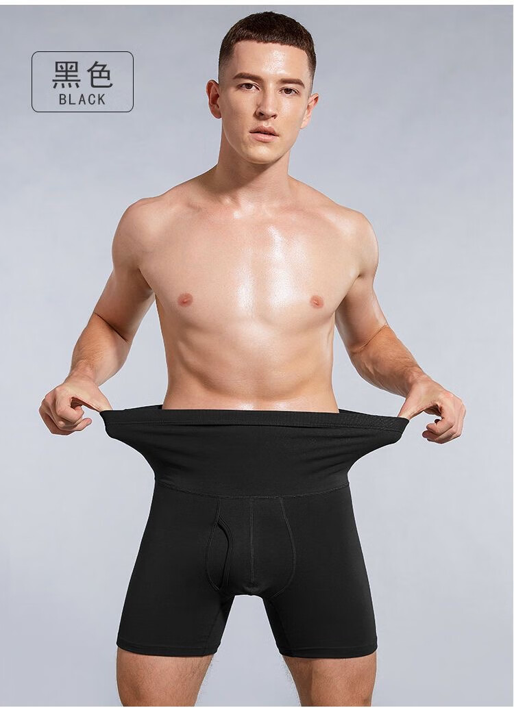 品博龙男士纯棉内裤高腰收腹加长加大宽松加肥大码防磨腿保暖护平角裤 2条黑色+宝蓝 3XL 150-170斤