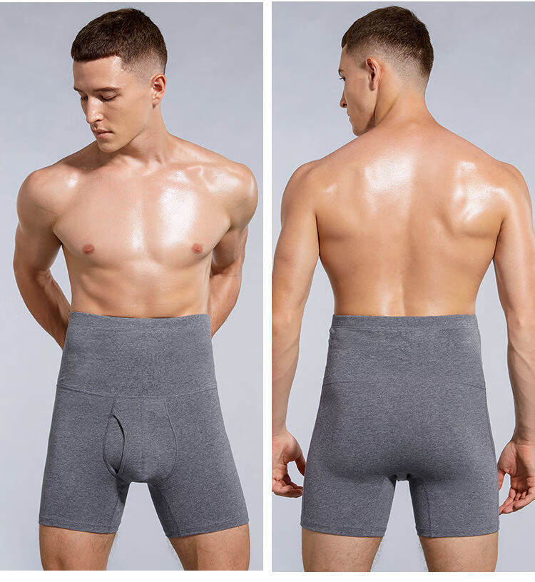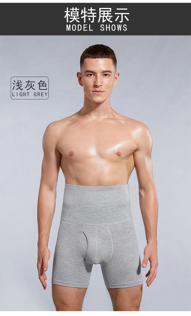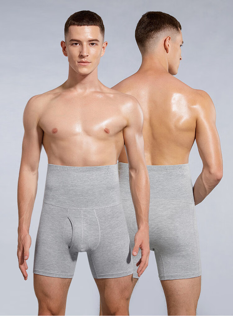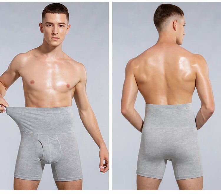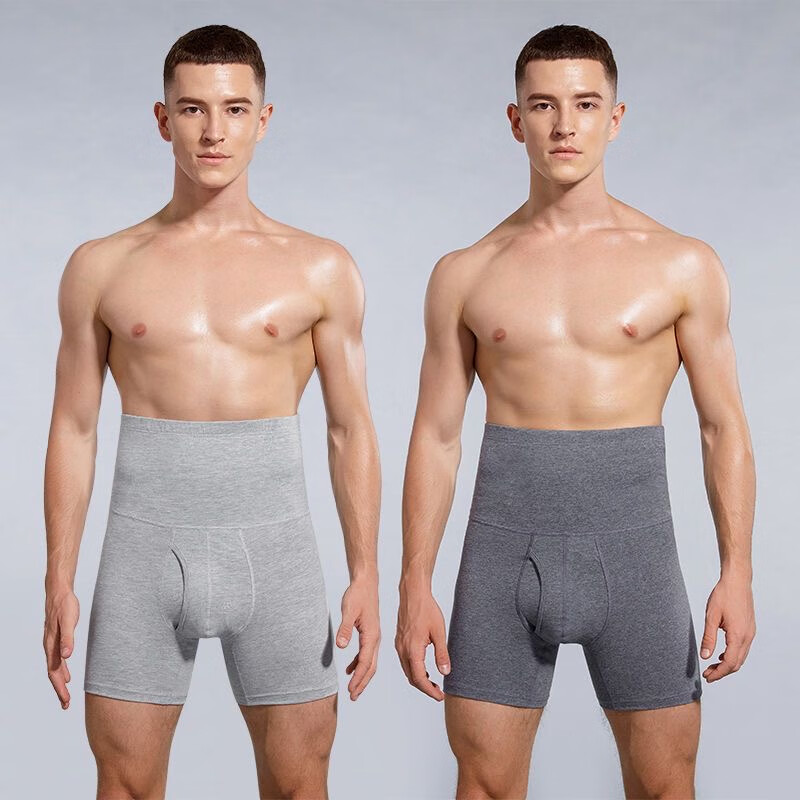 品博龙男士纯棉内裤高腰收腹加长加大宽松加肥大码防磨腿保暖护平角裤 2条黑色+宝蓝 3XL 150-170斤