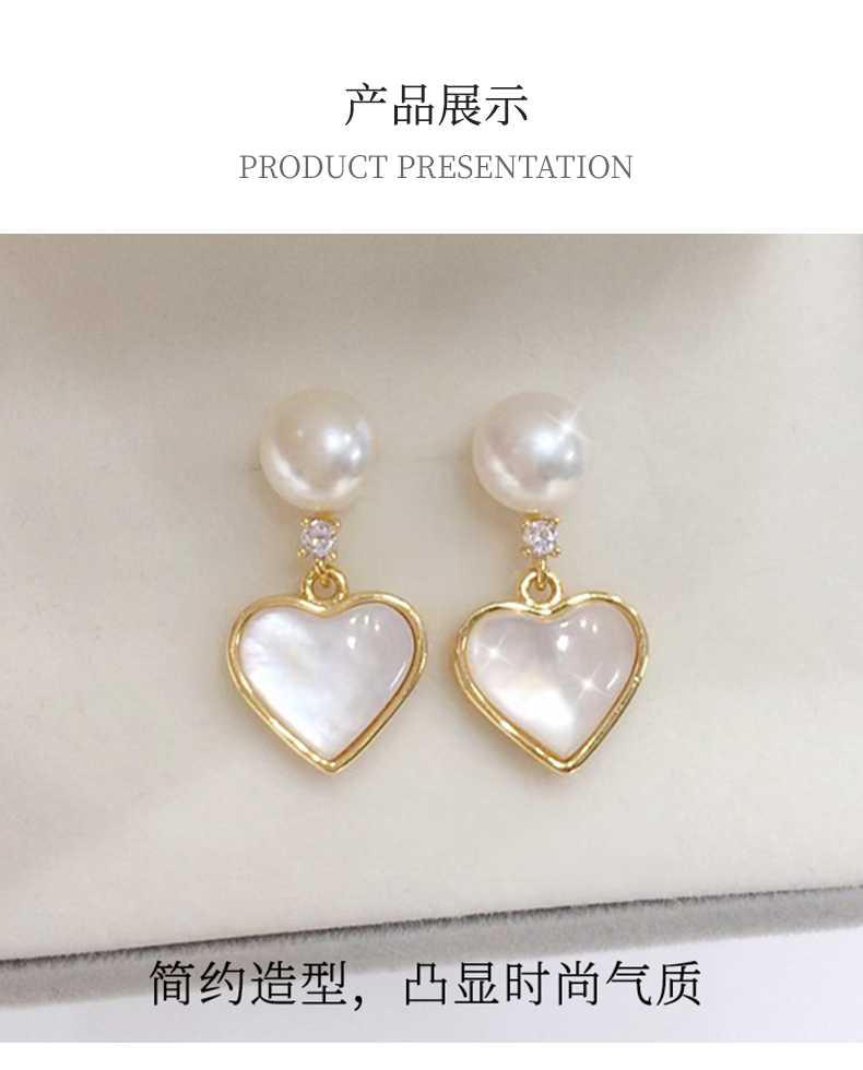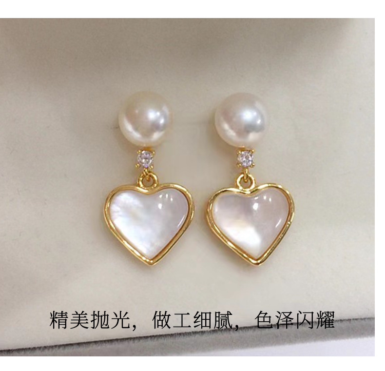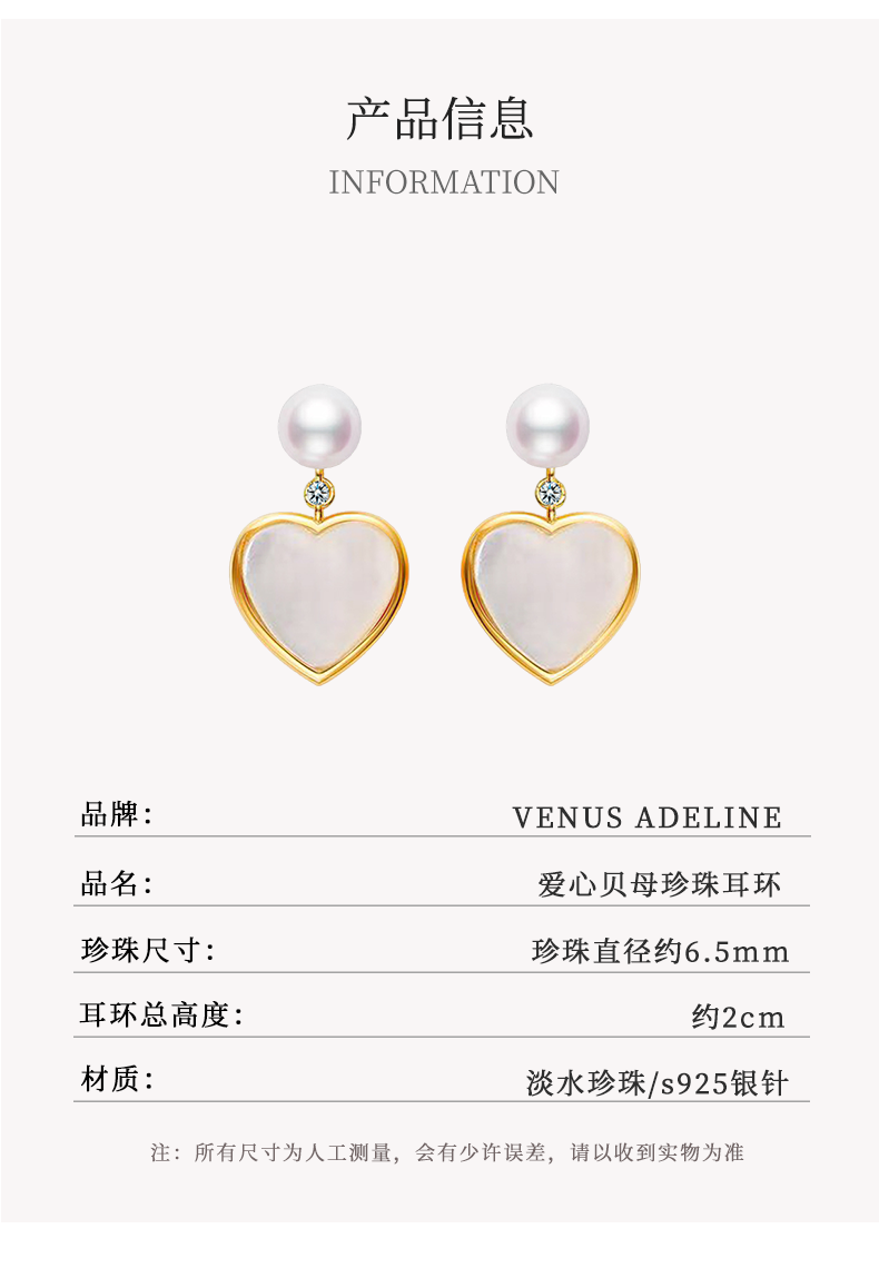 VENUS ADELINE淡水珍珠耳环女银针爱心形耳饰白贝母耳钉轻奢耳坠送女友生日礼物 老婆妈妈闺蜜生日礼物白色珍珠 银针首饰长辈实用浪漫纪念日礼盒