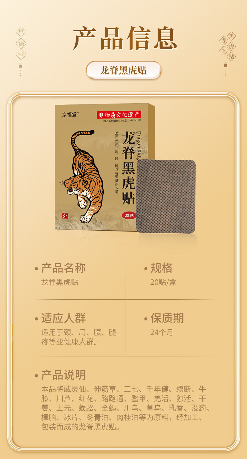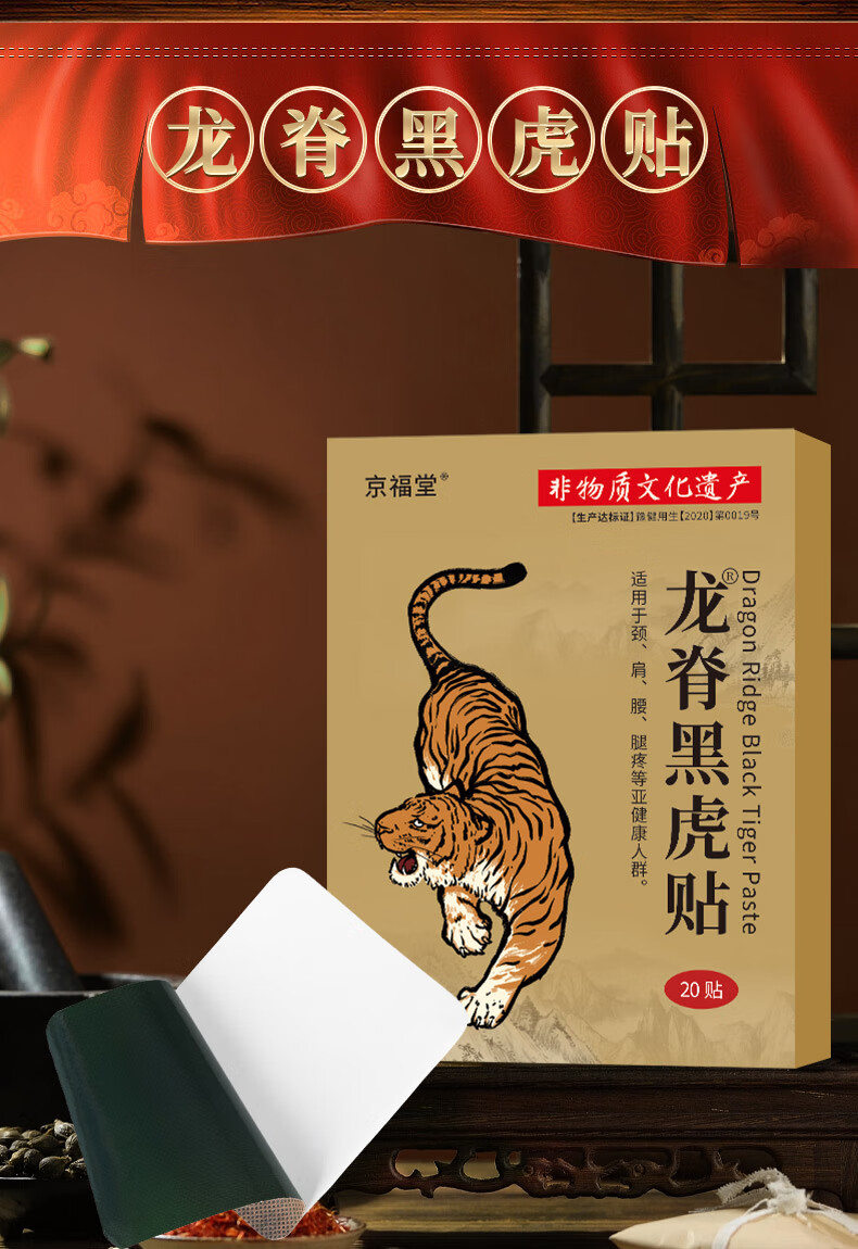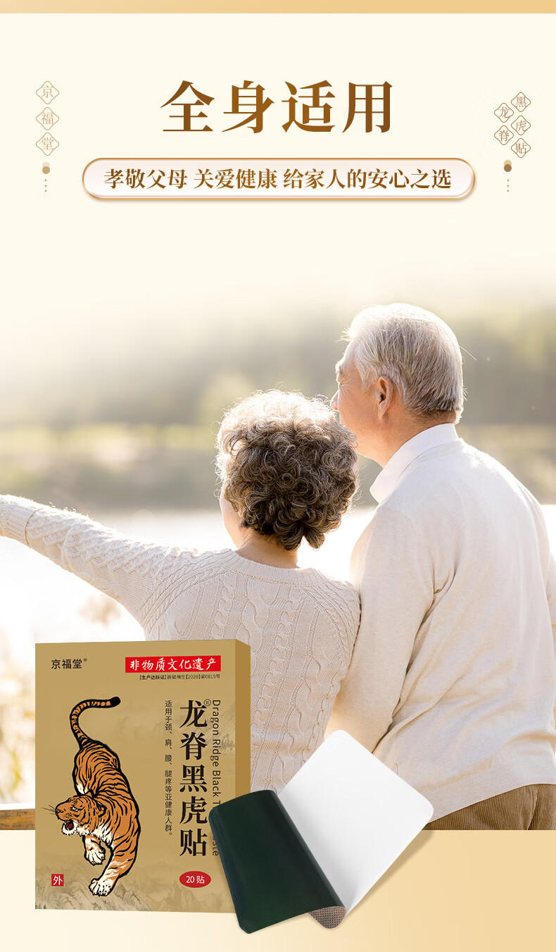 京福堂龙脊黑虎贴艾草膝盖贴腰椎肩颈贴全身通用贴膏20贴腰椎贴