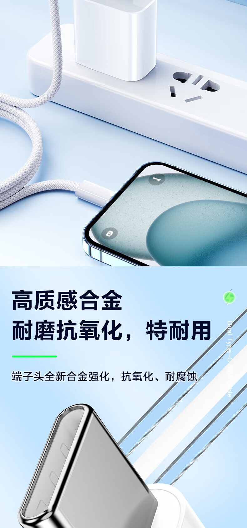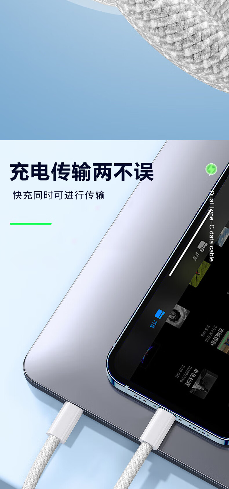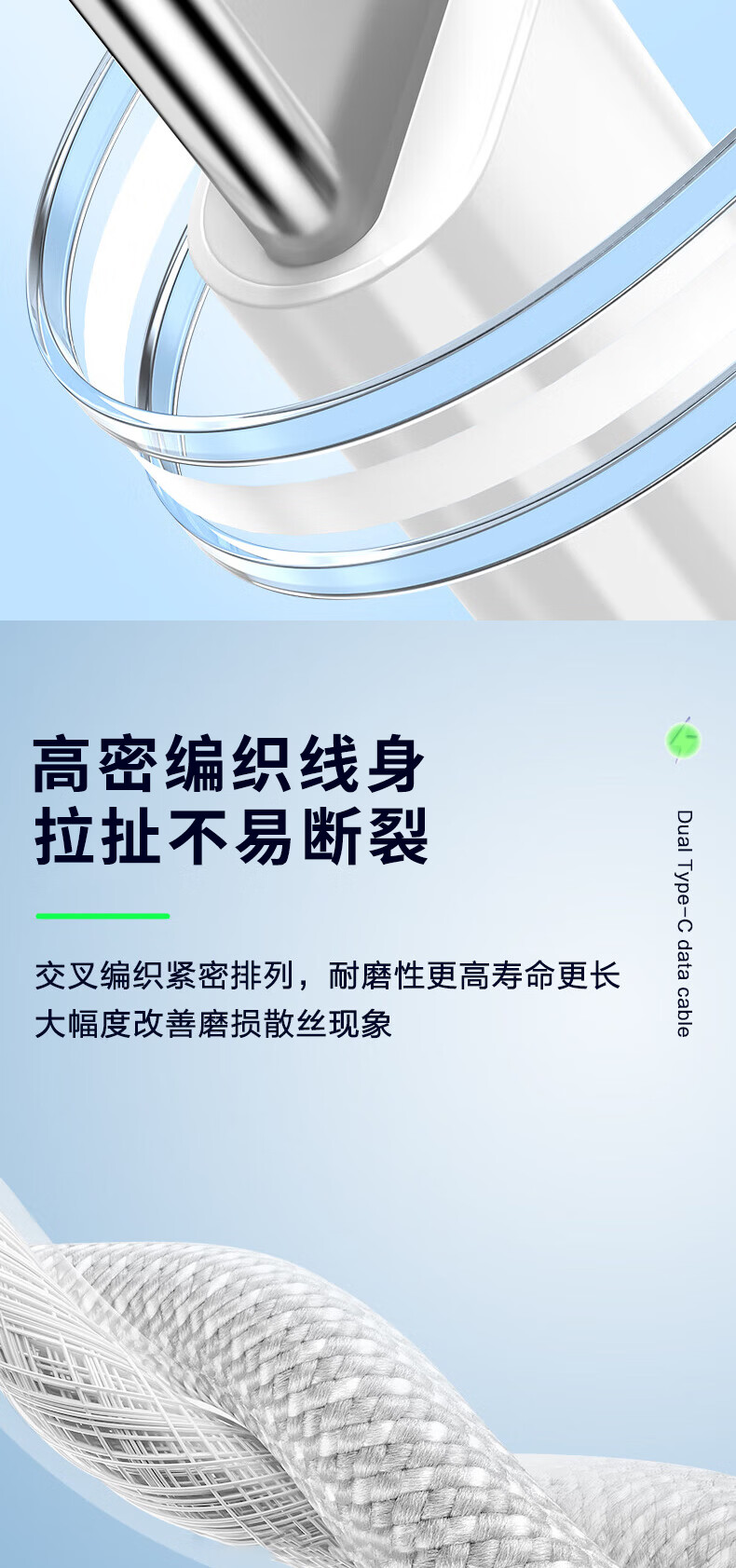 铂呐苓适用苹果安卓充电数据线Type-C快充线编织双头PD27W60w快充C口 编织快充充电线【白色C-C】