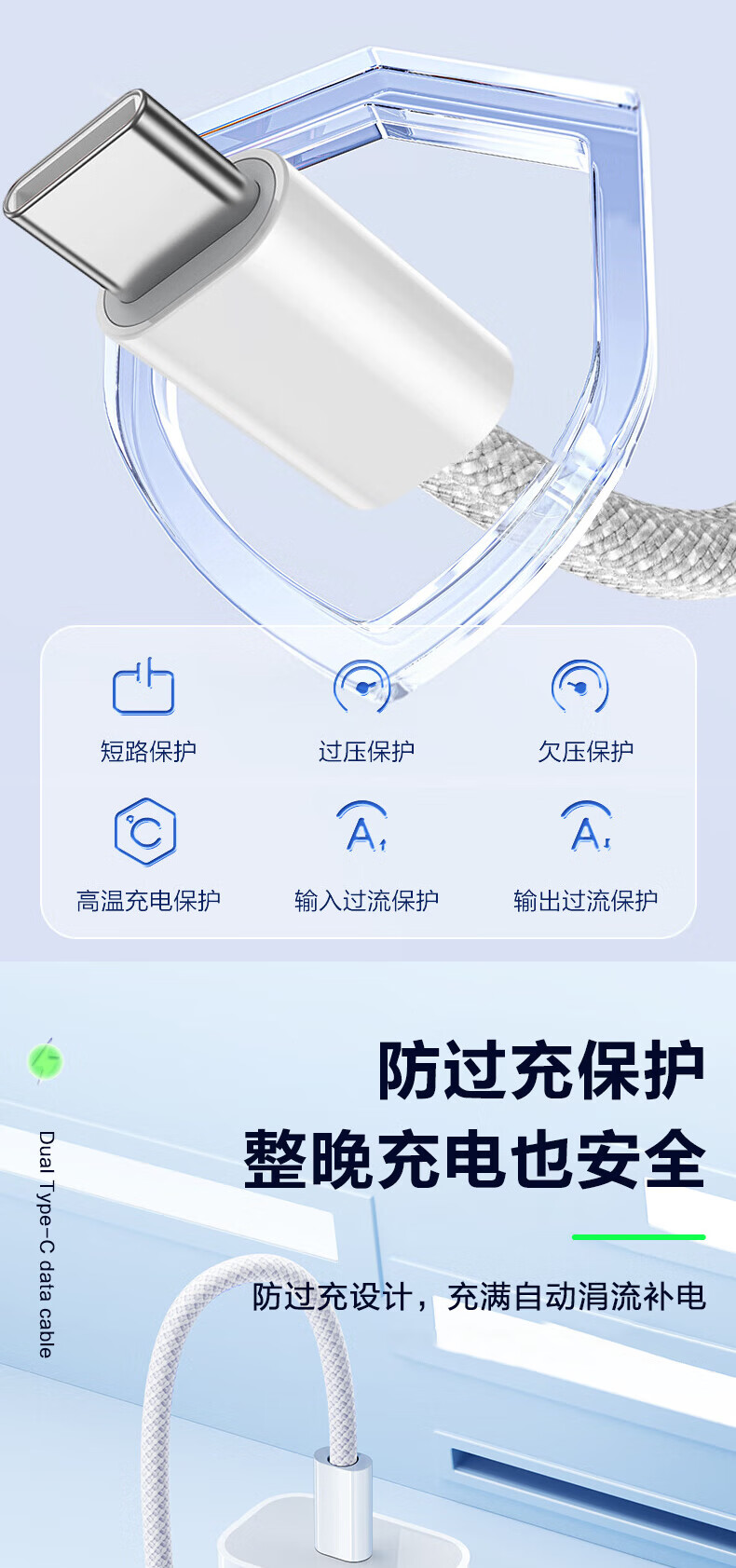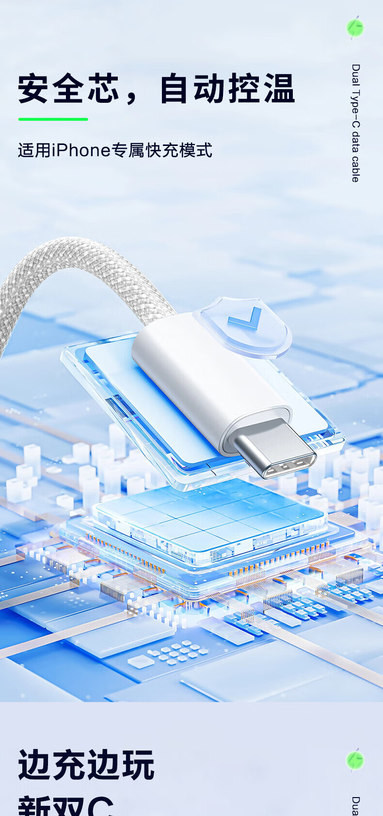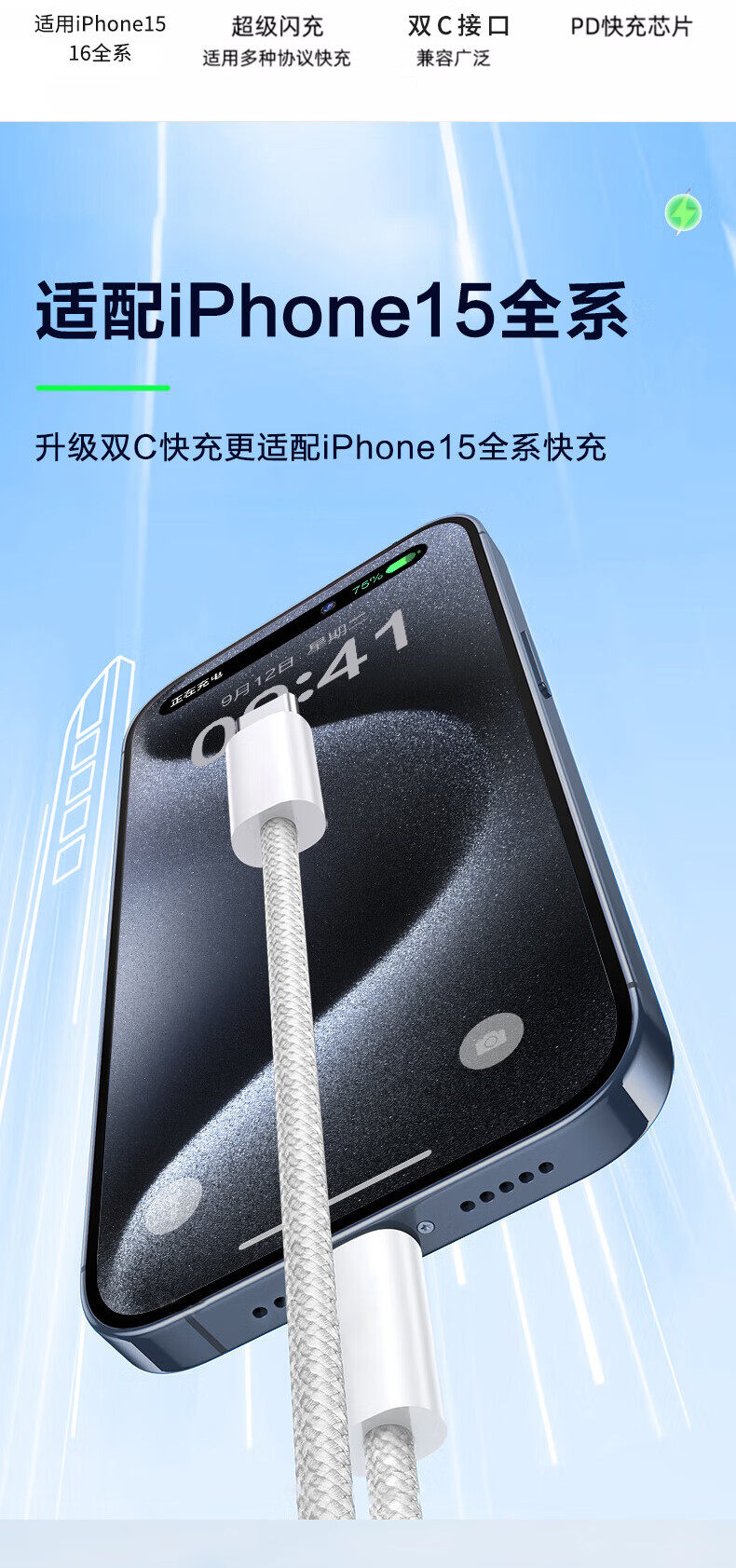 铂呐苓适用苹果安卓充电数据线Type-C快充线编织双头PD27W60w快充C口 编织快充充电线【白色C-C】