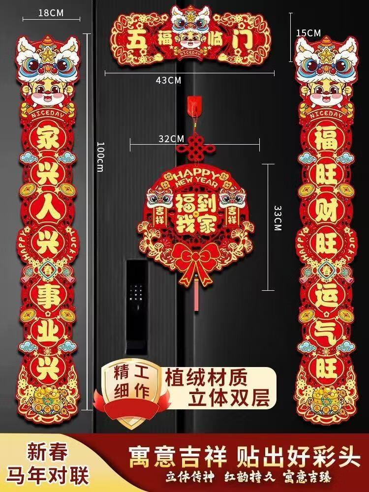 2026对联春联马年新年植绒套装家用春节过年福字立体双层 马年对联一套 无规格