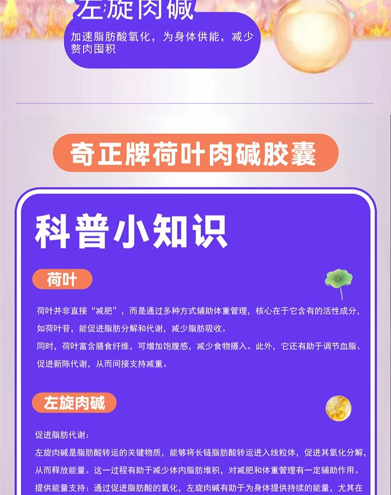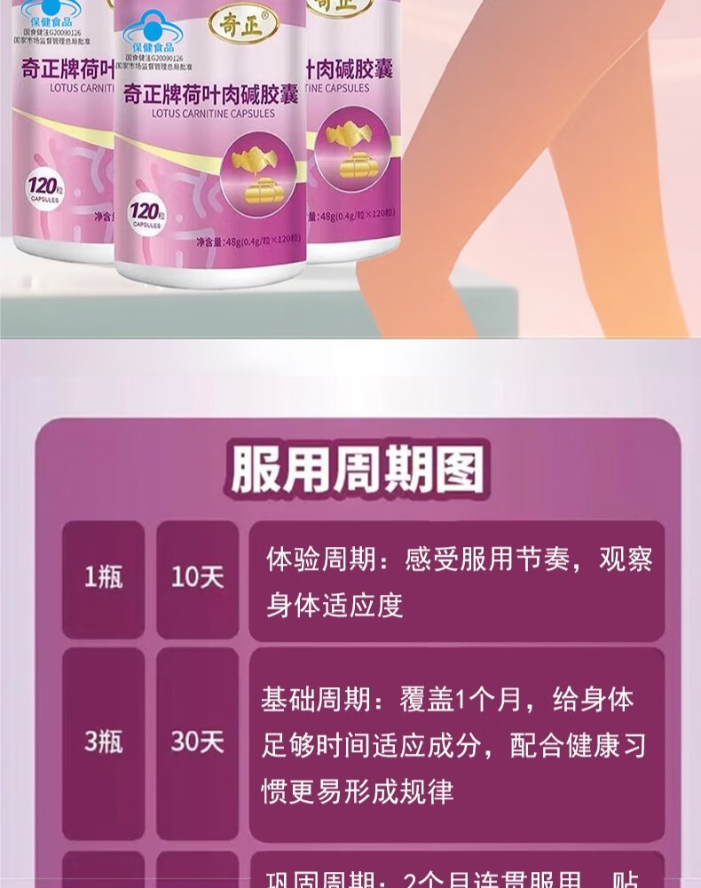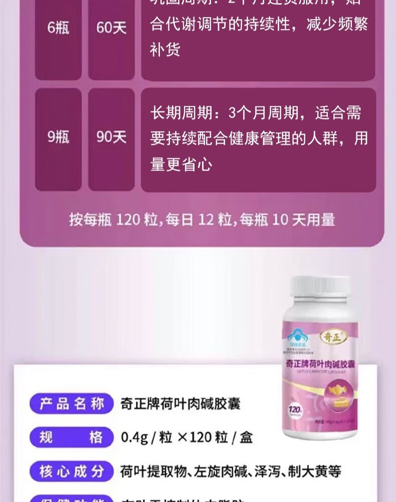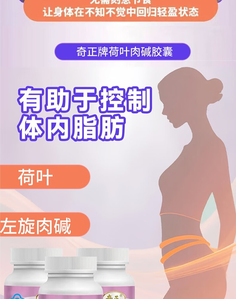 奇正荷叶左旋肉碱胶囊瘦肚子燃脂减脂塑身大肚子瘦身神器 9瓶装【90天,长期规划,习惯养成】