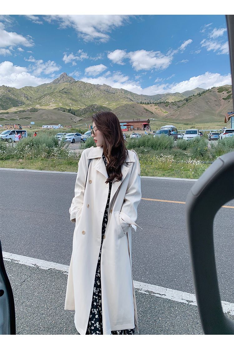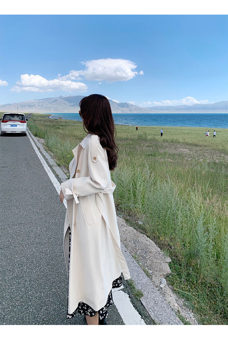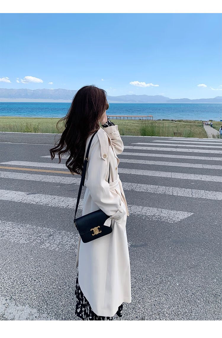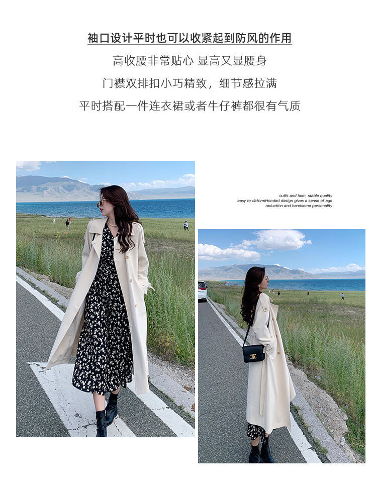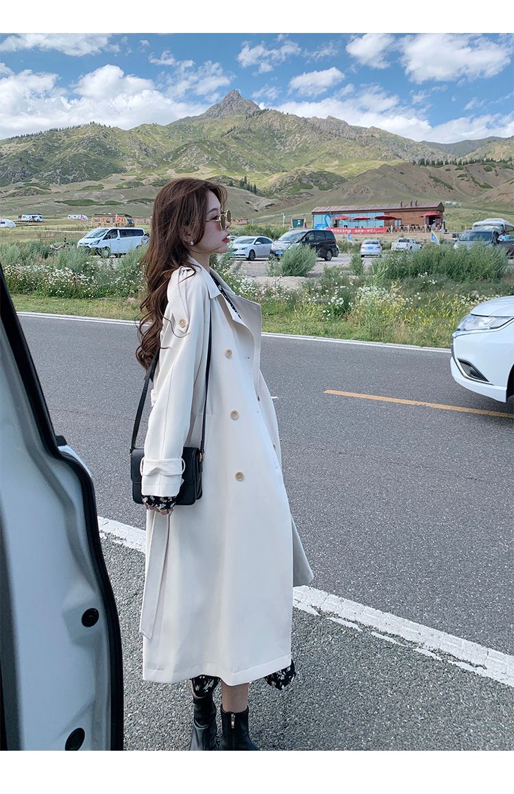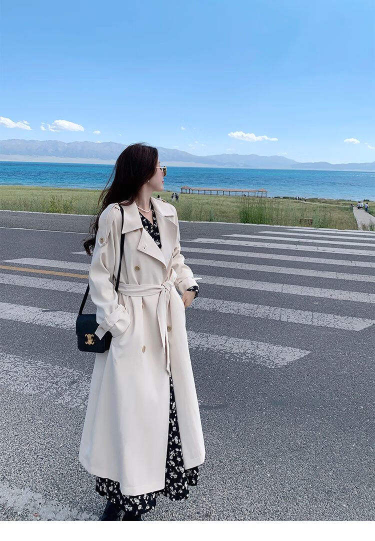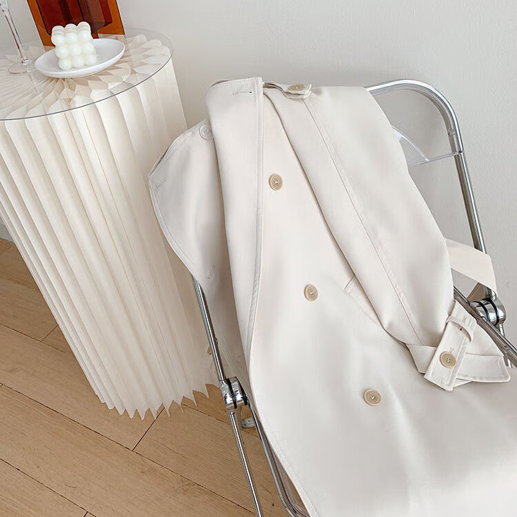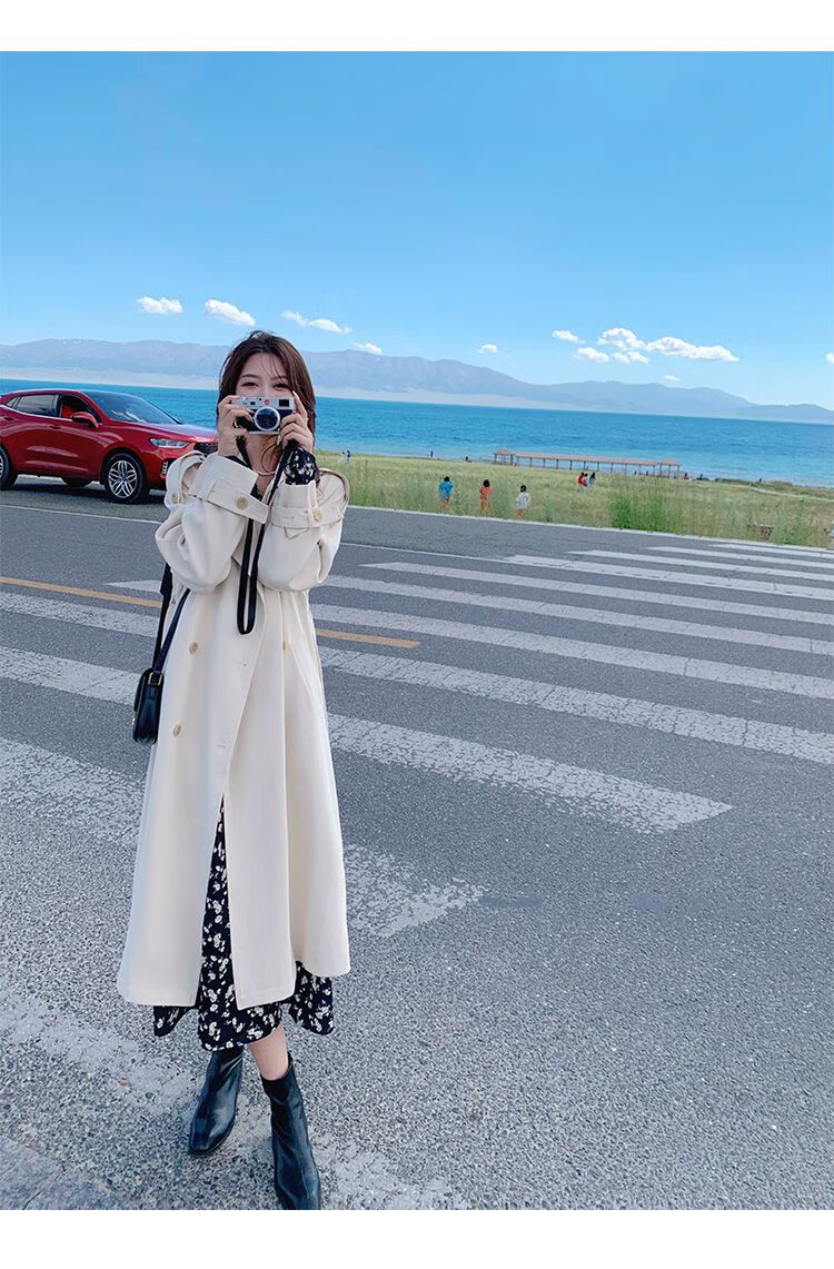 春乏英伦风大衣女2025春秋季新款潮牌风衣外套女中长款小个子上衣女 米白色 XS 105斤以下【卡码拍小】