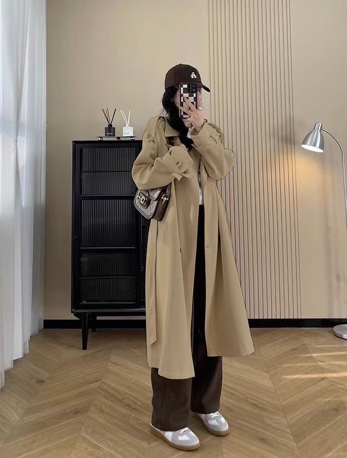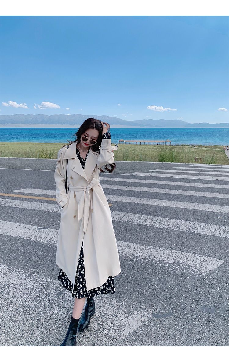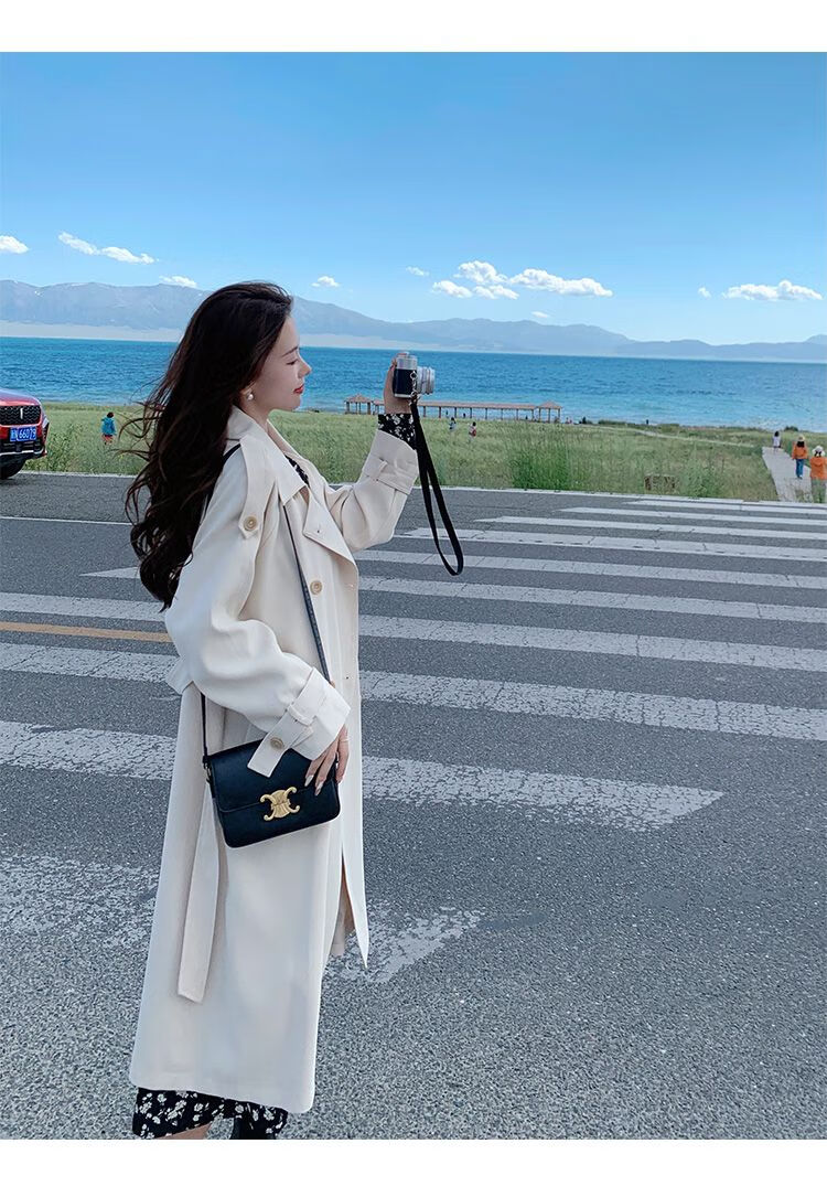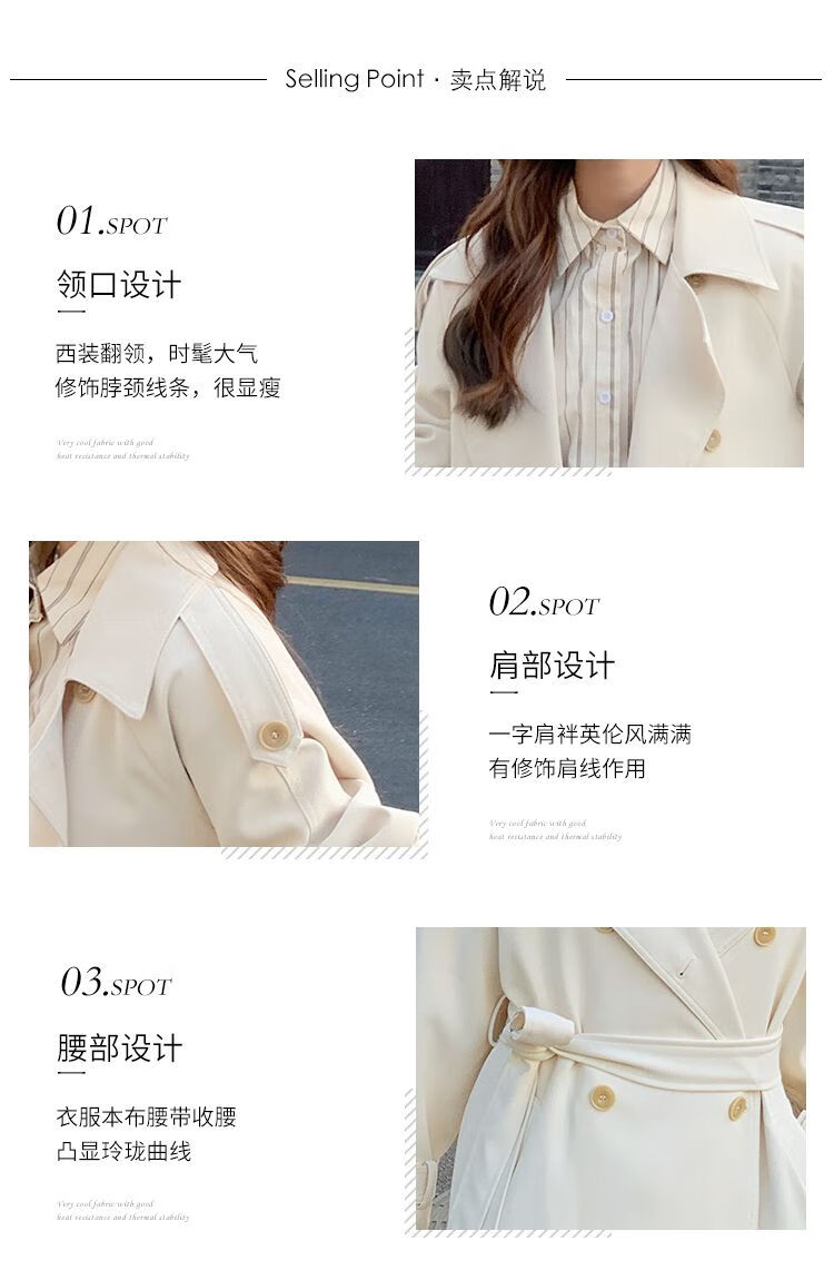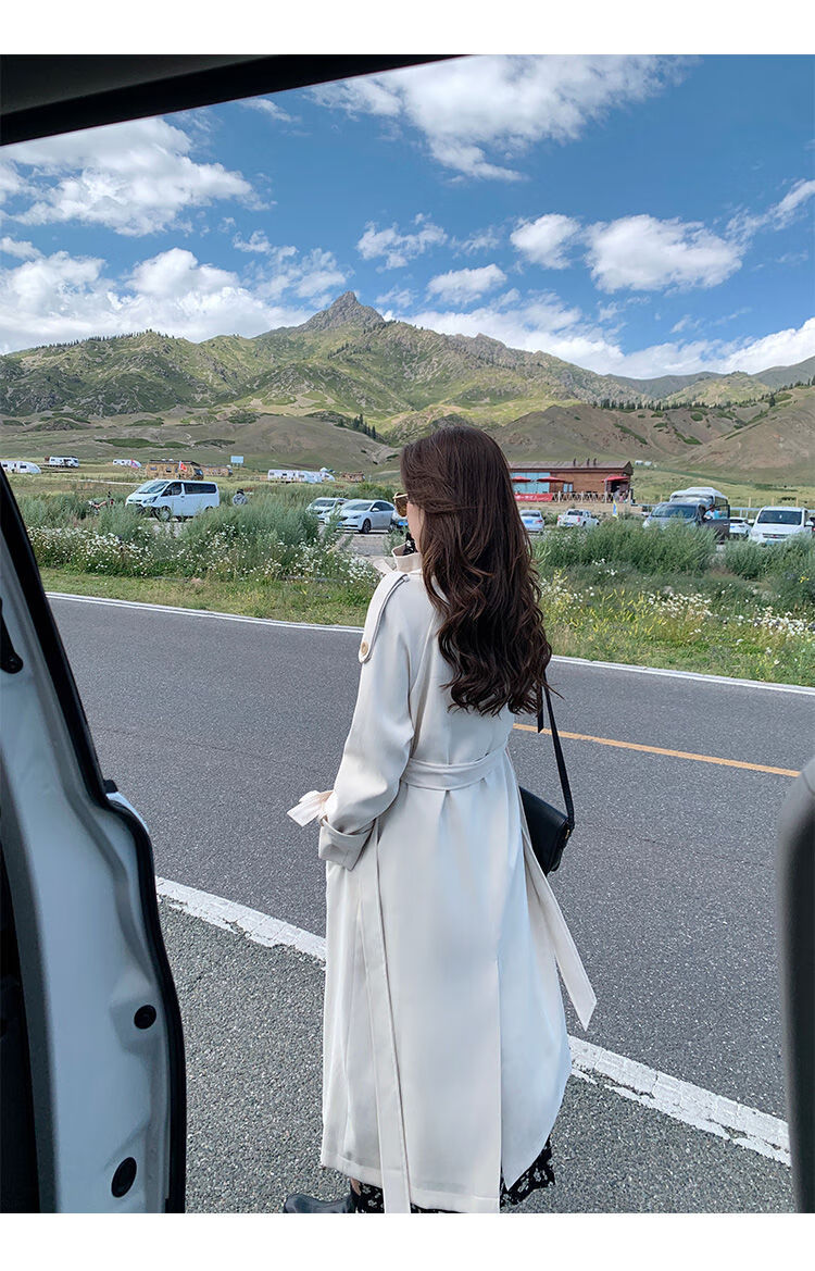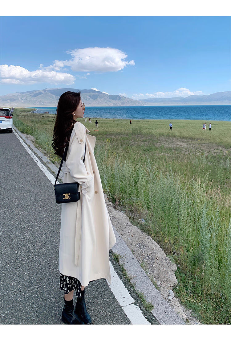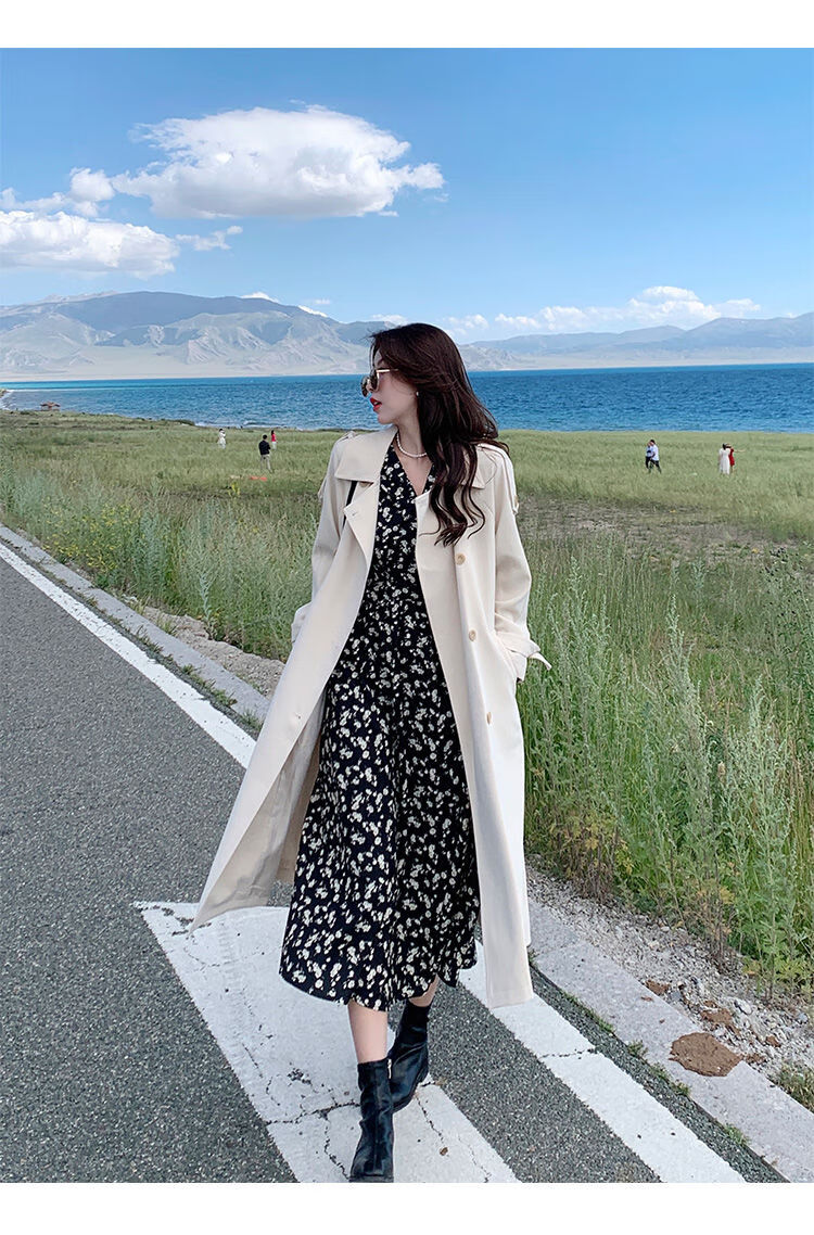 春乏英伦风大衣女2025春秋季新款潮牌风衣外套女中长款小个子上衣女 米白色 XS 105斤以下【卡码拍小】