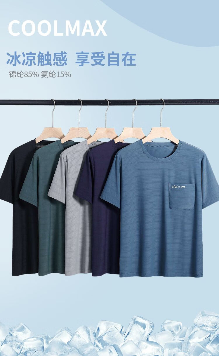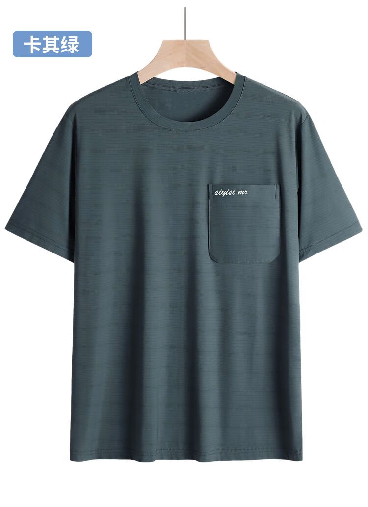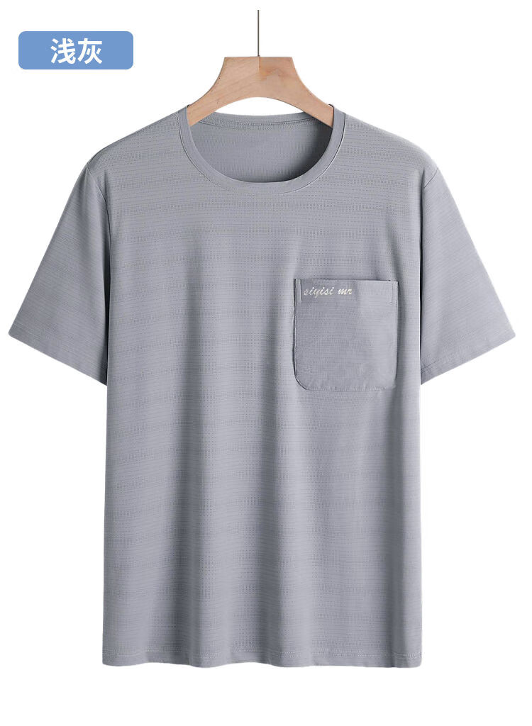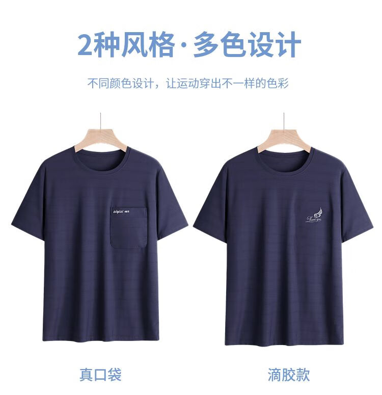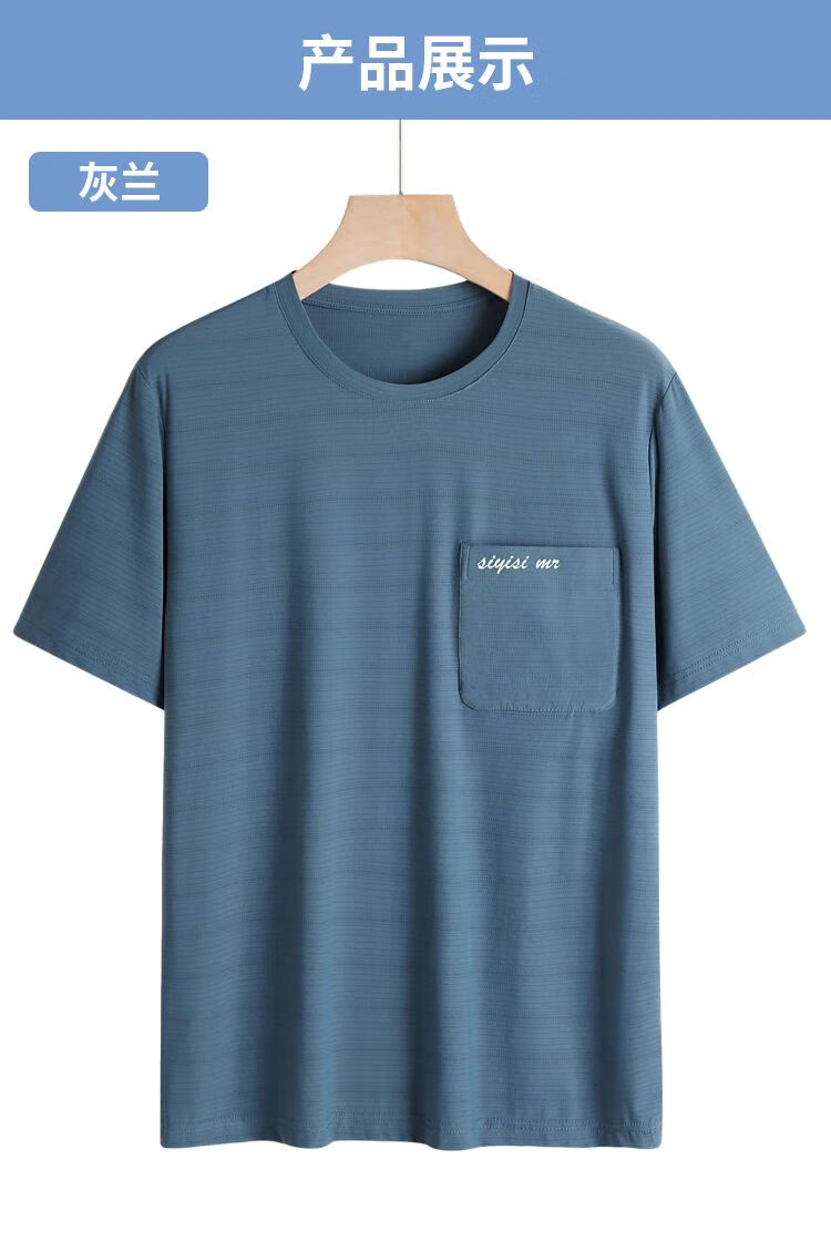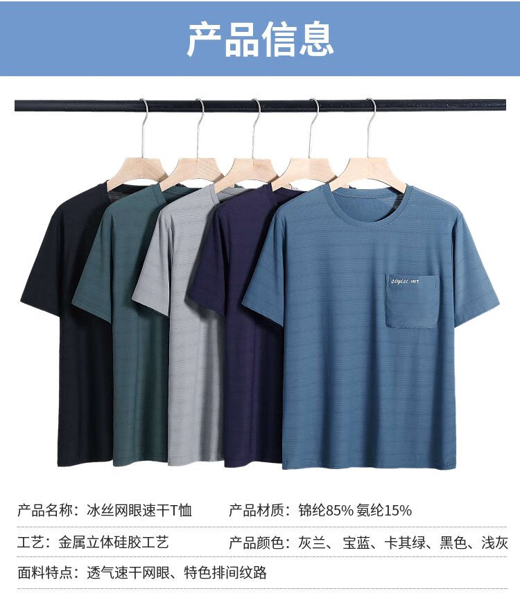 新款冰丝短袖t恤男透气速干中老年爸爸装真口袋网眼夏季运动上衣 【168真口袋-2件装】浅灰+黑色 3XL 建议175-205斤