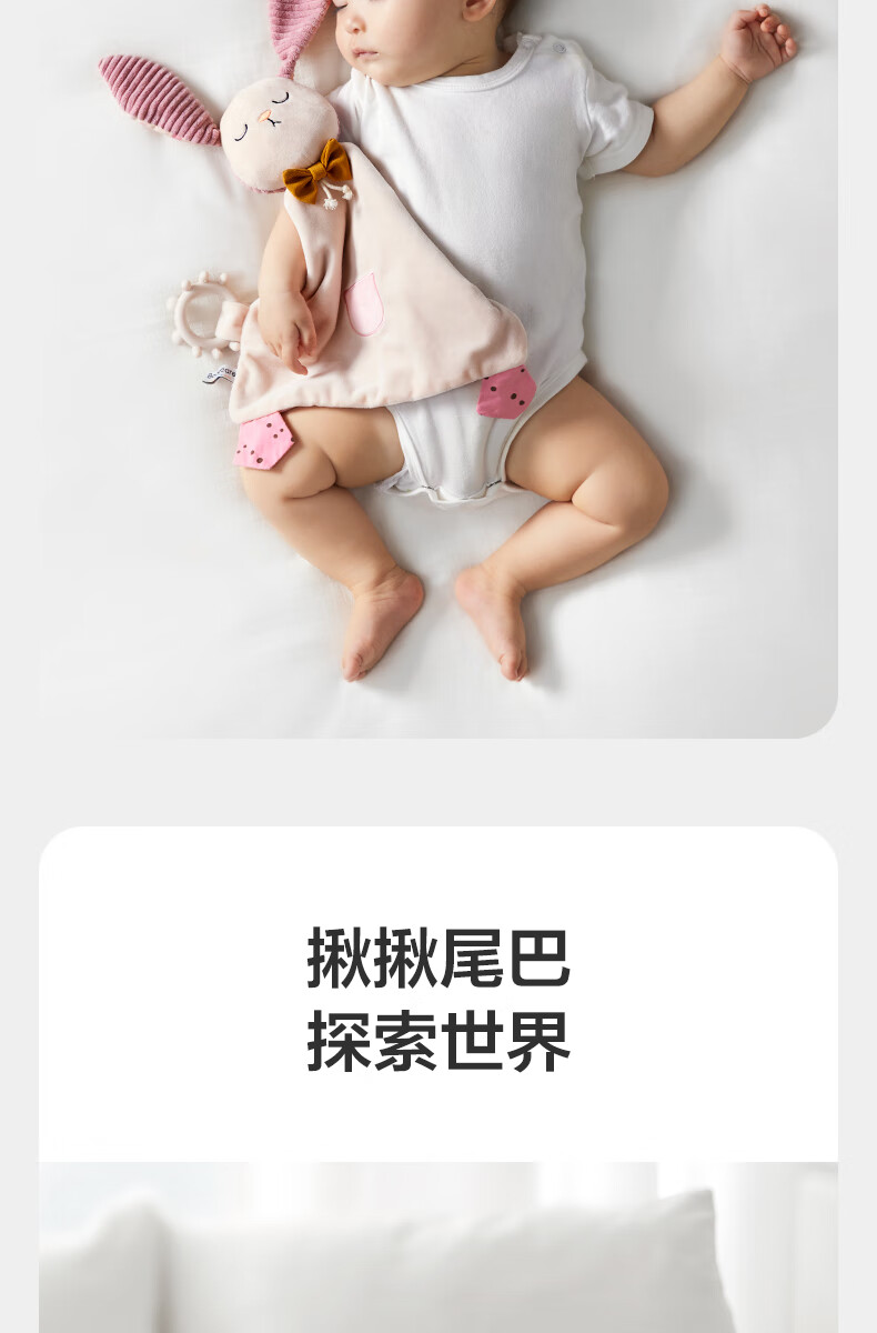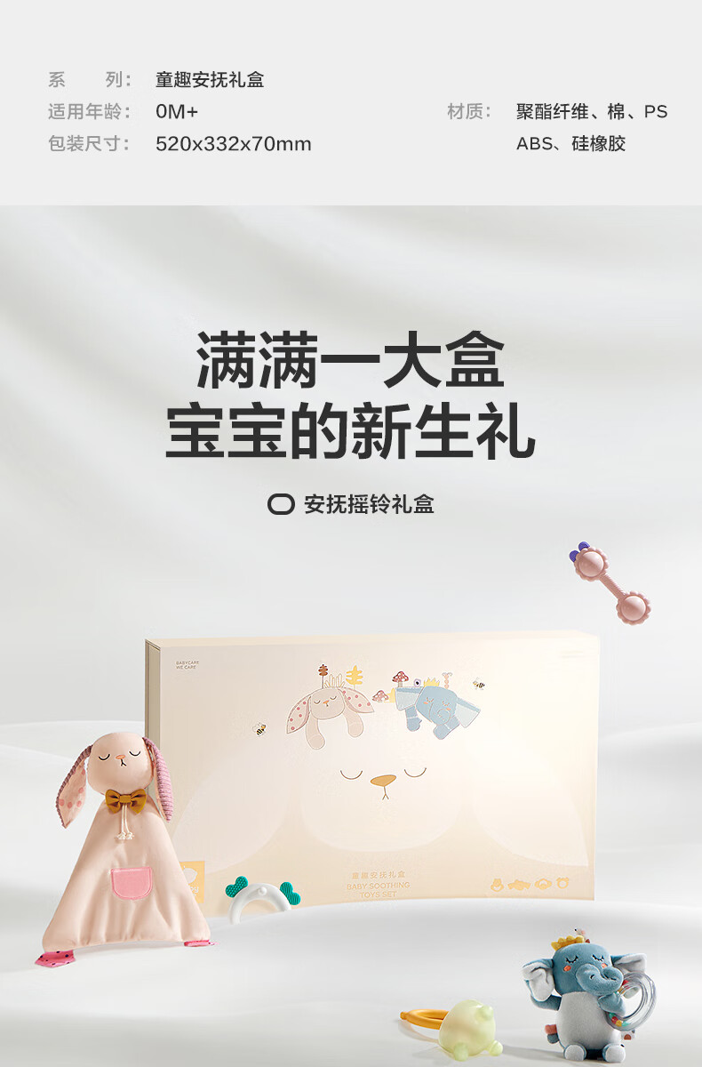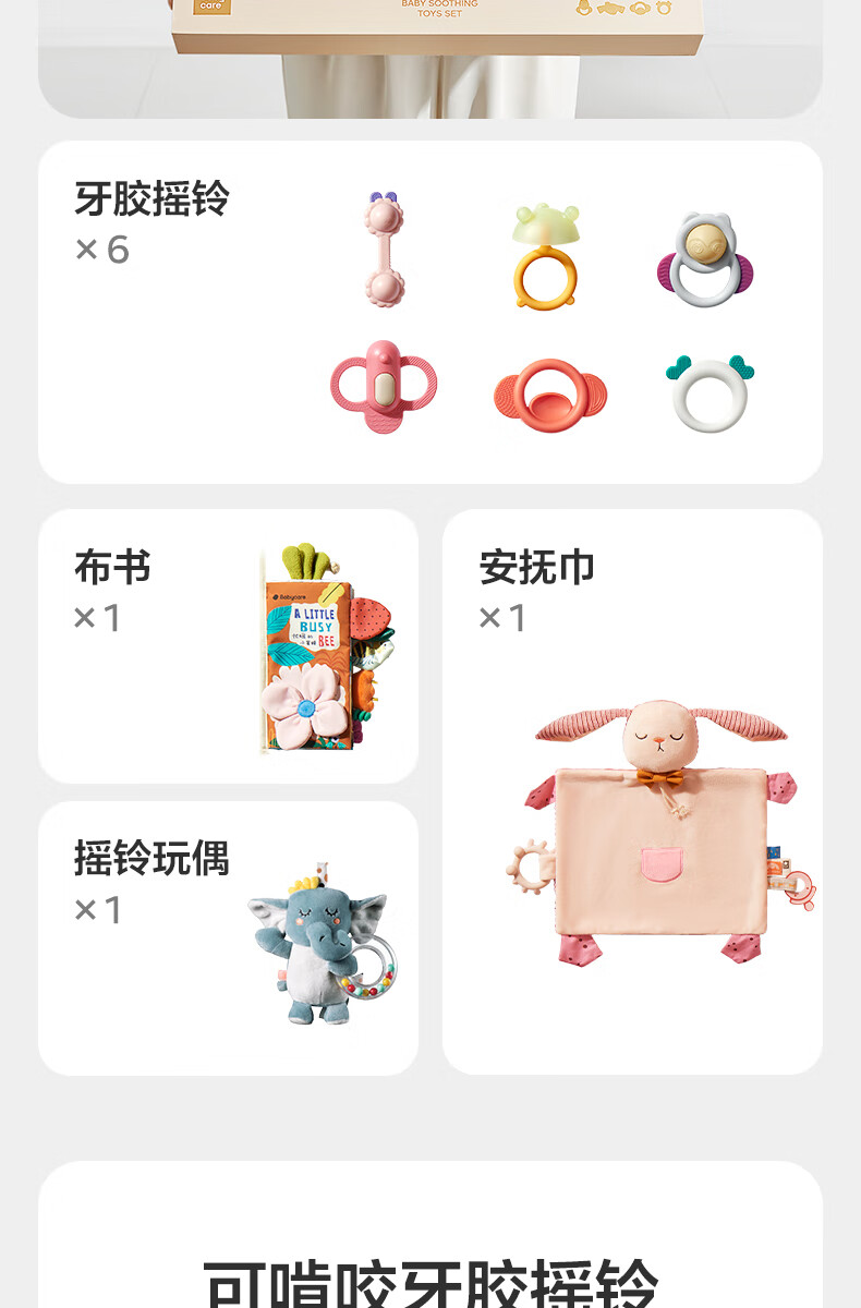 babycare安抚摇铃礼盒新生儿礼物婴儿玩具摇铃尾巴布书玩偶新年礼物-9件套